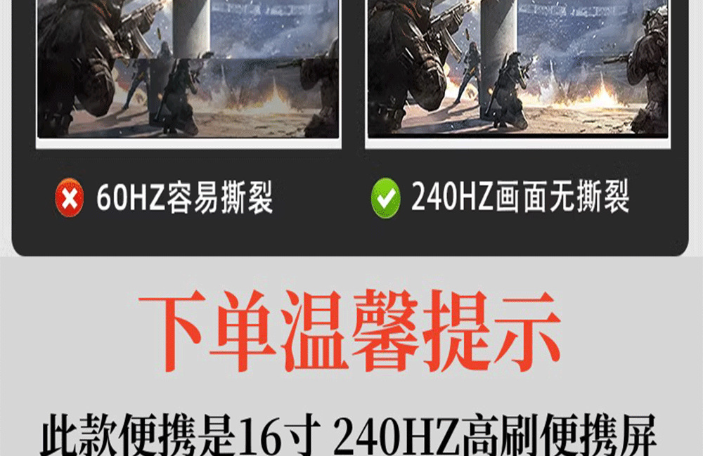 16 인치 휴대용 디스플레이 2.5K240HZ 지원 DP 인터페이스 연결 컴퓨터 메인 화면 서브 화면 확장 분할 화면