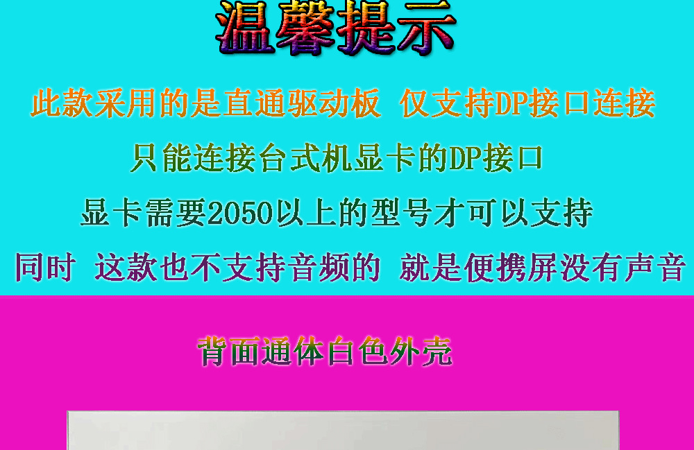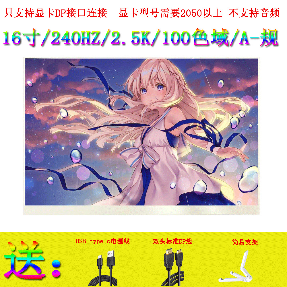 • 16inch /240HZ/2.5K/100 색 영역/DP만 지원, 오디오/A 브래킷 버전은 지원하지 않음
