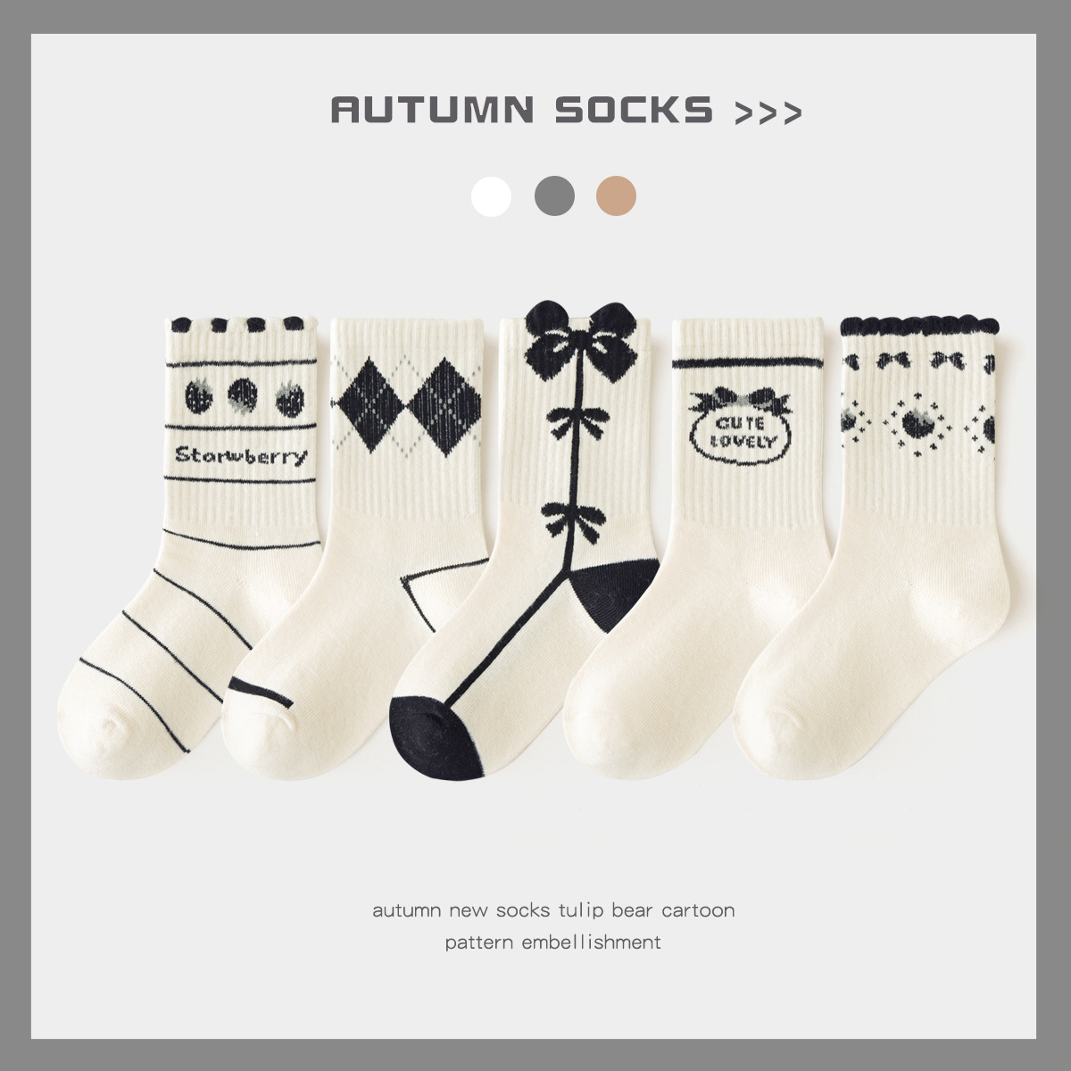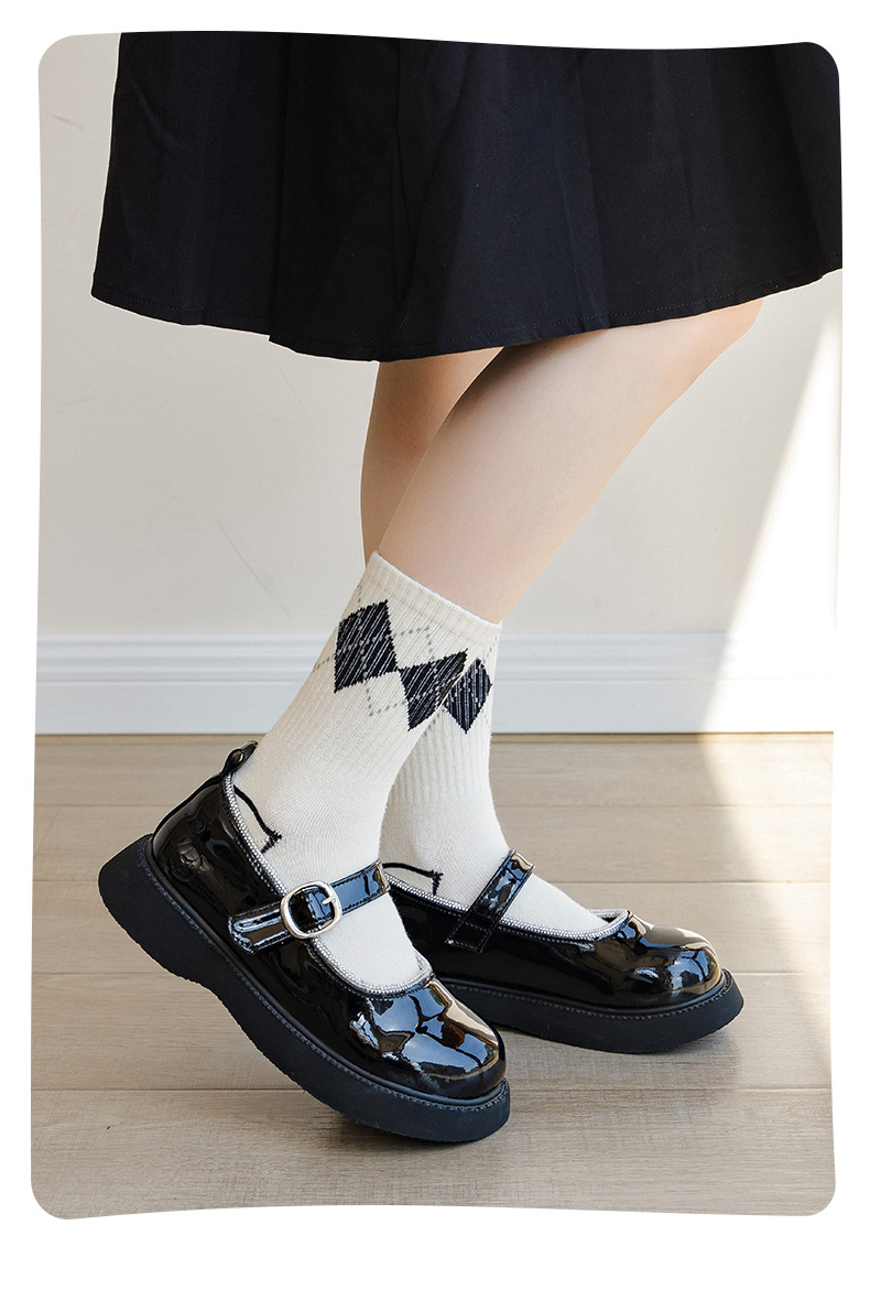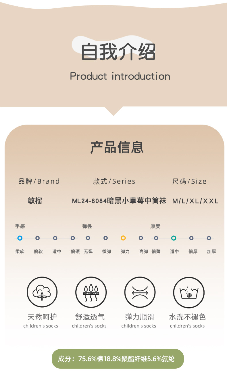 봄과 가을 소녀 양말 딸기 미드 튜브 양말 사계절 어린이 양말 높은 고무 스트랜드 양말은 검은 색과 흰색 어린이 양말스토어 가기