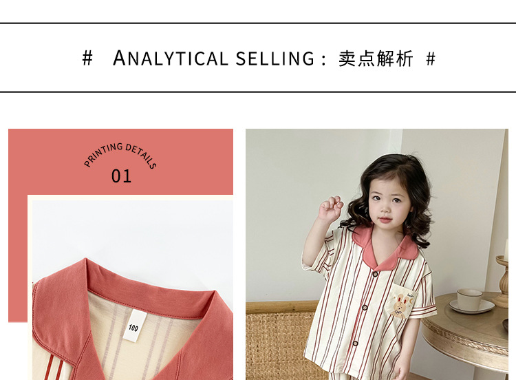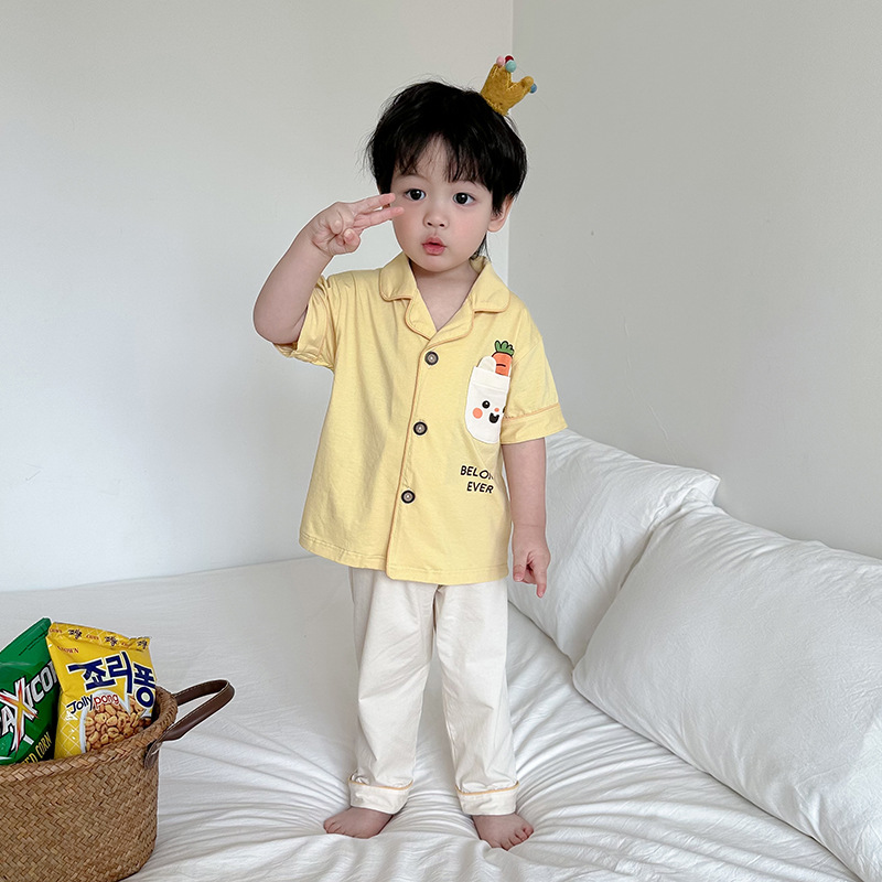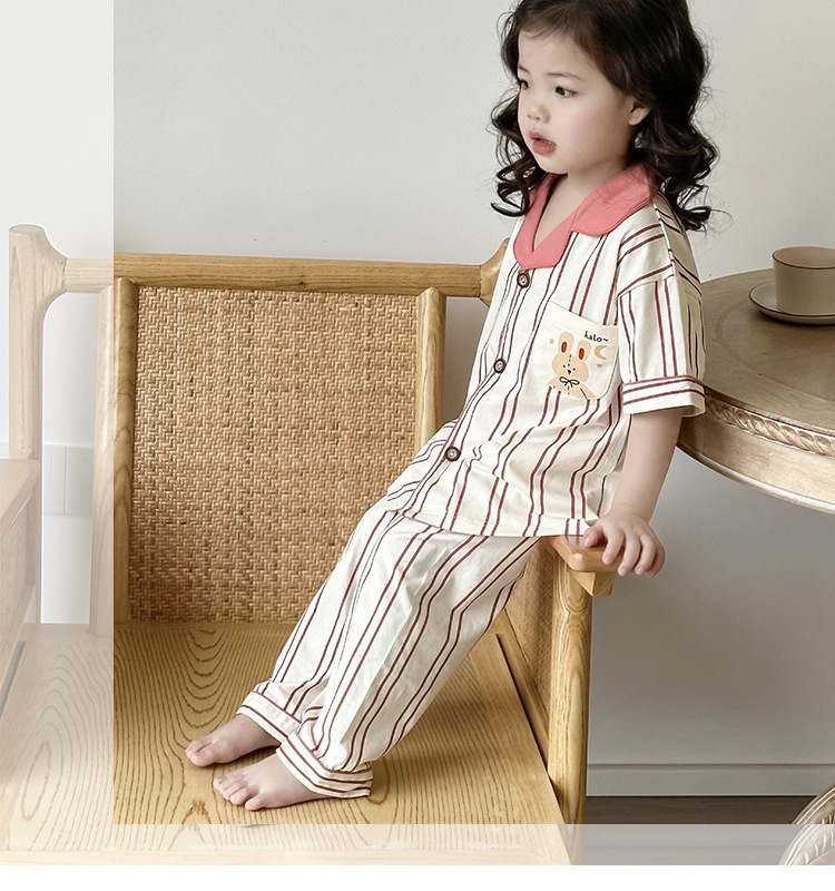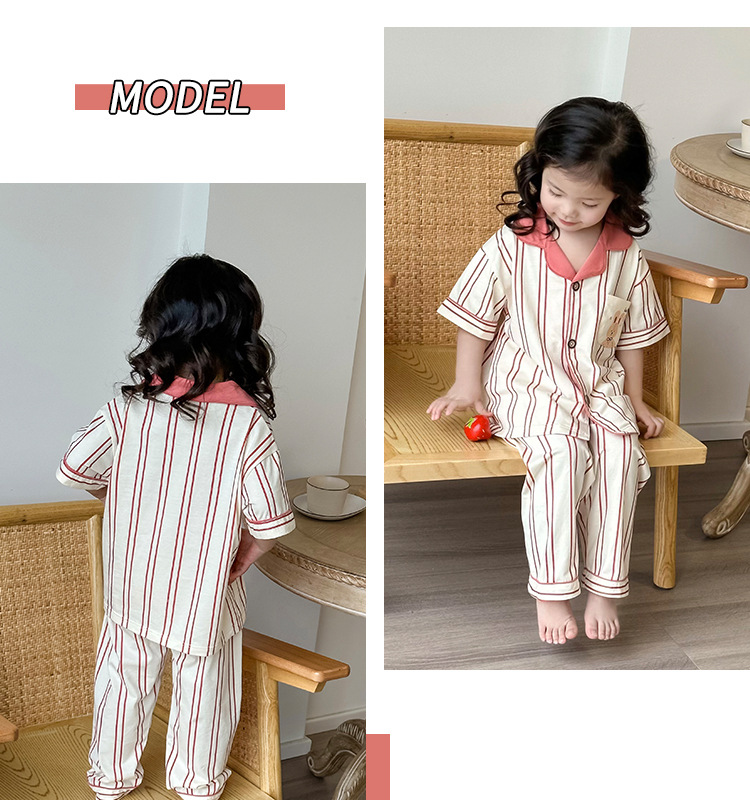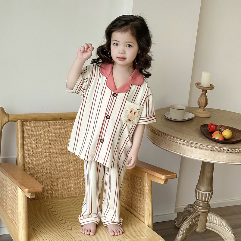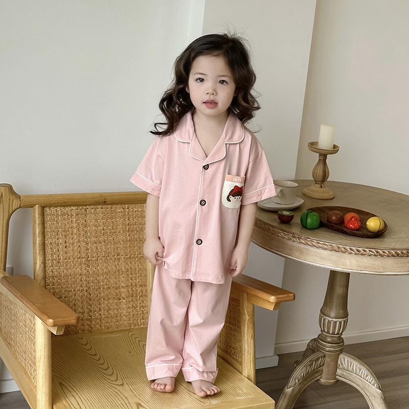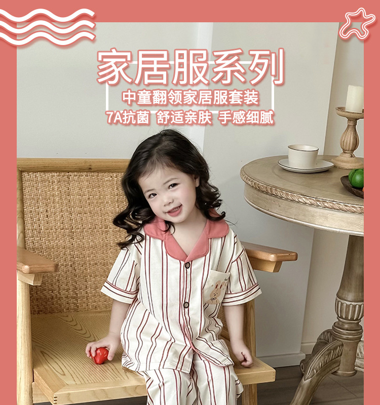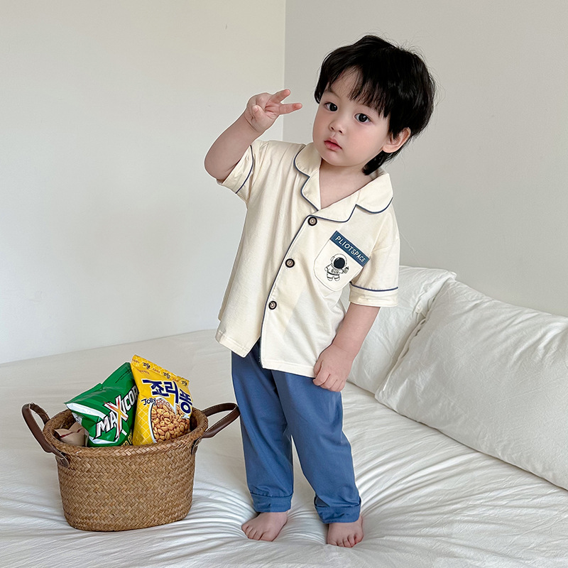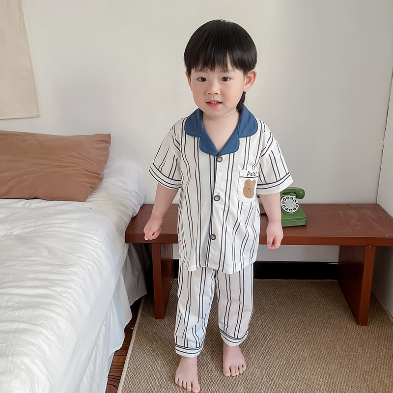 한국형 남학생과 여학생 카디건 반팔 잠옷 세트 여름 항균 클래스 A 외형 옷깃 홈 옷 투피스 세트스토어 가기