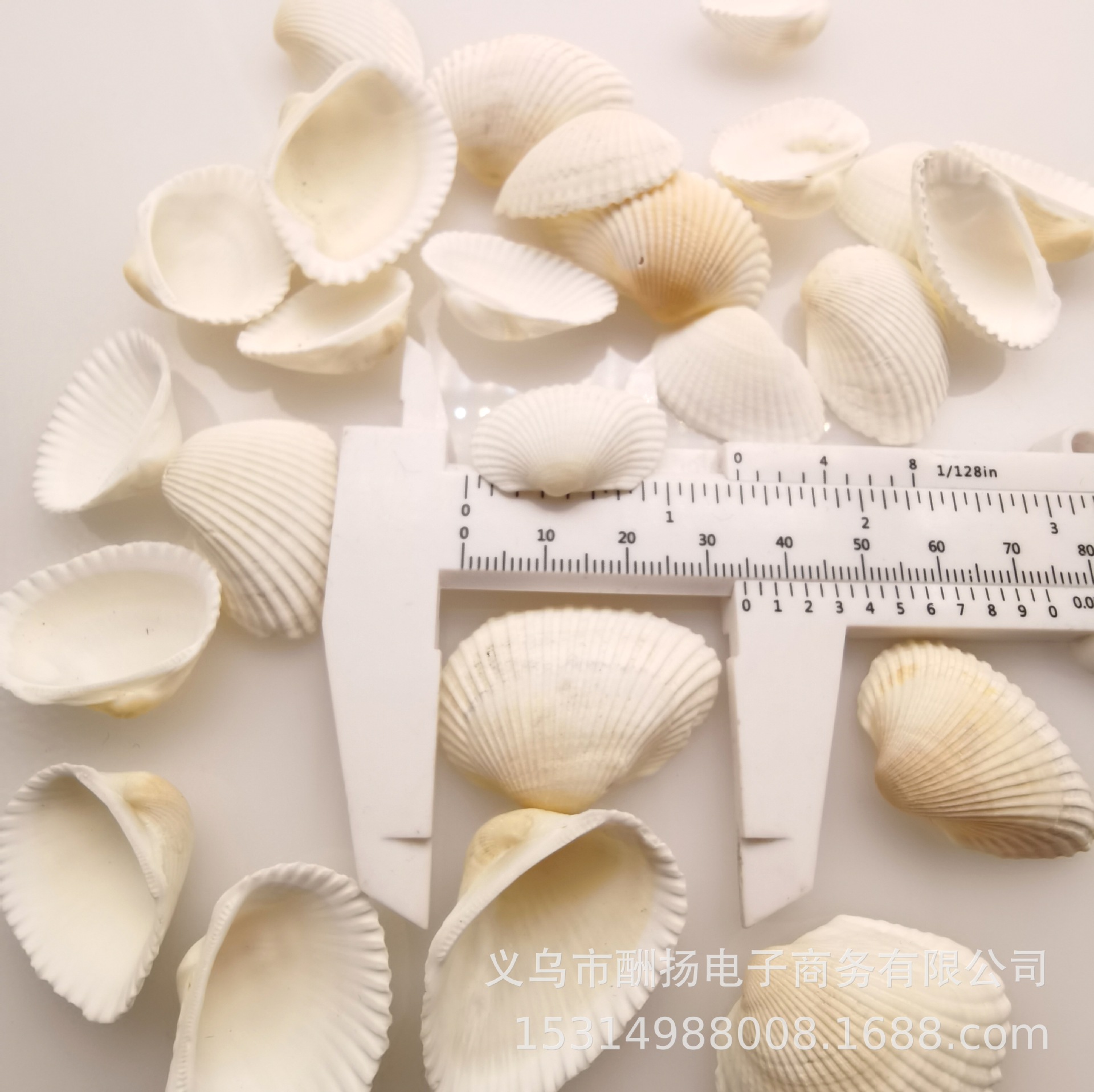 • 흰색 5-7cm 흰색 납작한 부채꼴 조개껍데기 1개