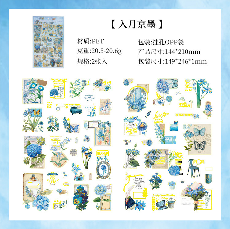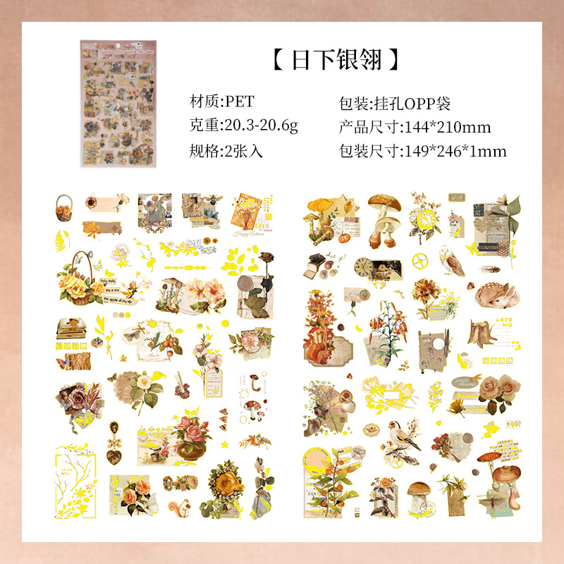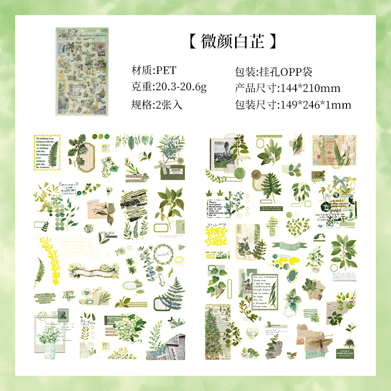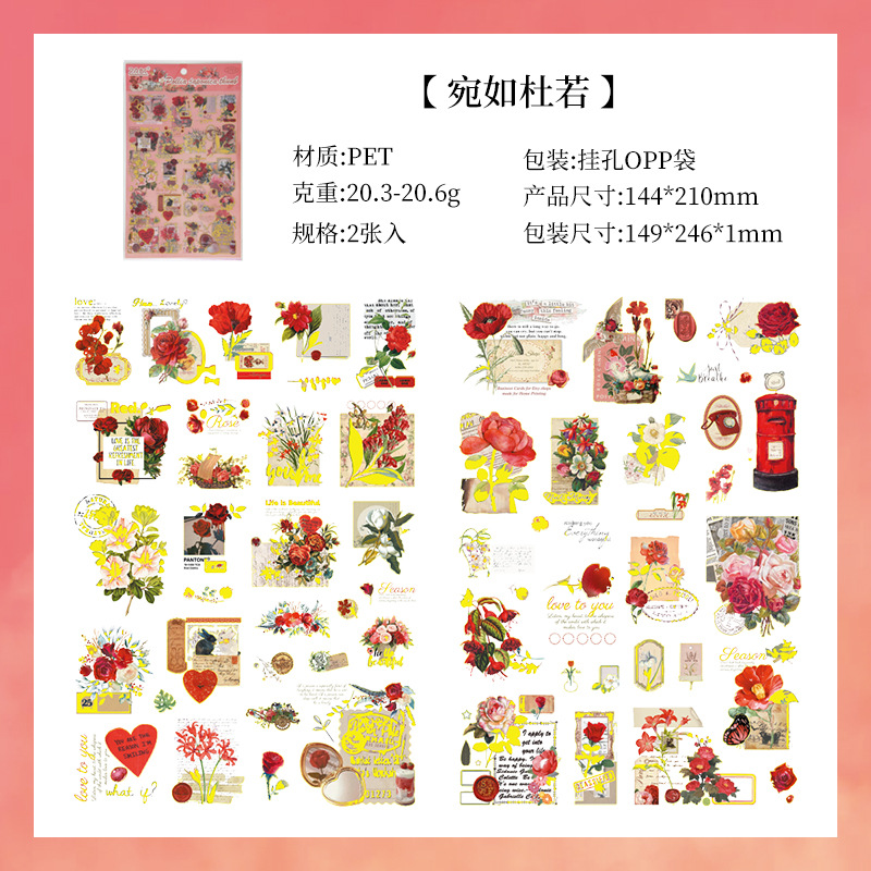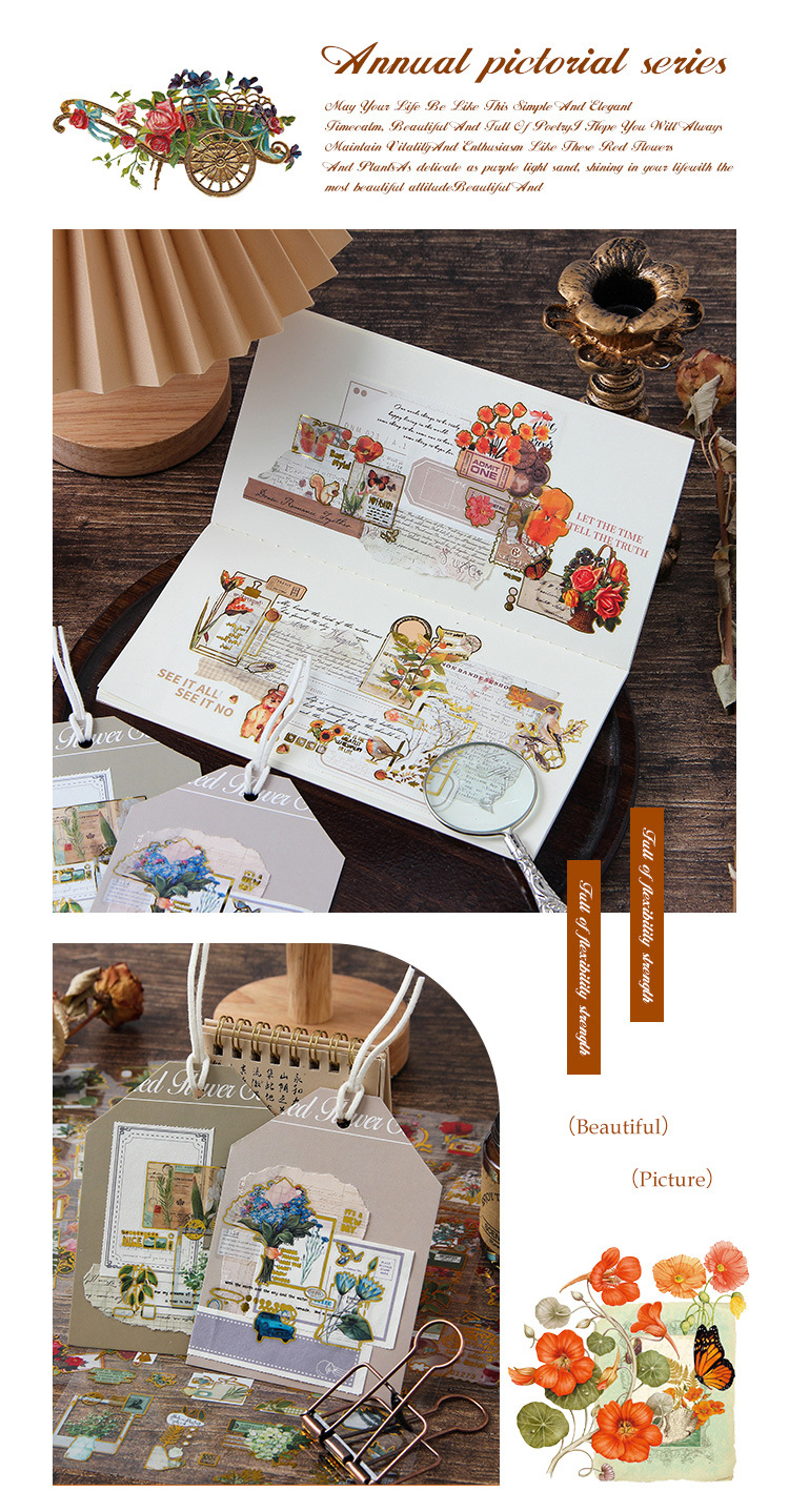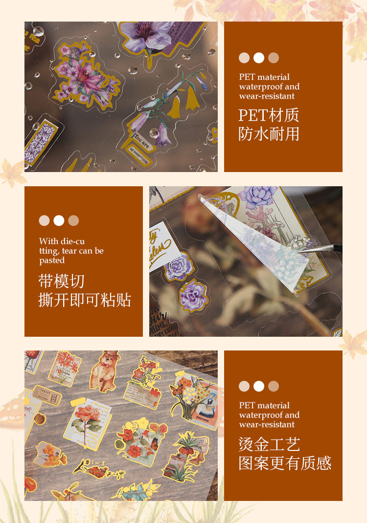 년 그림 시리즈 투명 방수 애완 동물 스티커 DIY 손 계정 장식 스티커 빈티지 꽃과 식물 스티커