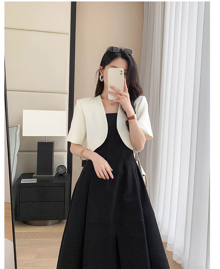 여성을위한 미색 프랑스 패션 반팔 정장 재킷 2025 여름 새로운 디자인 슬림 기질 짧은 정장스토어 가기