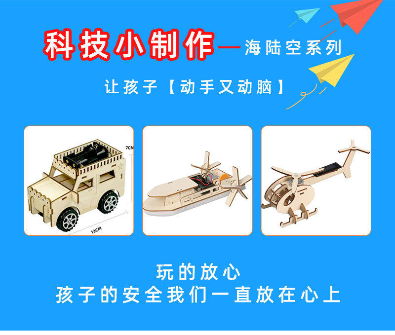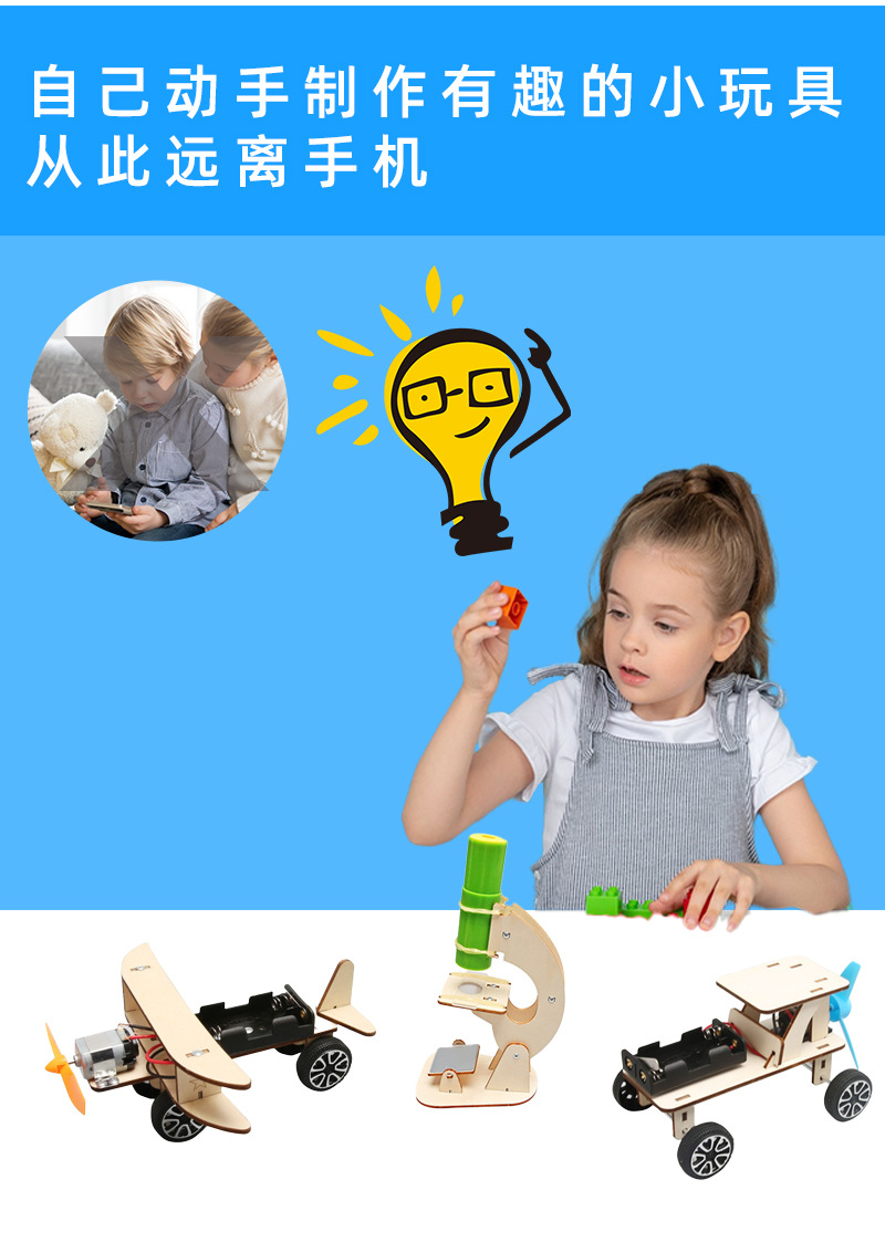 학생 증기 과학 기술 작은 생산 어린이 과학 토지, 바다 및 공기 작은 발명 세트 조립 재료 가방 장난감스토어 가기