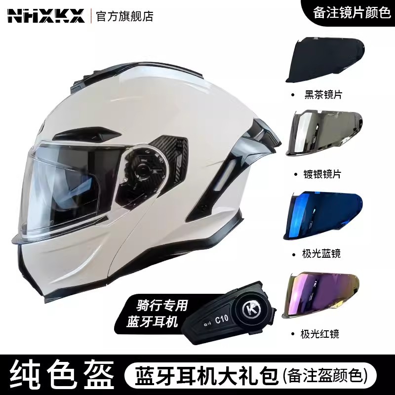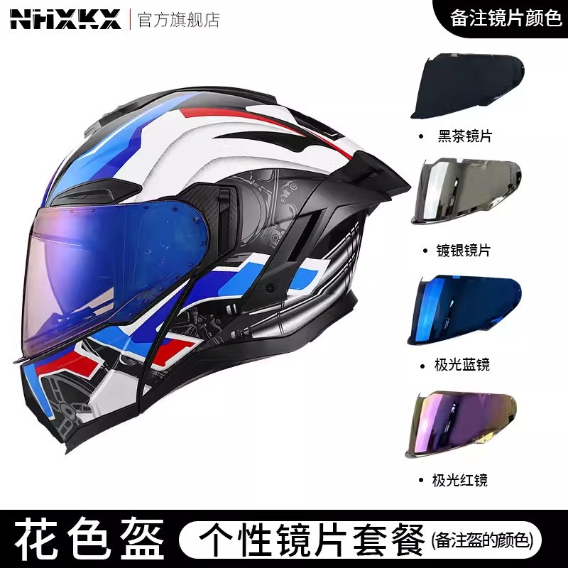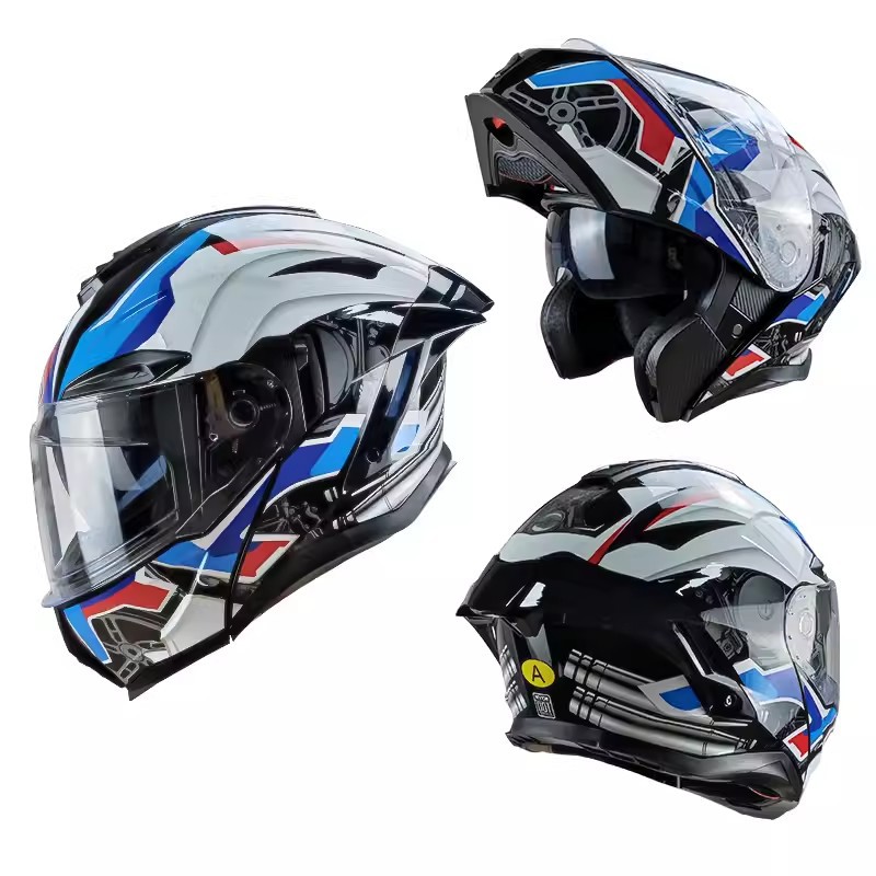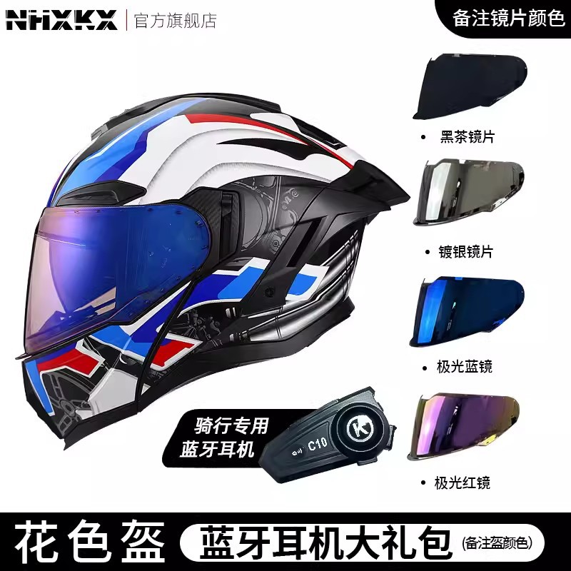 오토바이 헬멧, 3C 인증, 듀얼 렌즈, 대형 리어 윙, 남성용 블루투스 풀페이스 헬멧, 스쿠터용스토어 가기