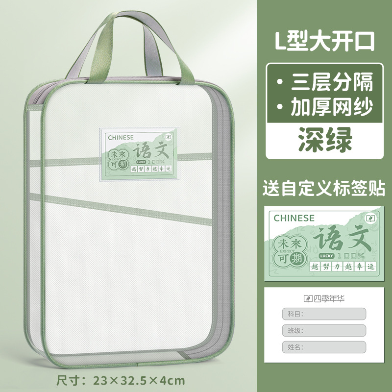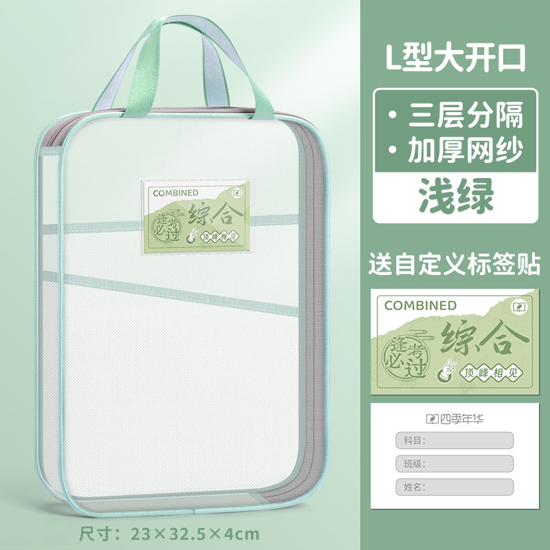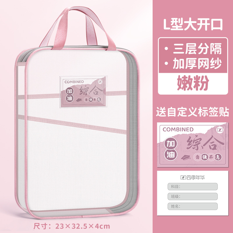 L 모양의 주제 분류 가방 투명 문서 가방 지퍼 메쉬 검사 튜토리얼 가방 파일 검사 종이 보관 가방스토어 가기