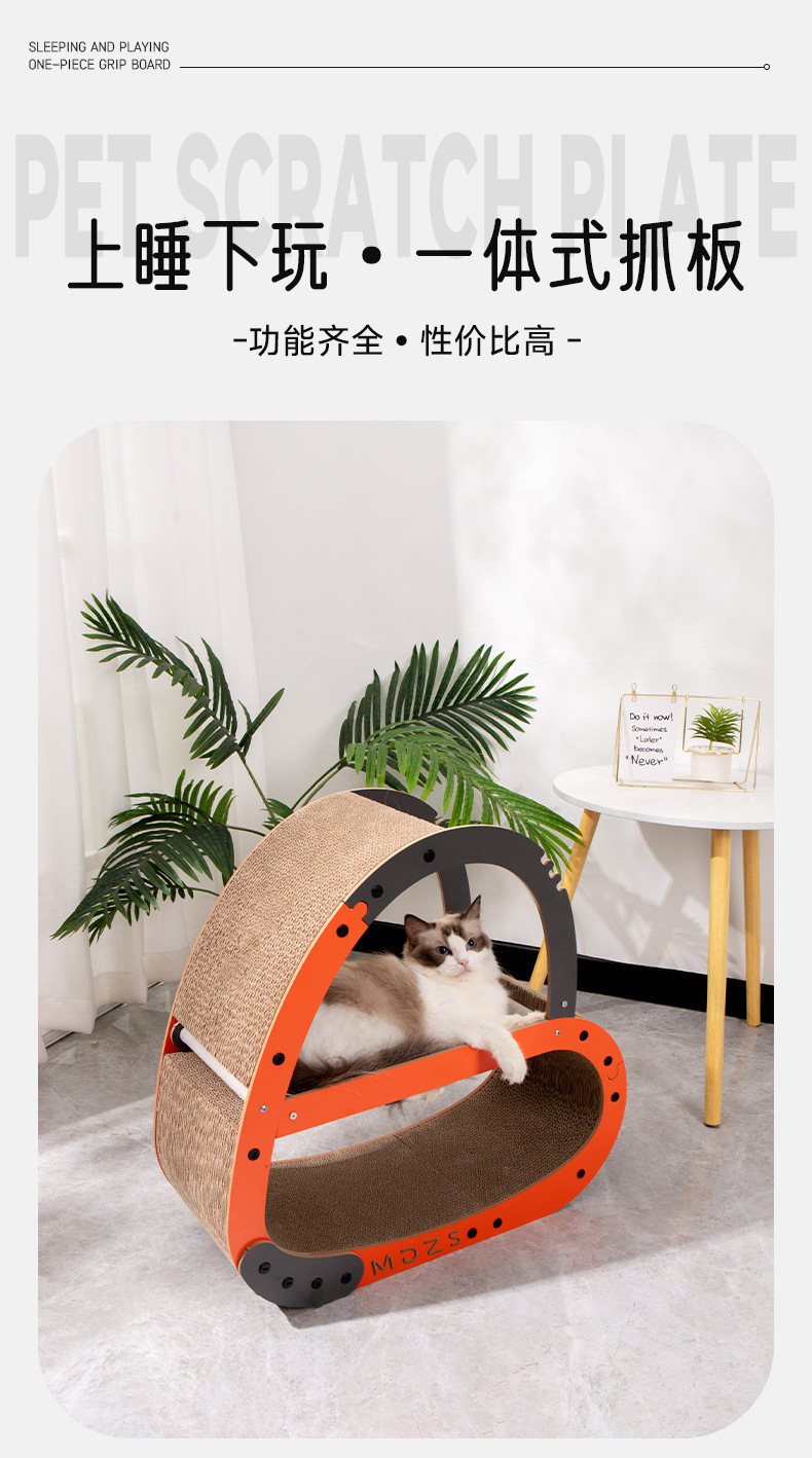 • 오렌지 그레이 장난감 자동차 고양이 긁는 기둥