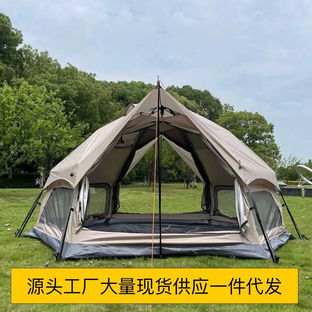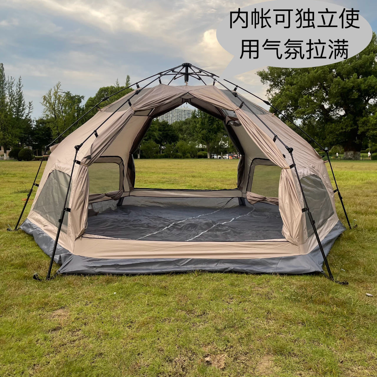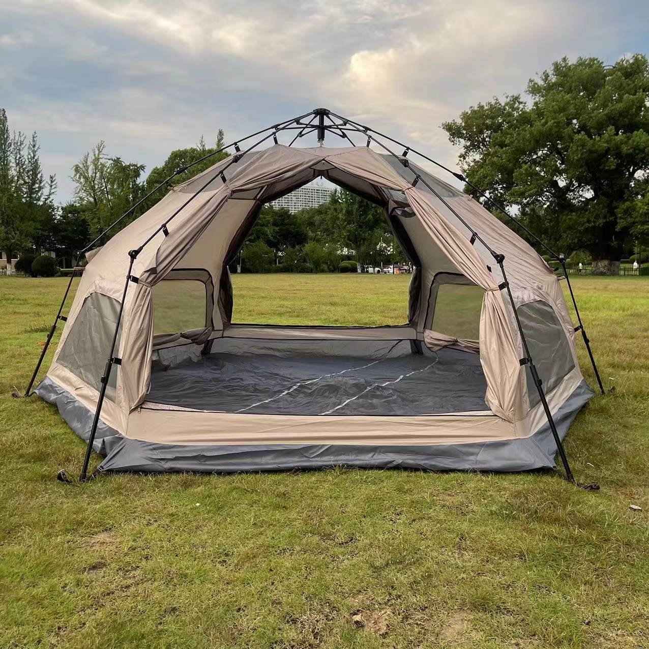 휴대용 빠른 오픈 육각형 5 ~ 8 명 자동 대형 텐트 더블 레이어 야외 캠핑 텐트 자동 버섯 텐트