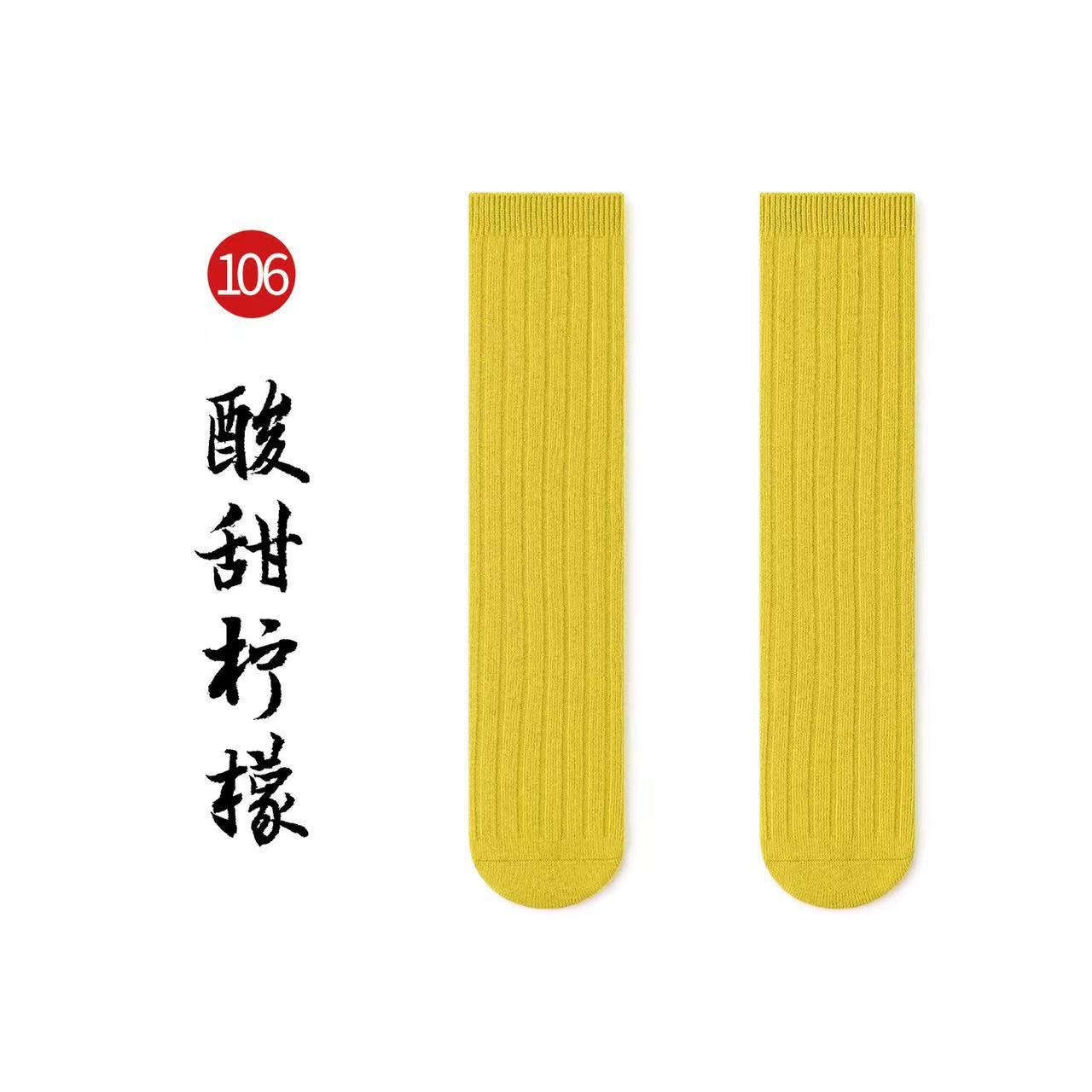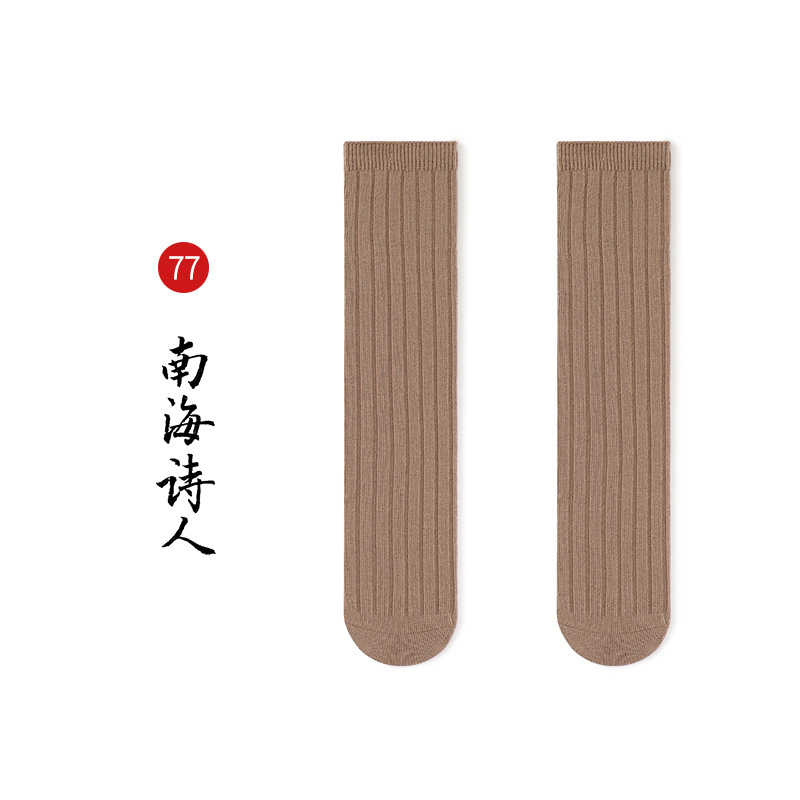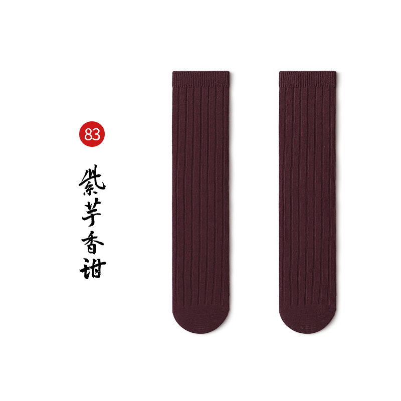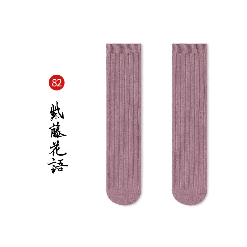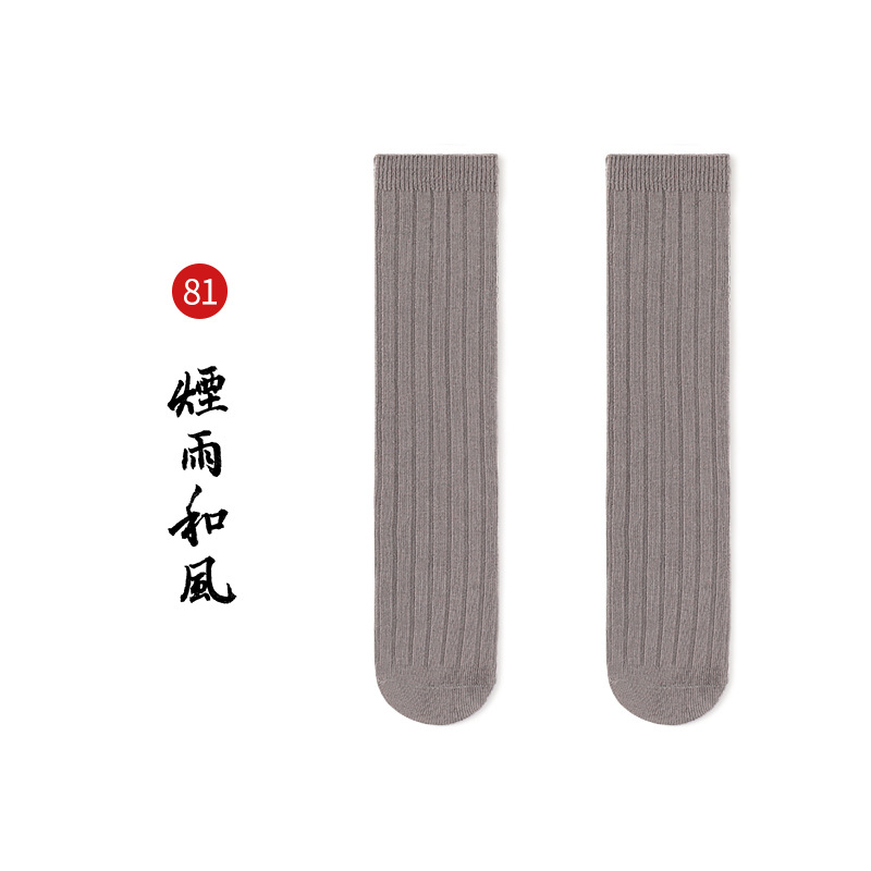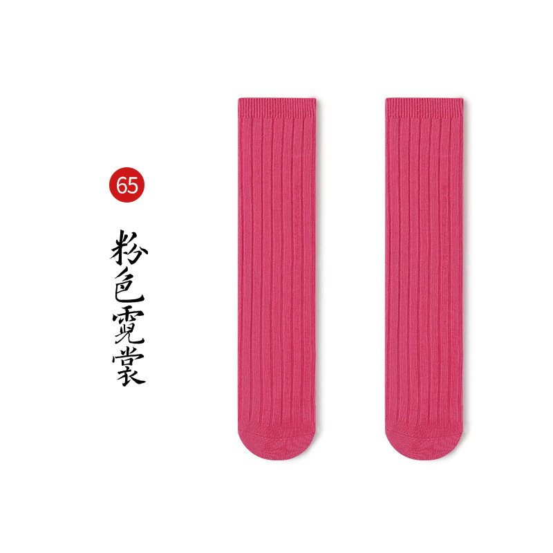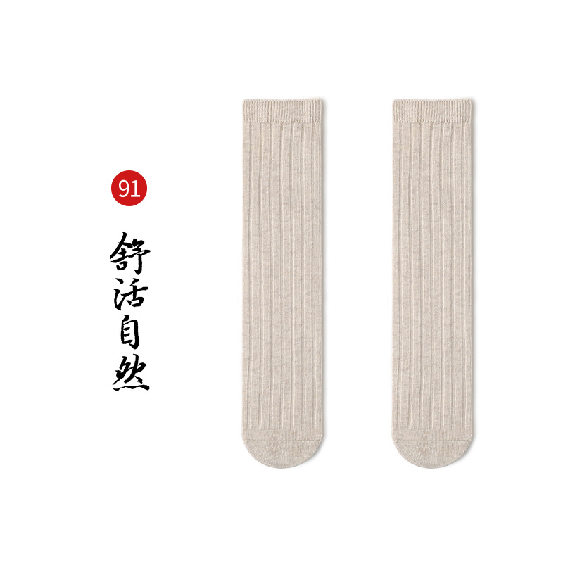 名称:秋冬儿童中筒袜男女童韩版宽条素色小腿袜精梳棉袜宝宝袜堆堆袜子