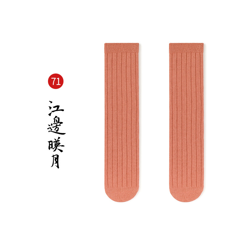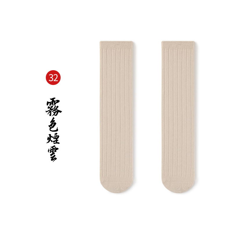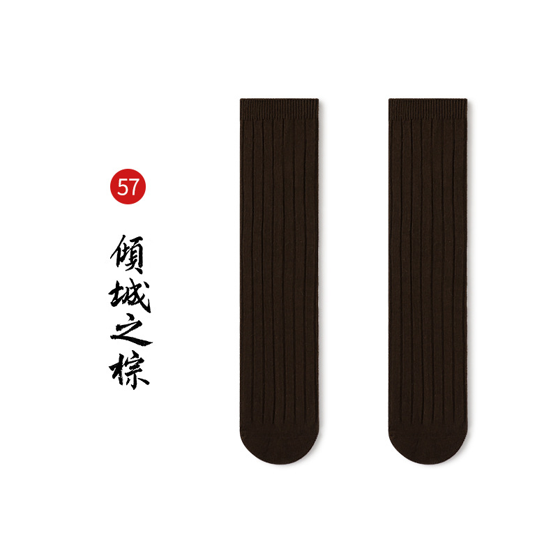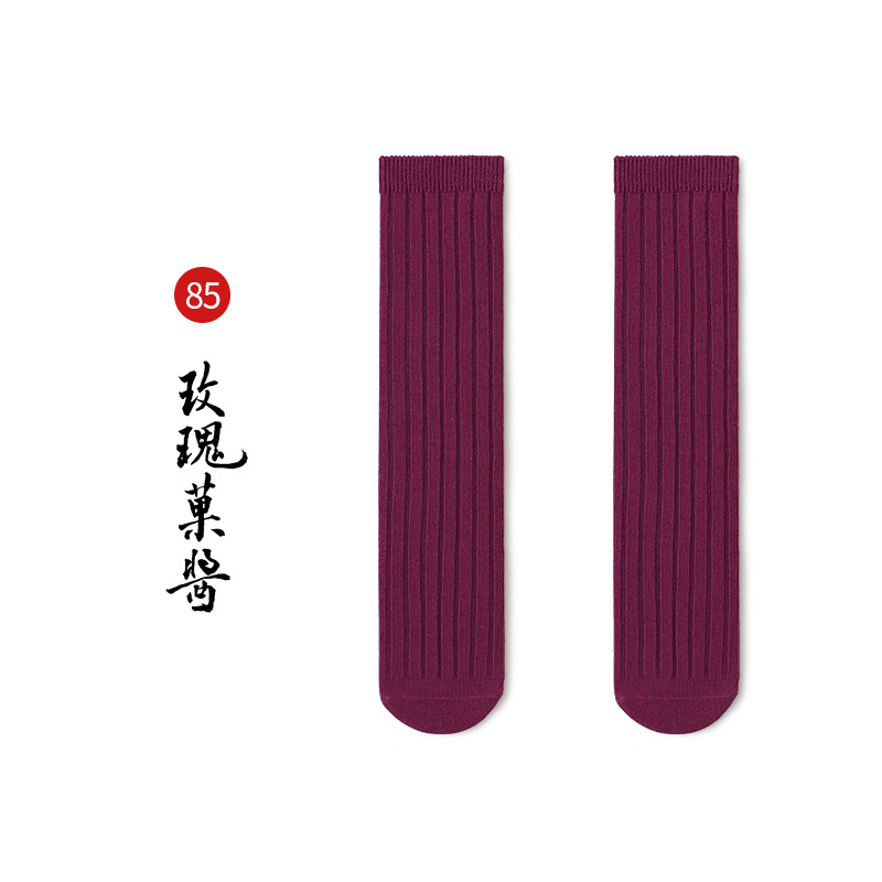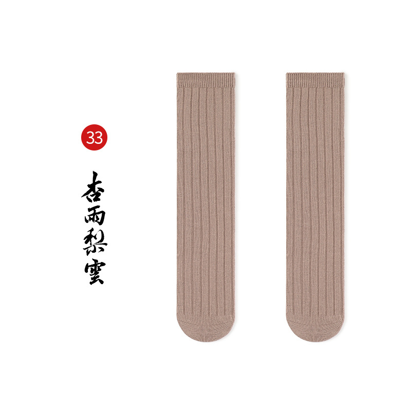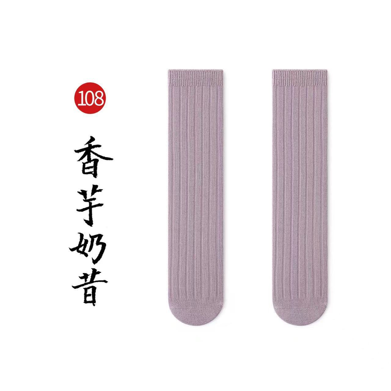 名称:秋冬儿童中筒袜男女童韩版宽条素色小腿袜精梳棉袜宝宝袜堆堆袜子