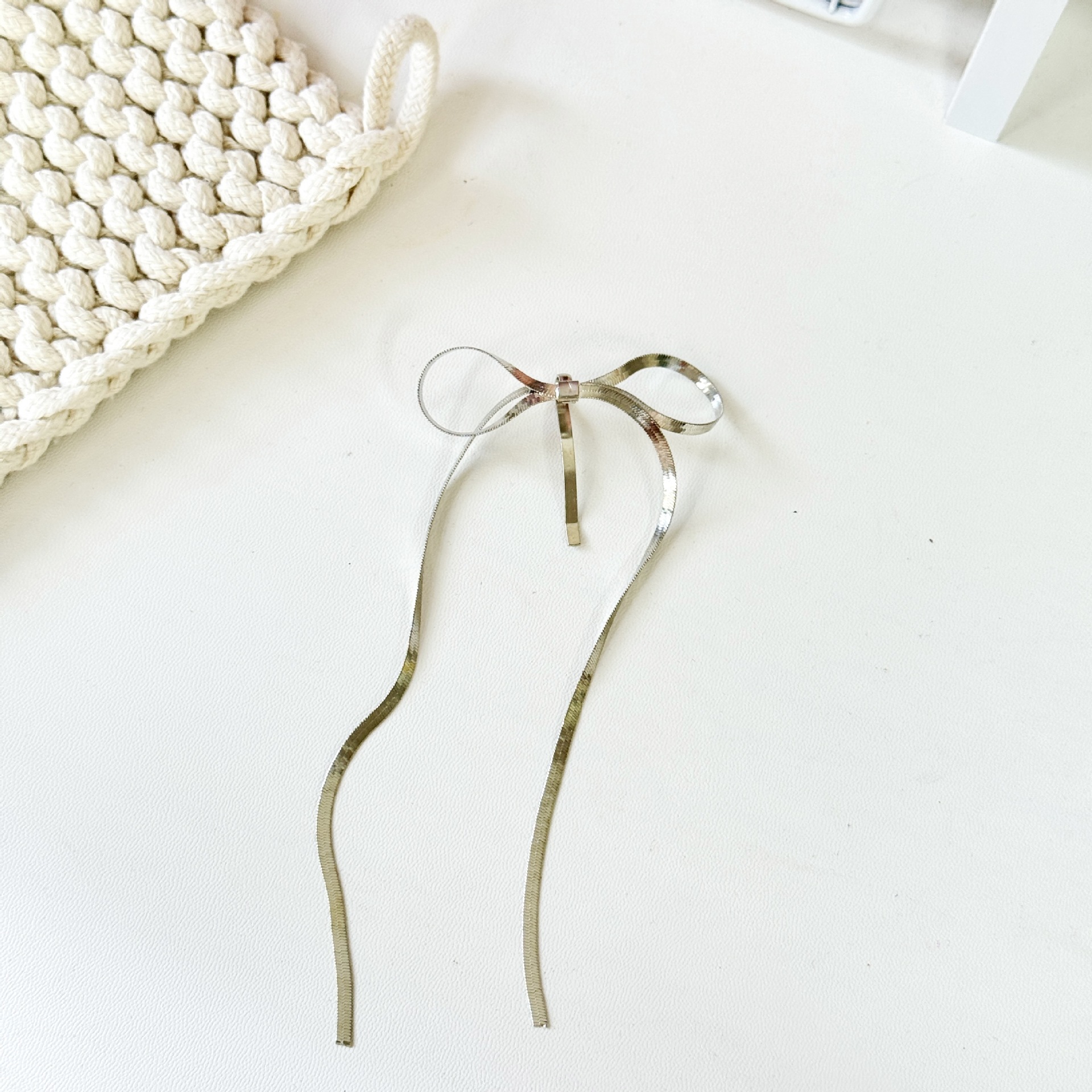 한국 새로운 스타일 활 머리핀 여성용 Ins 간단한 독특한 틈새 헤어핀 헤드웨어 헤어 실버 포니 테일 클립스토어 가기