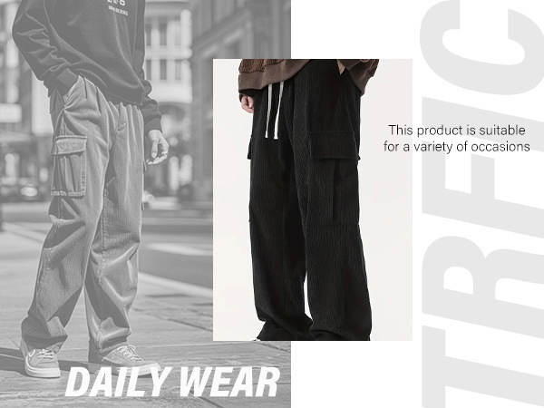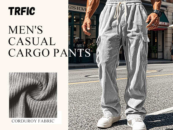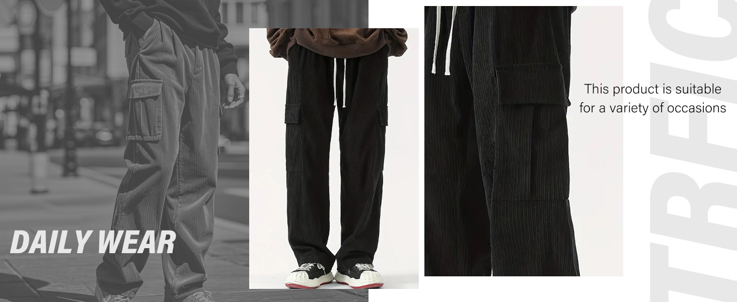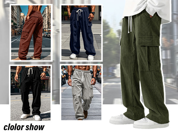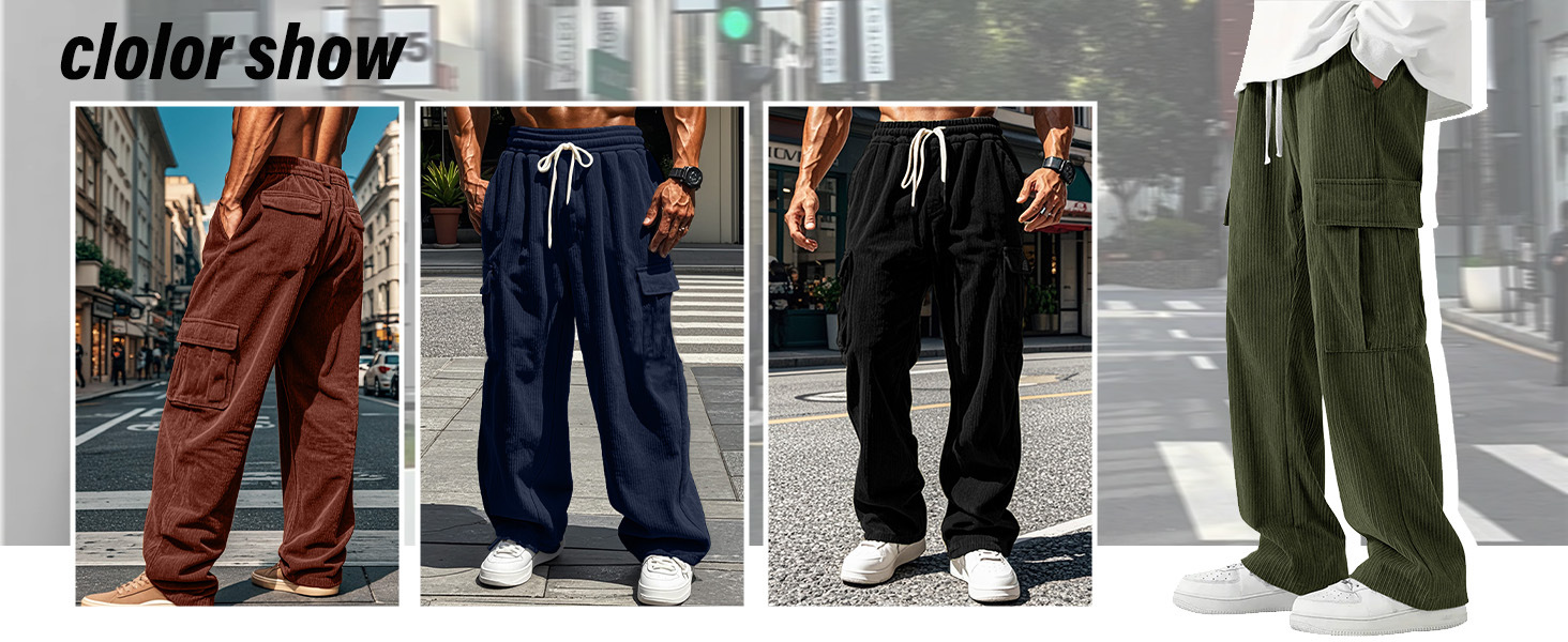 유럽과 미국의 국경 아마존 코듀로이 바지 남성 바지 가을, 겨울 캐주얼 통기성 넓은 다리 멀티 포켓 스트레이트 바지스토어 가기
