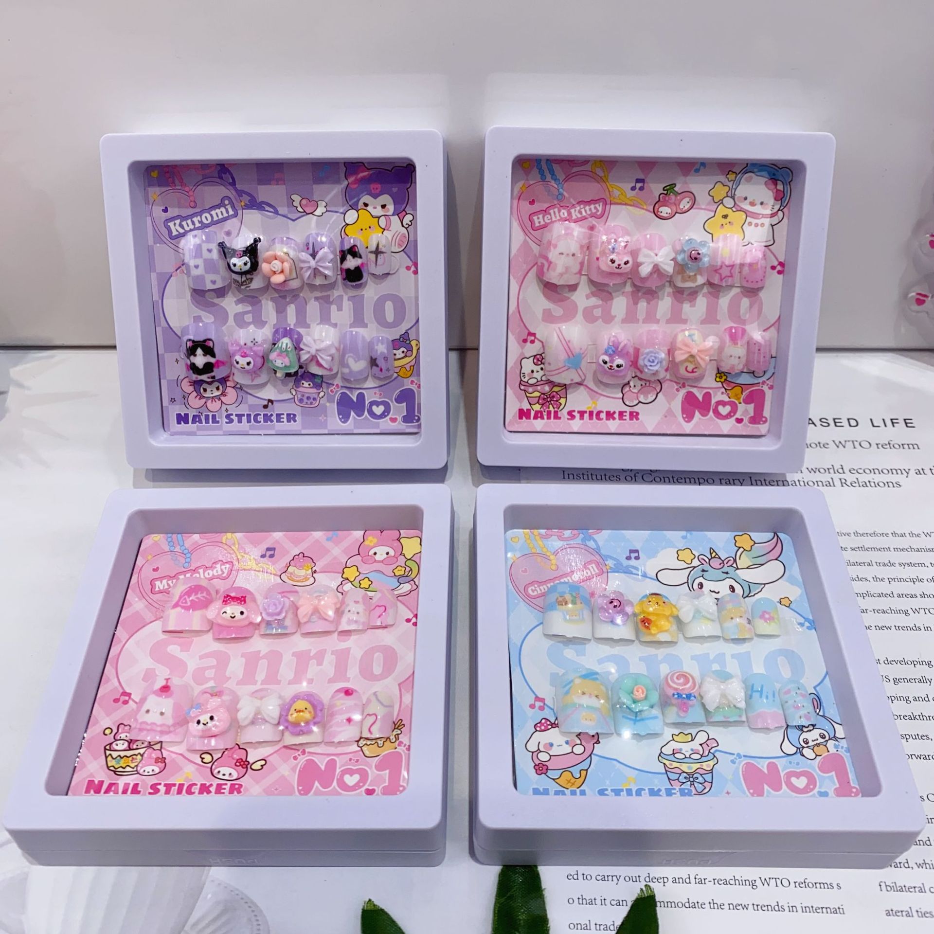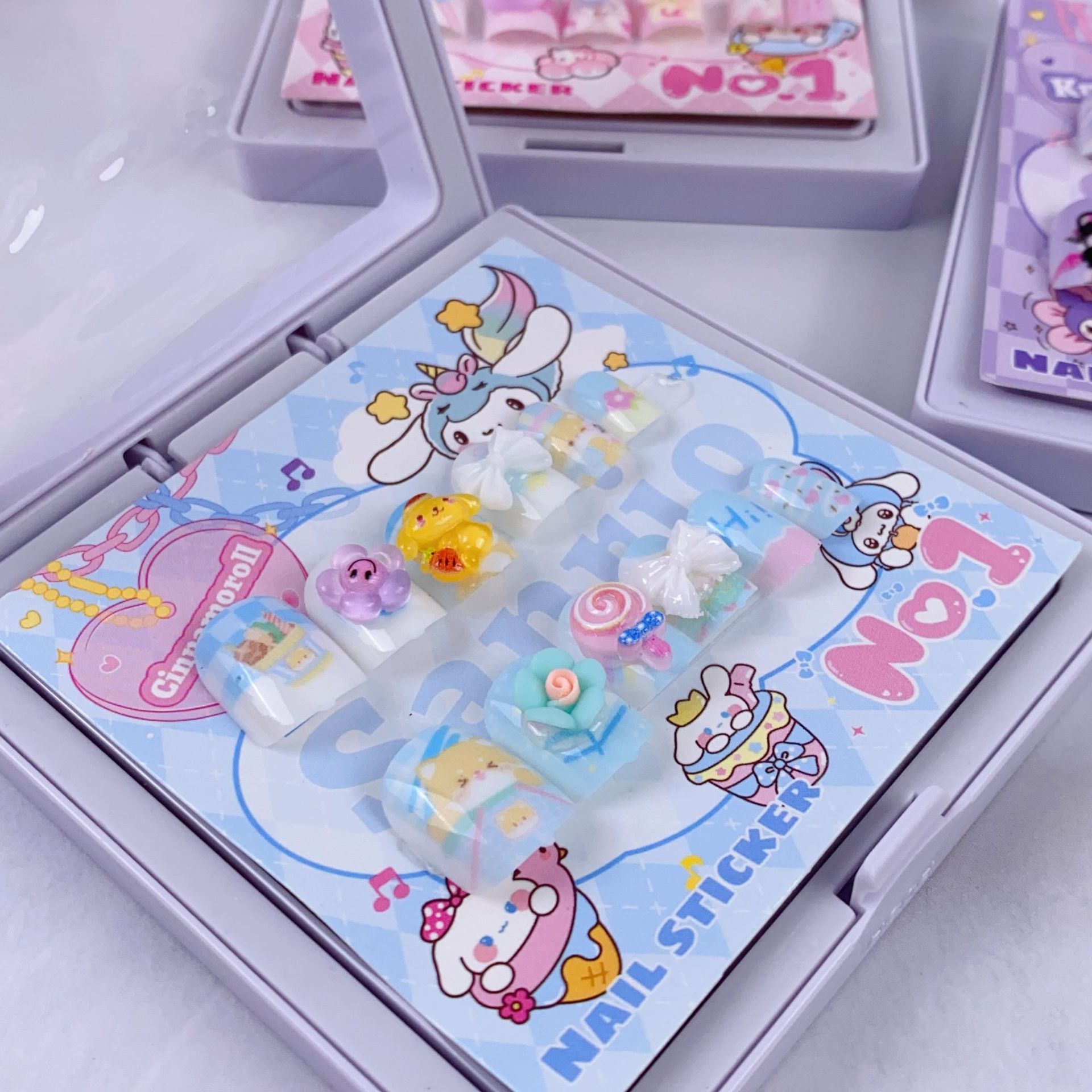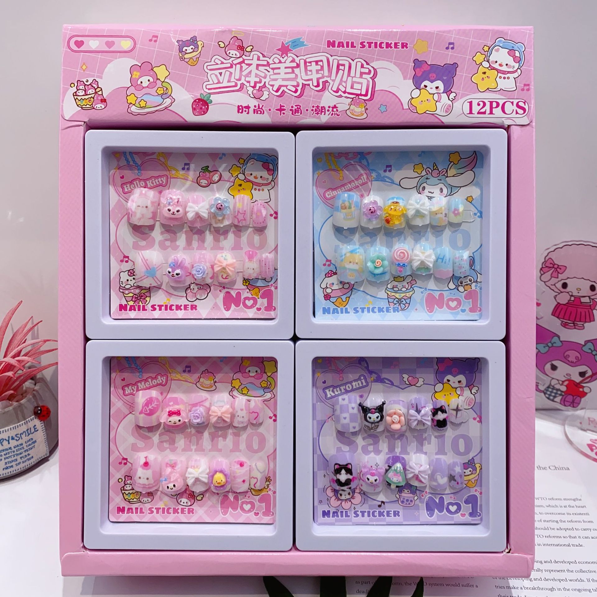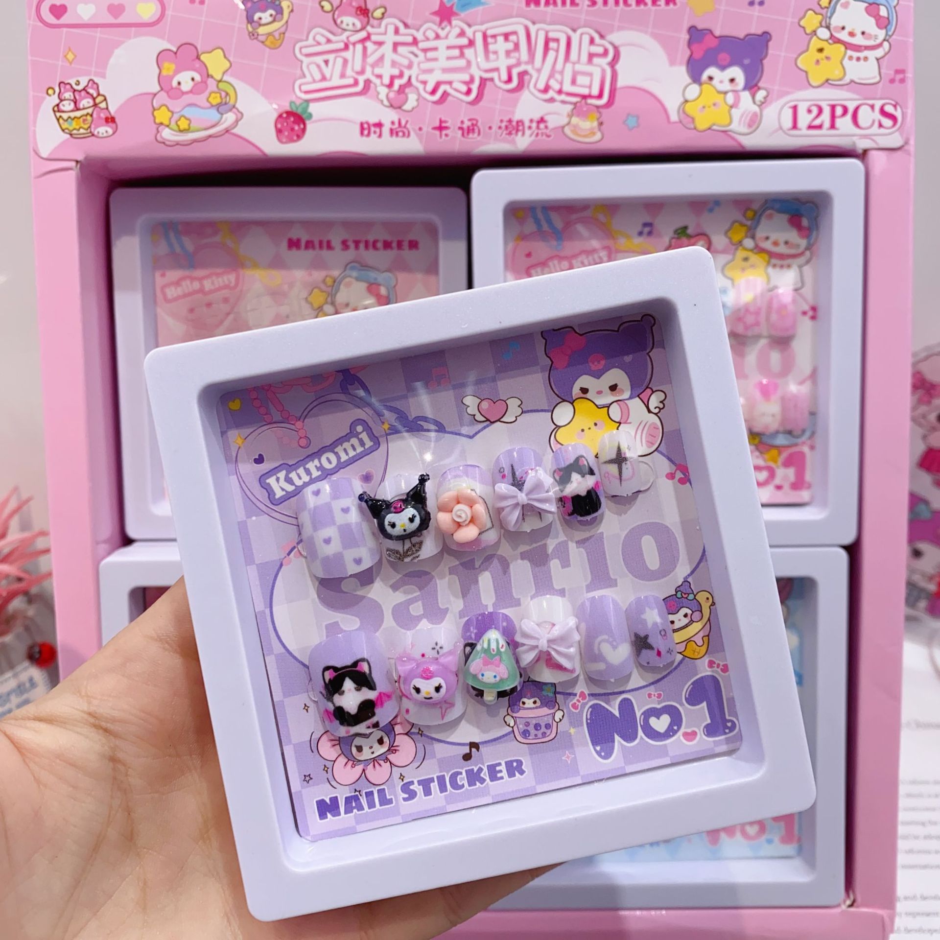 새로운 만화 산리오 3D 입체 아름다운 색상 착용 갑옷 자기 접착 백 접착 네일 스티커 귀여운 소녀의 심장 네일 스티커스토어 가기