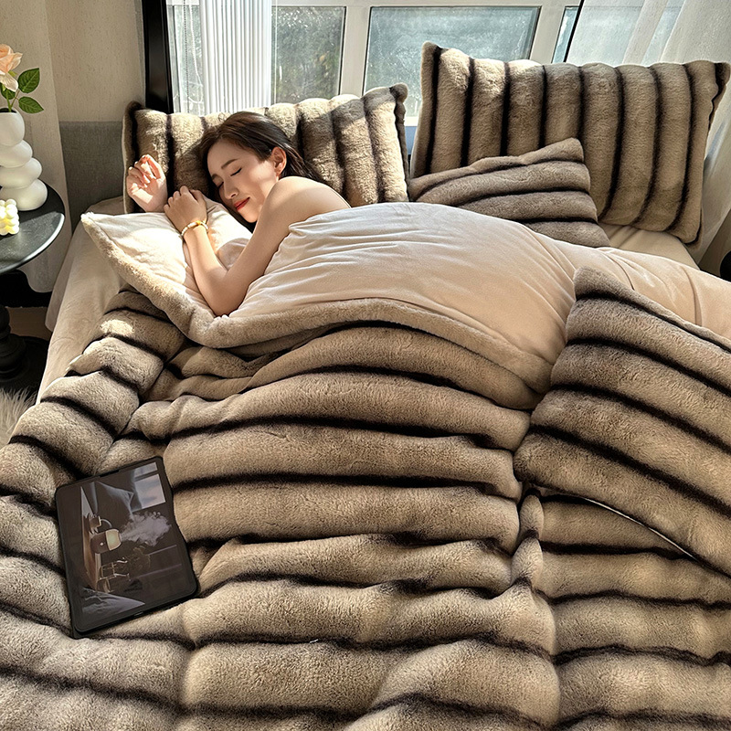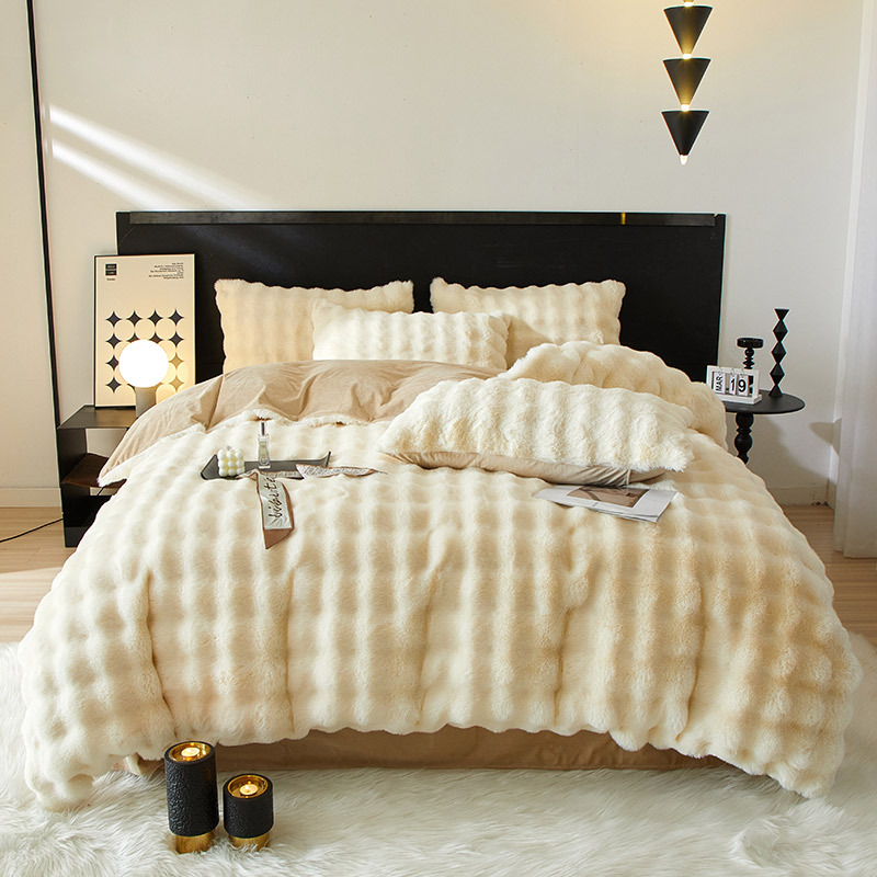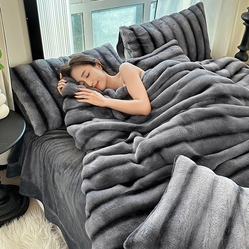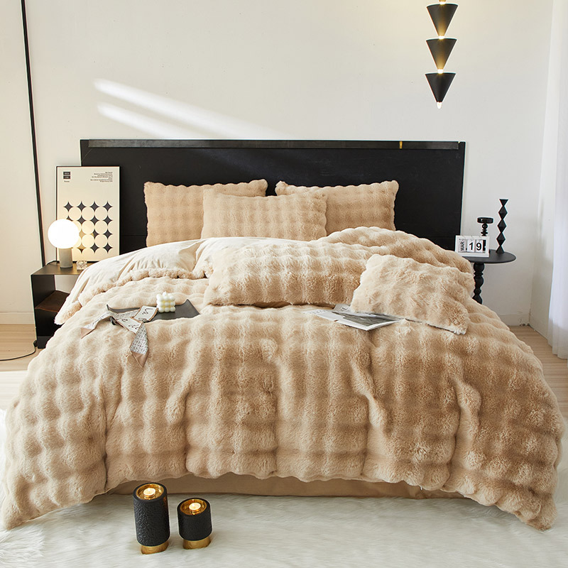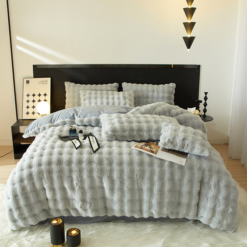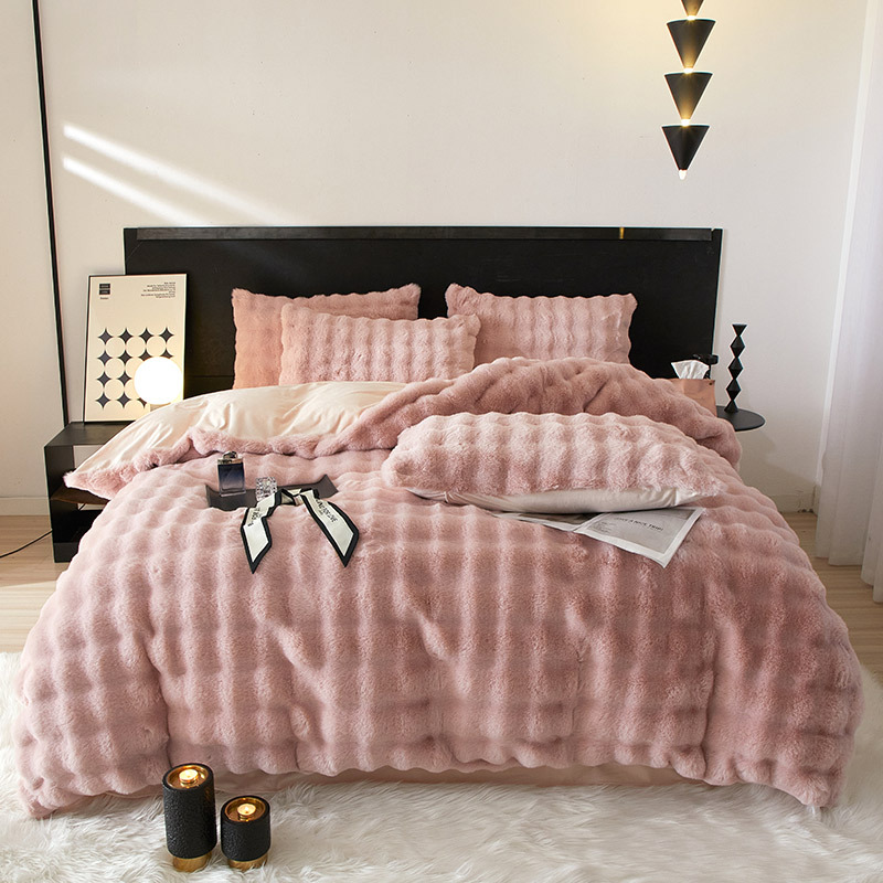 2024高端A类高克重580獭兔毛婴儿绒皮双面加厚牛奶绒兔兔绒四件套