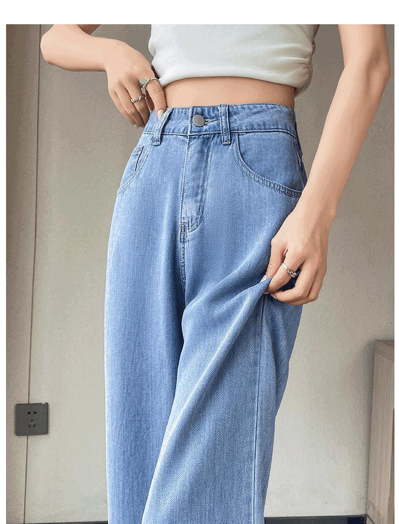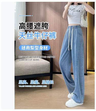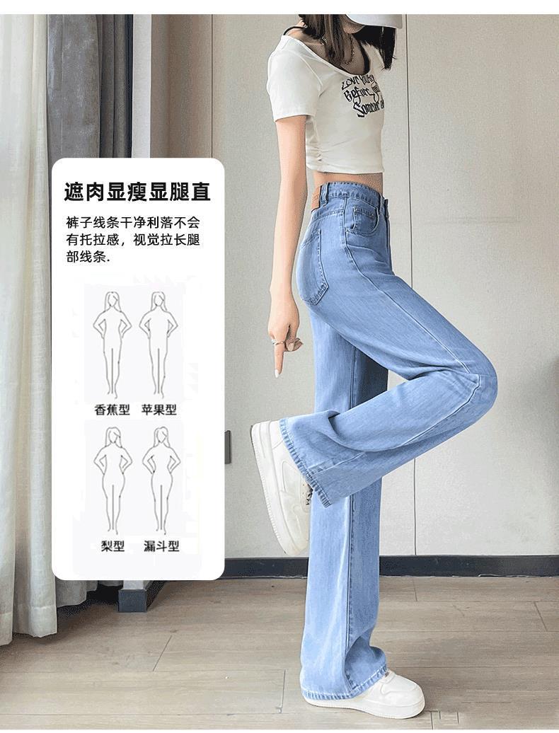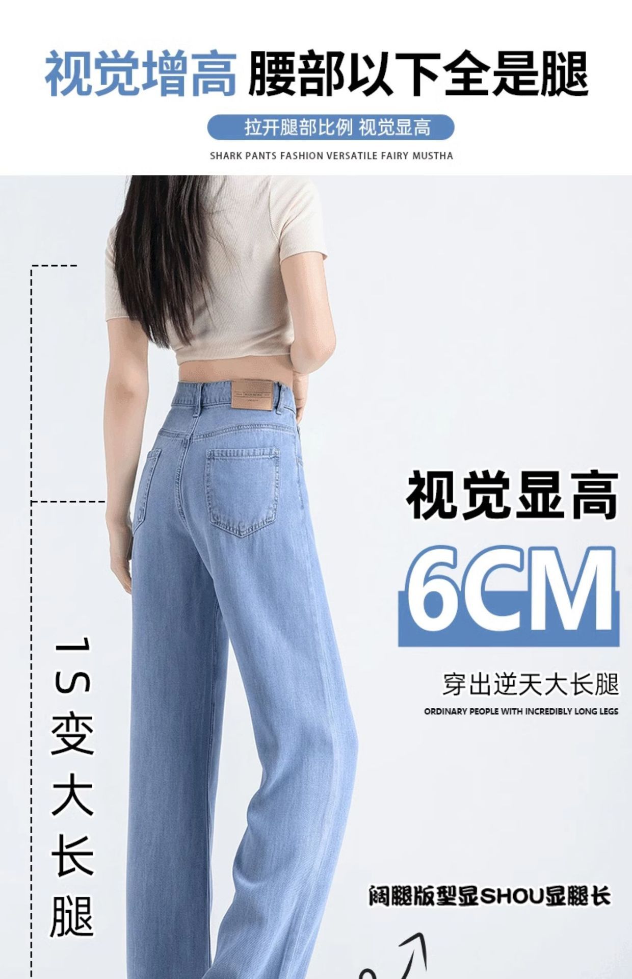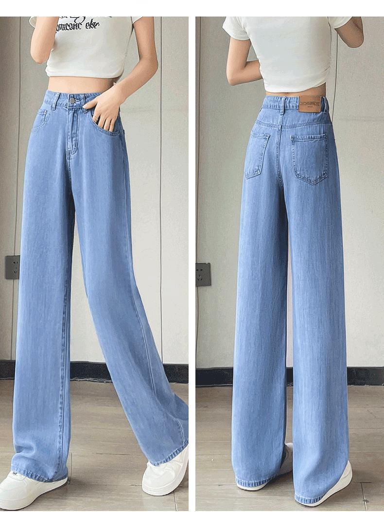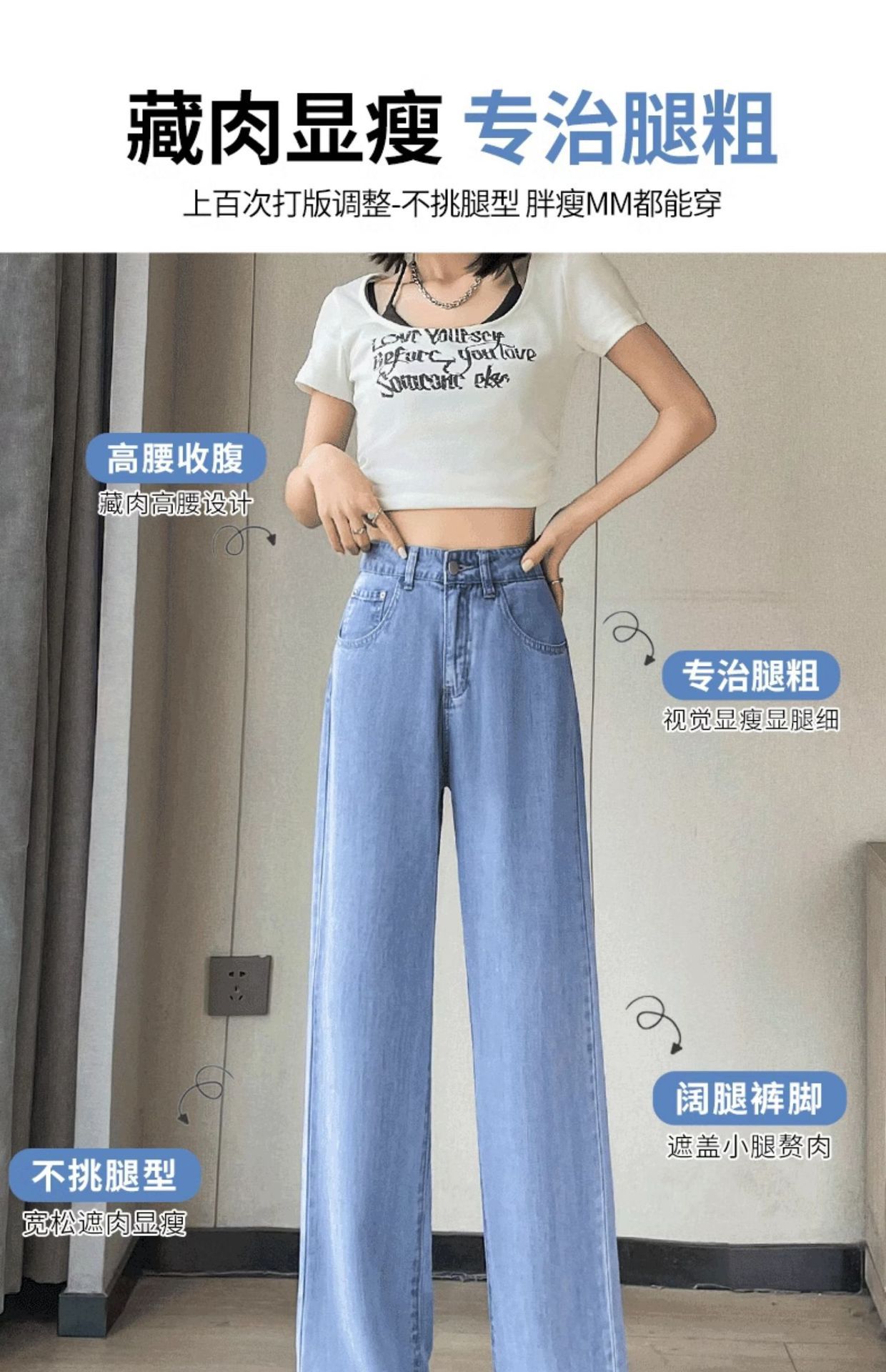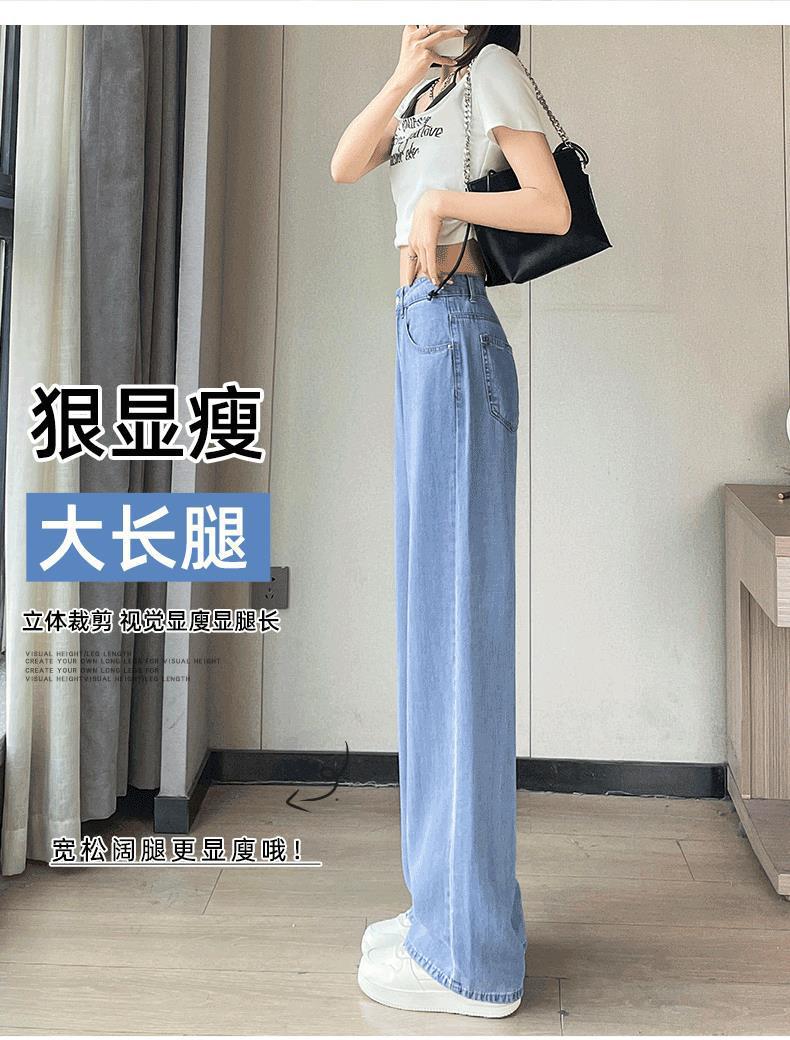 Tencel 청바지 여성용 여름 얇은 2024 새로운 라이트 컬러 Lyocell 딥 스트레이트 아이스 실크 와이드 레그 바지스토어 가기