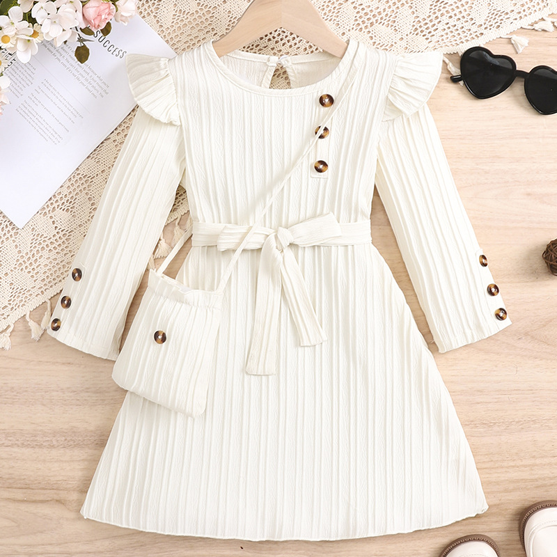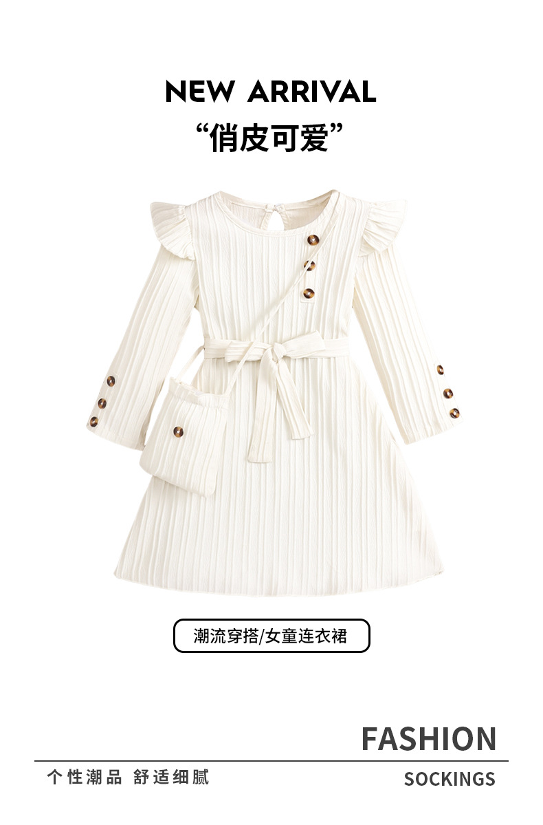 레이스 샤넬 스타일 허리 줄무늬 사첼 어린이 가을 치마와 함께 새로운 소녀의 원피스 흰색 긴 소매스토어 가기