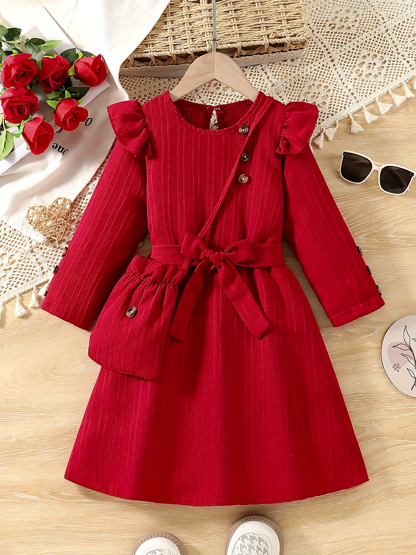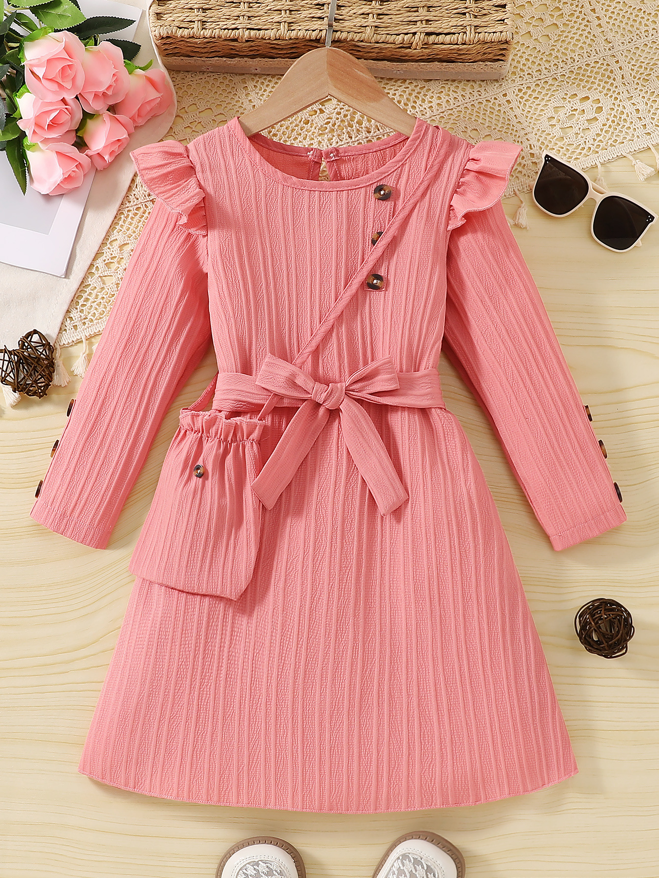 레이스 샤넬 스타일 허리 줄무늬 사첼 어린이 가을 치마와 함께 새로운 소녀의 원피스 흰색 긴 소매