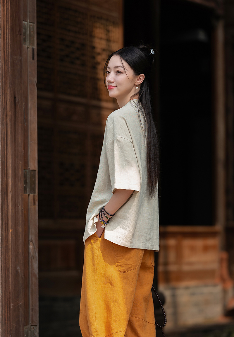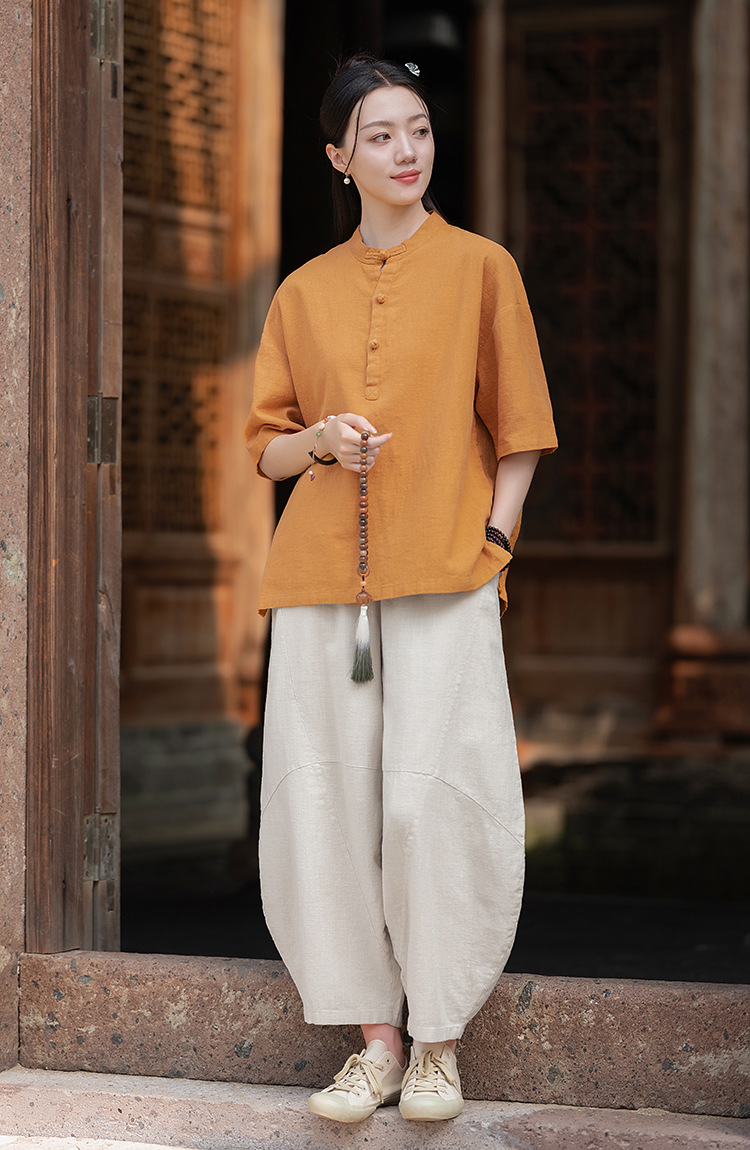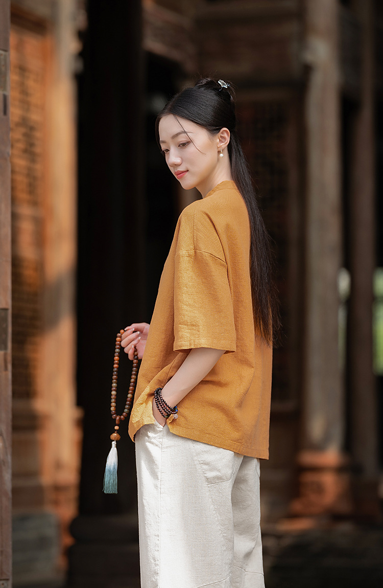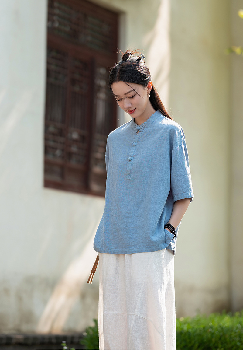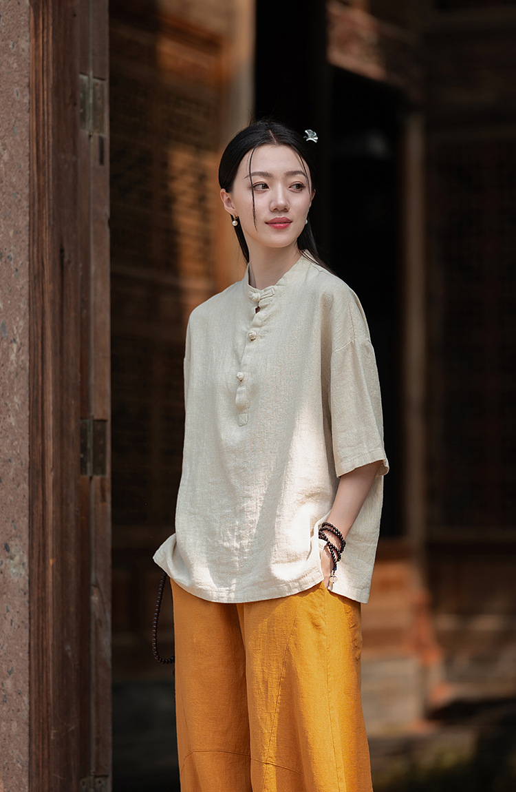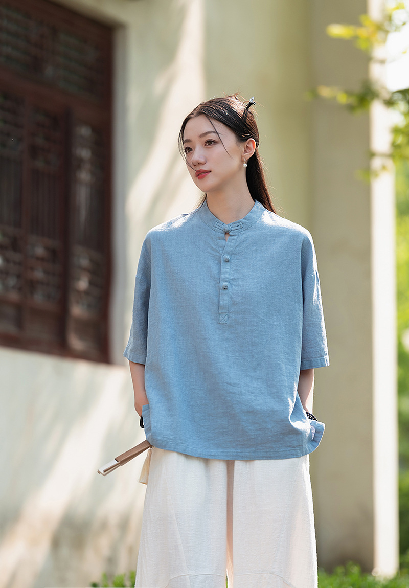 25 오리지널 코튼 및 린넨 여성용 모시 중국 스타일 복고풍 버튼 반팔 탑 여성용 선 스트리트 워시 코튼 및 린넨 셔츠스토어 가기