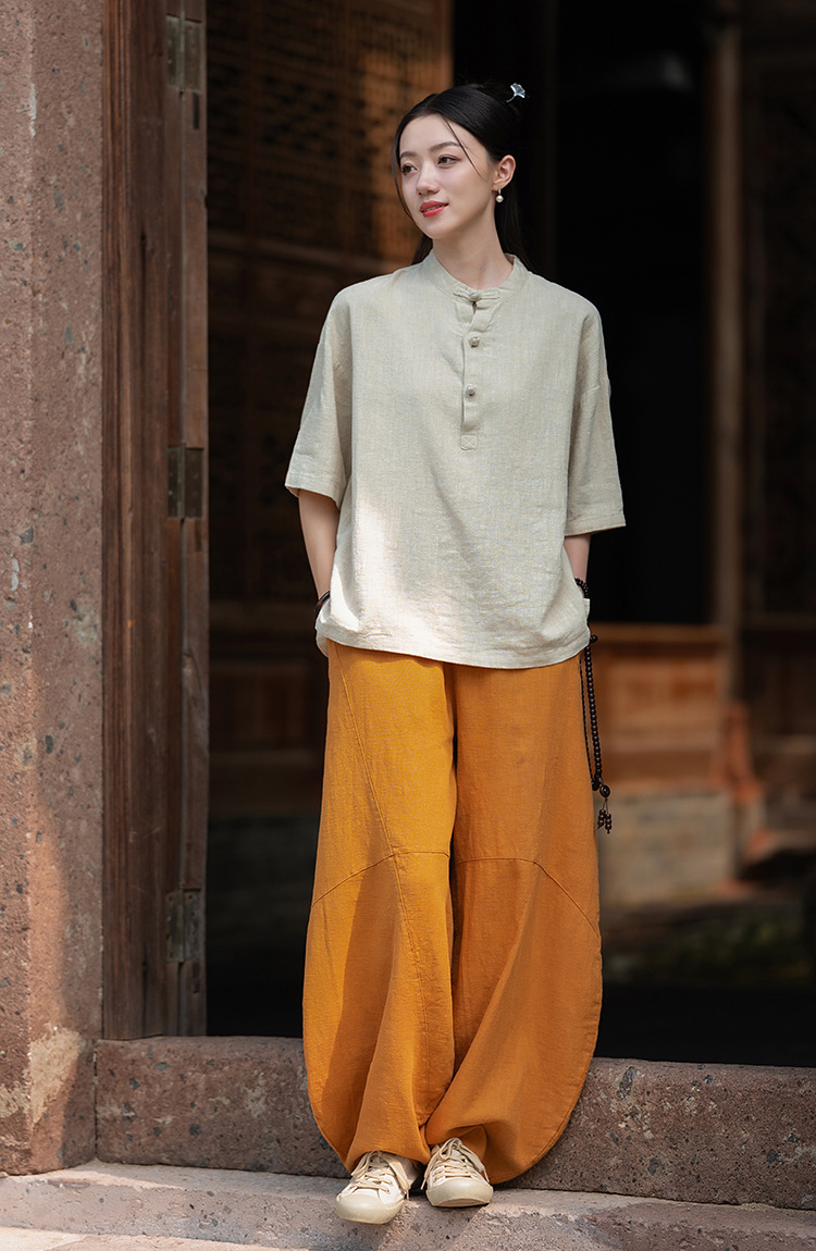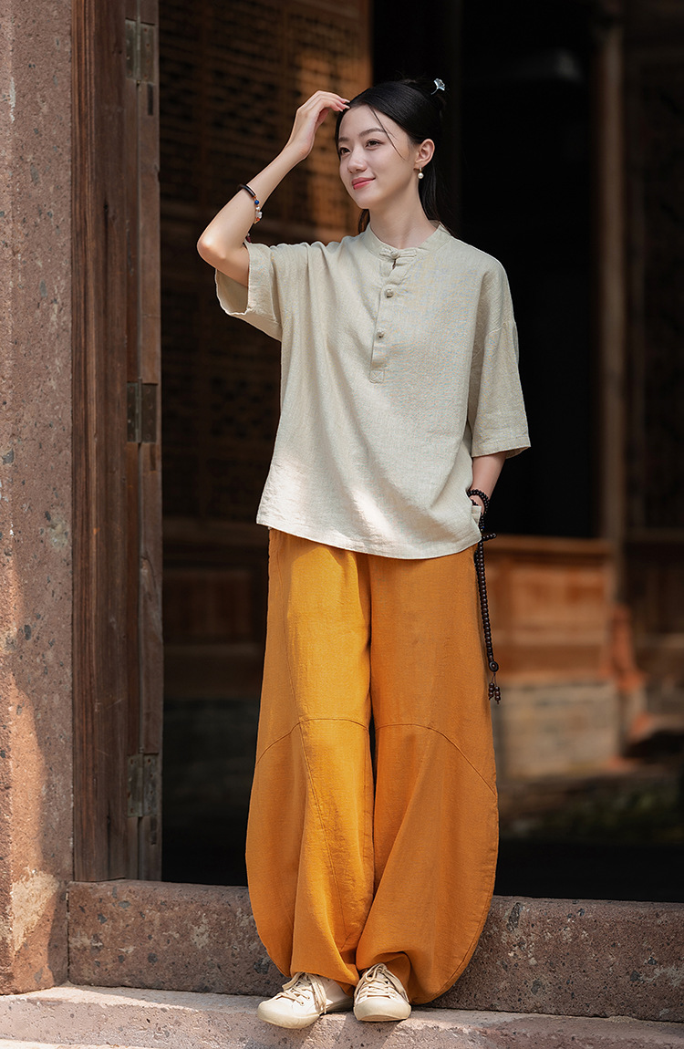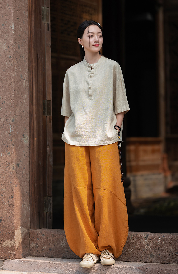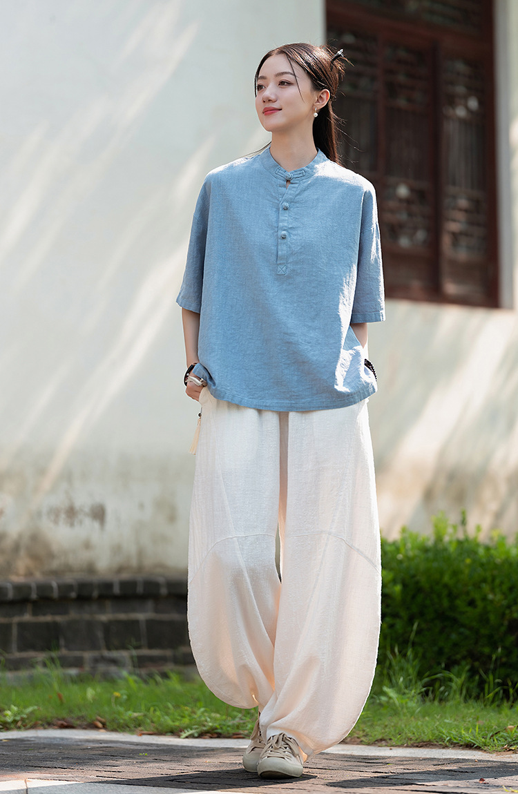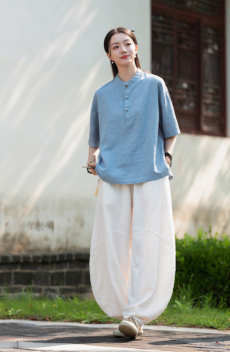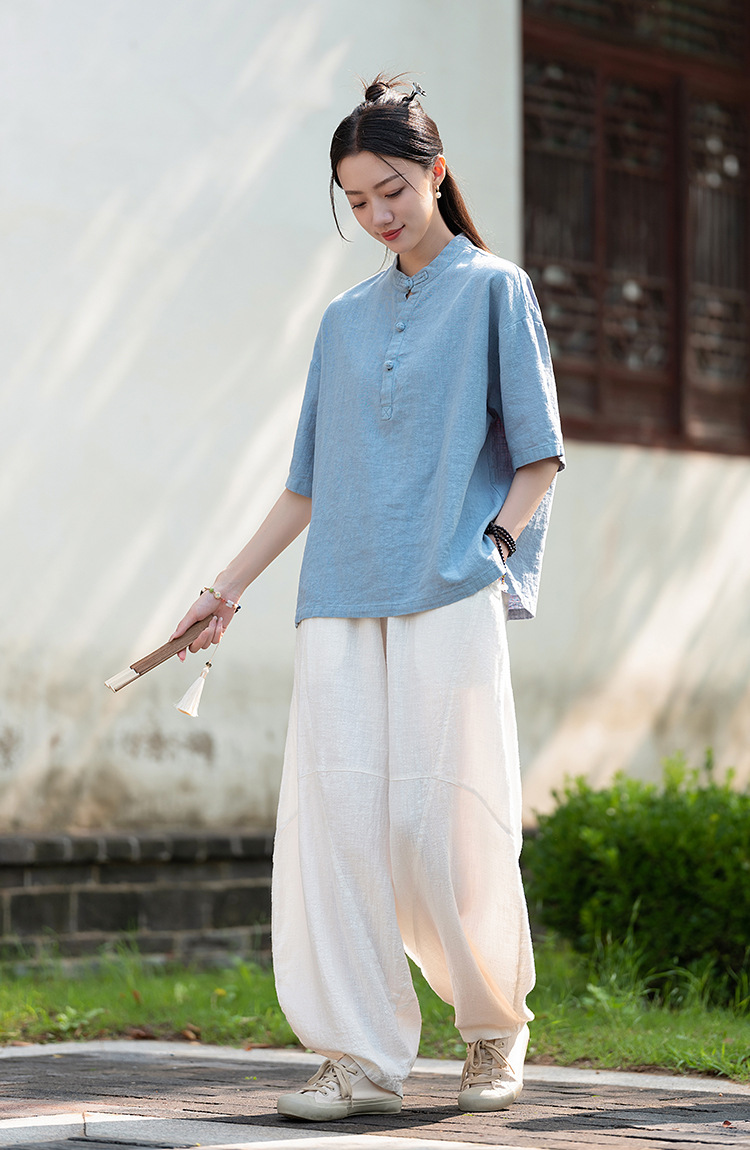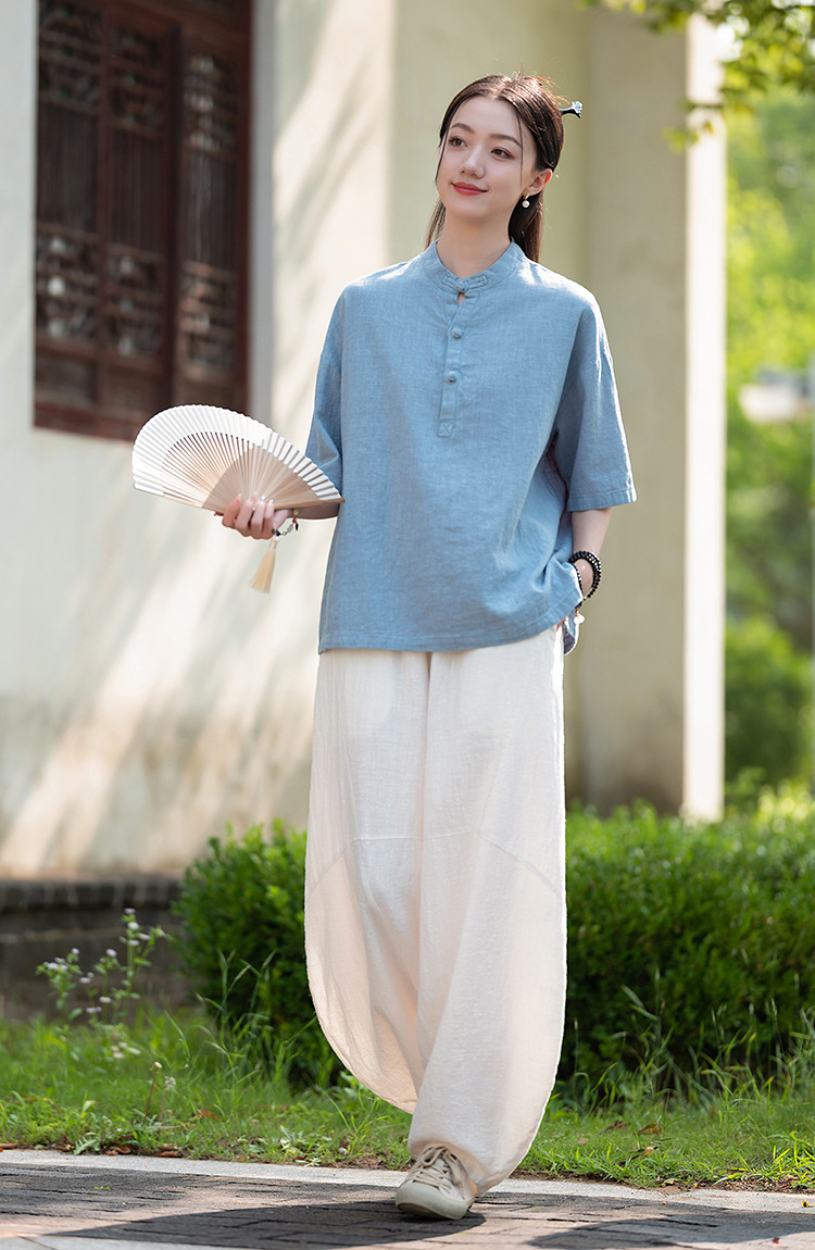 25 오리지널 코튼 및 린넨 여성용 모시 중국 스타일 복고풍 버튼 반팔 탑 여성용 선 스트리트 워시 코튼 및 린넨 셔츠스토어 가기