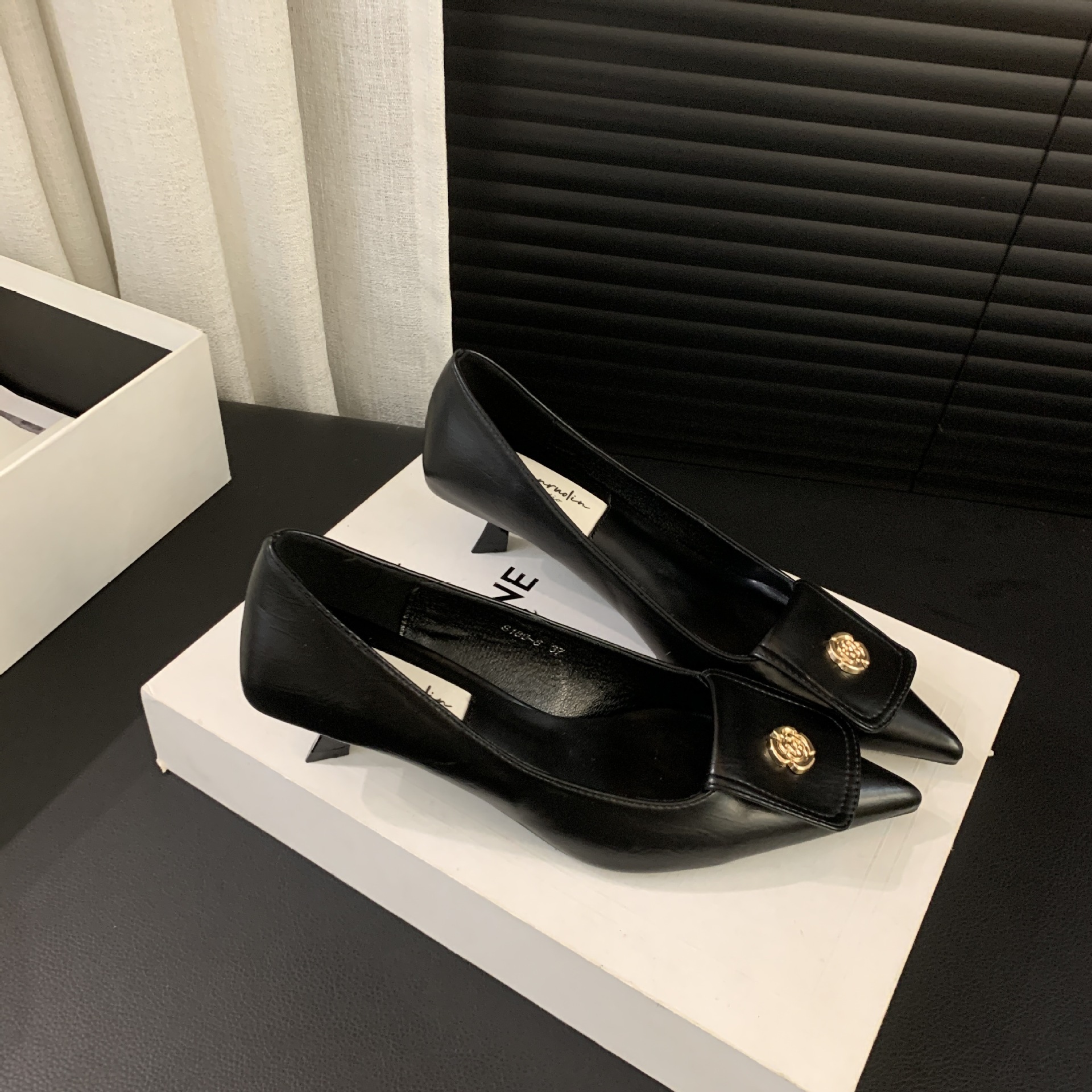 프랑스 뾰족한 우아한 스틸레토 힐 레트로 이브닝 스타일 원피스 샤넬 스타일 싱글 레이어 신발스토어 가기