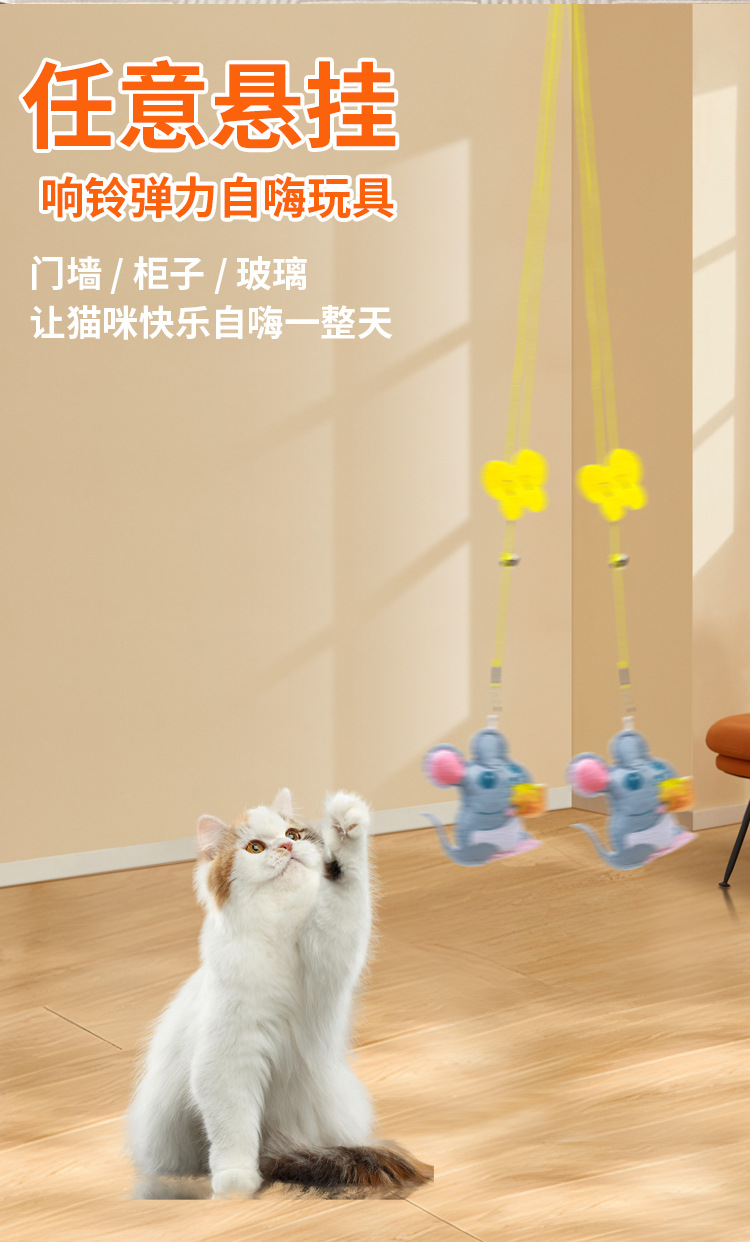 새로운 만화 고양이 높은 탄성 자기 안녕 장난감 개폐식 매달려 벨 소리 스윙 장난감