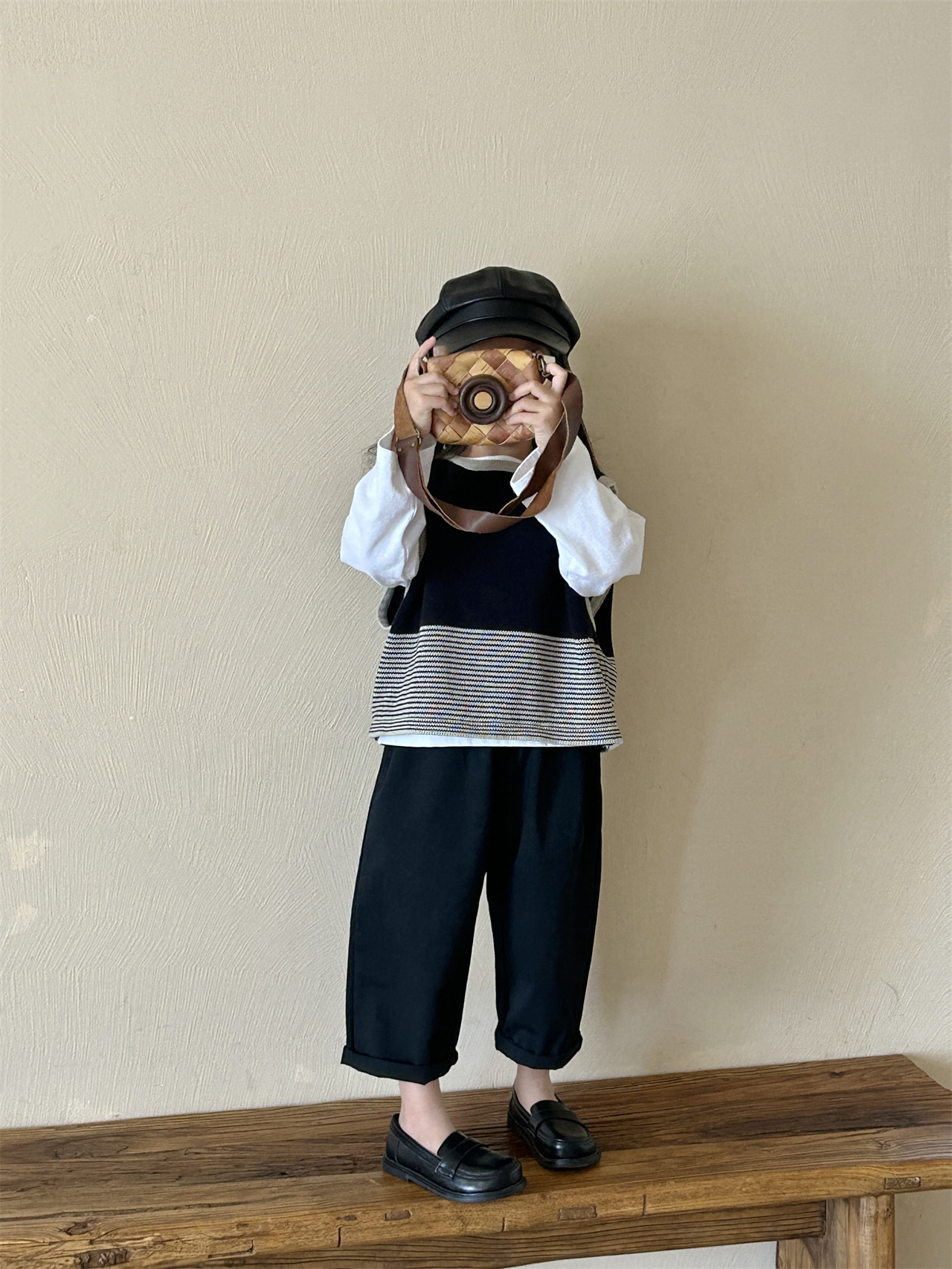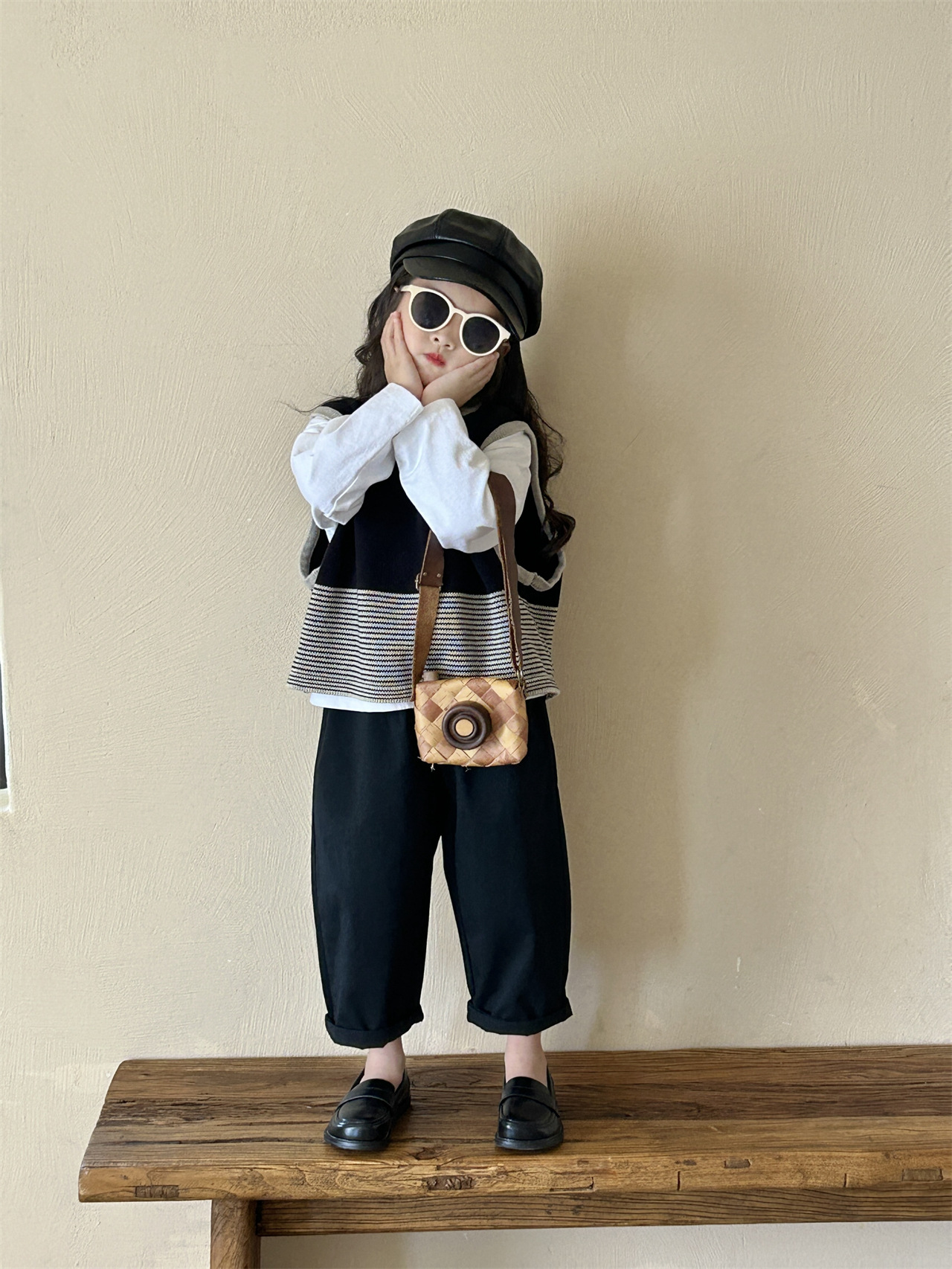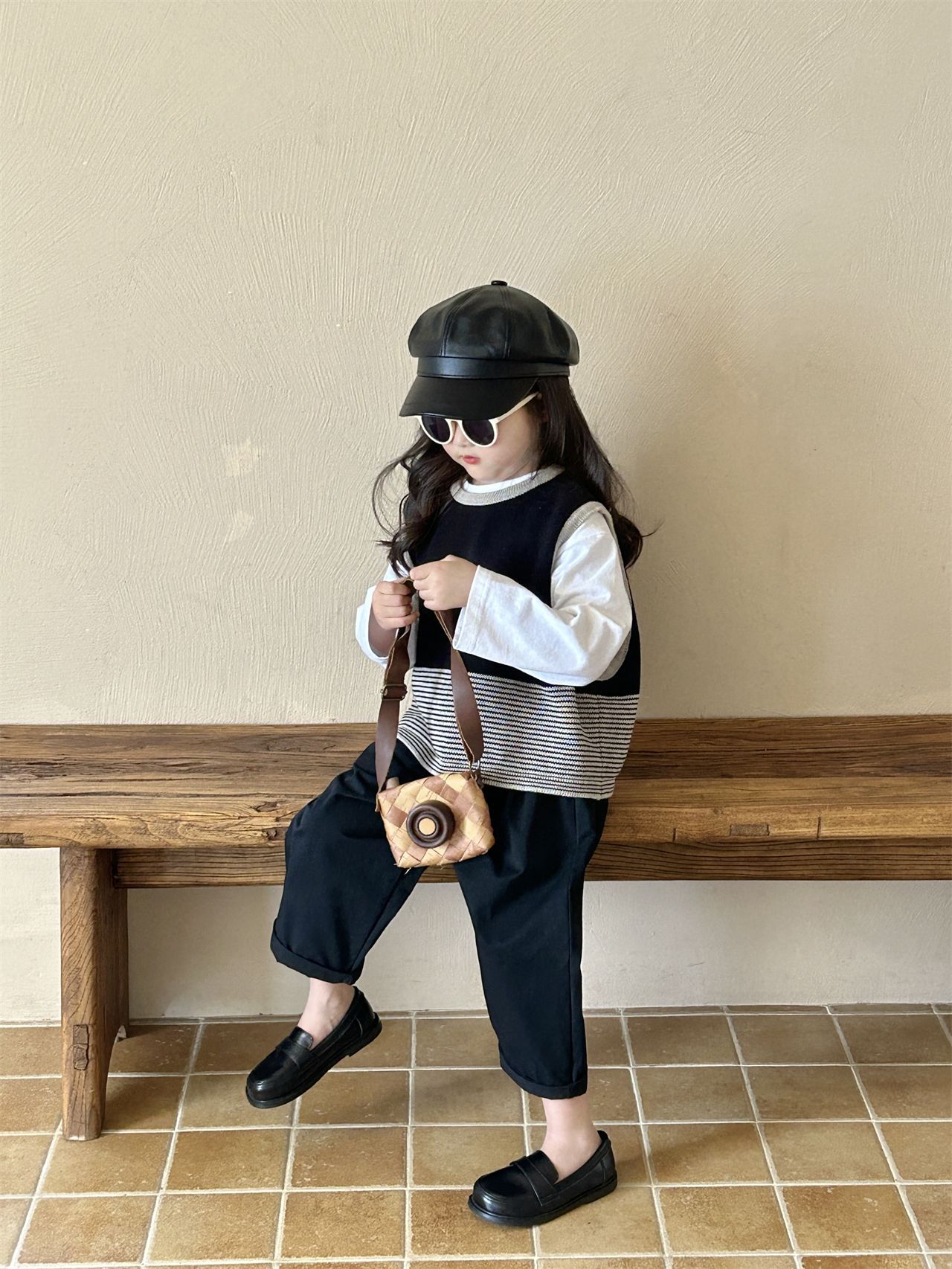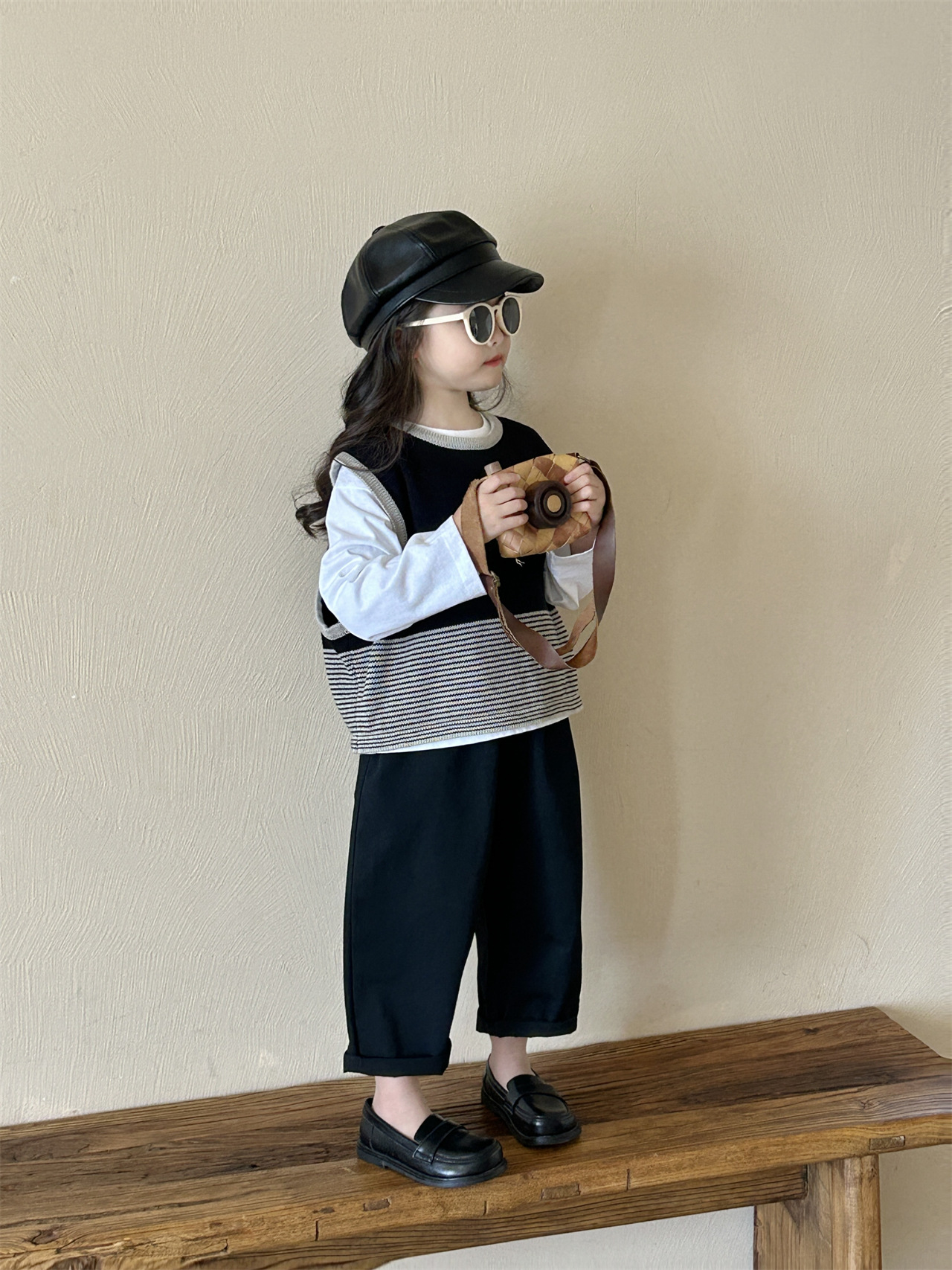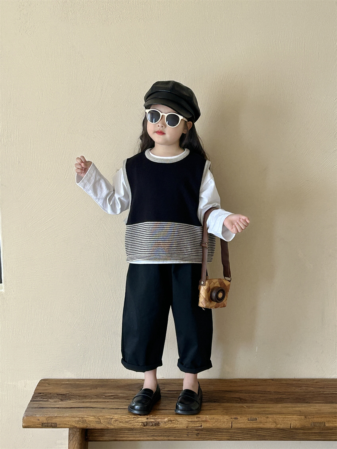 어린이 한국 스타일 스웨터 2025 봄, 가을 새로운 여자 의류 줄무늬 조끼 아기 풀오버 양모 조끼 캐주얼 바지