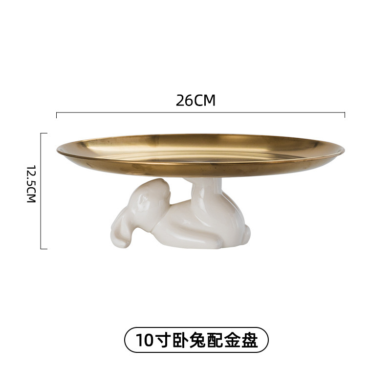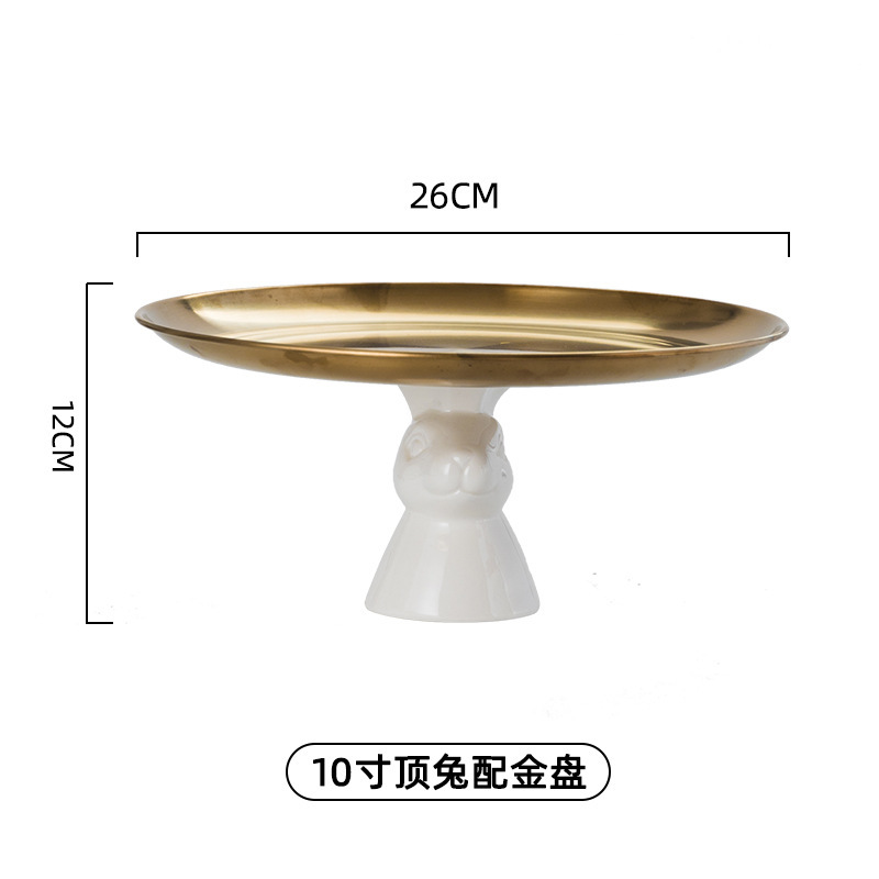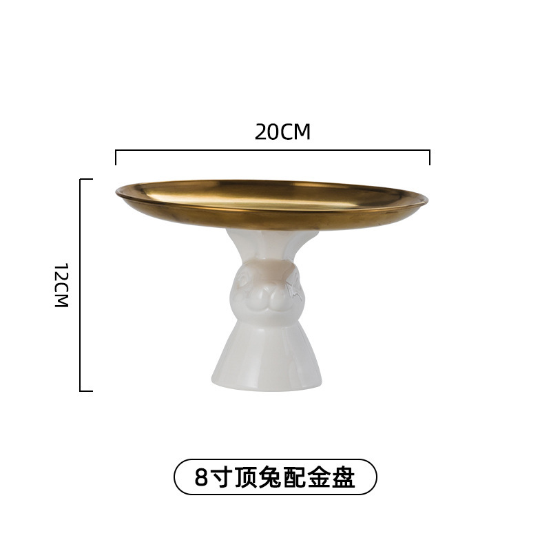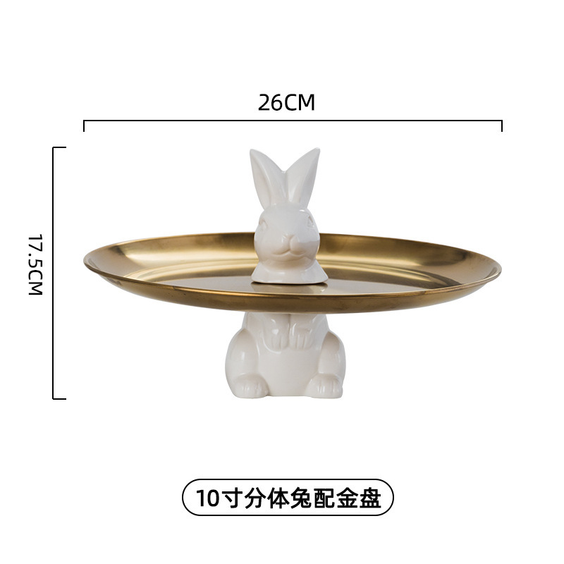 스테인레스 스틸 플레이트 케이크 플레이트와 새로운 창조적 인 세라믹 동물 토끼 보석 주요 화장품 저장 트레이