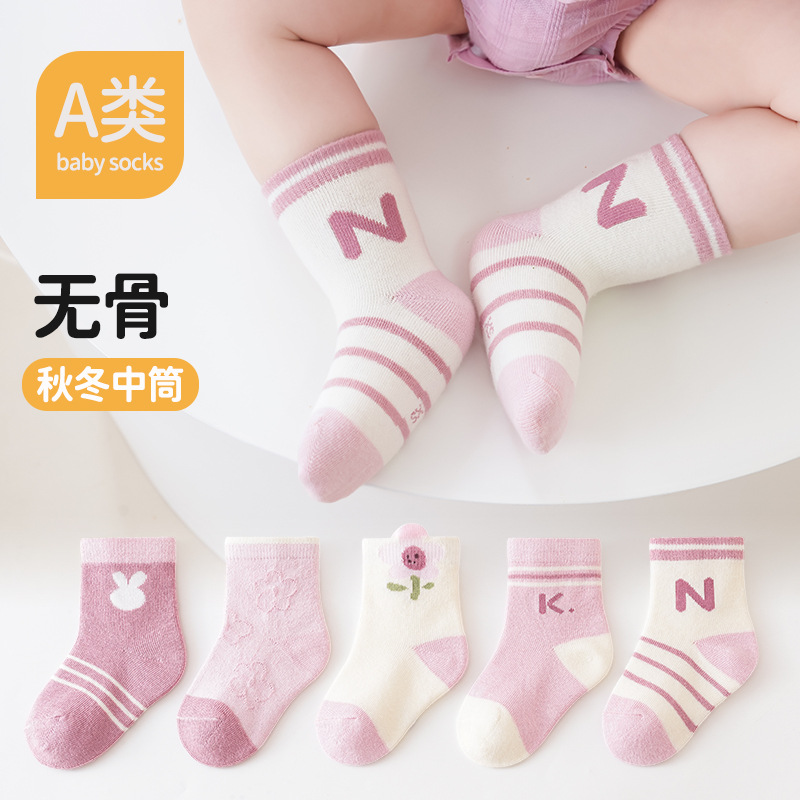아기 양말 가을과 겨울 새로운 어린이 양말 만화 남녀 순수한면 양말 뼈없는 느슨한 신생아 양말스토어 가기
