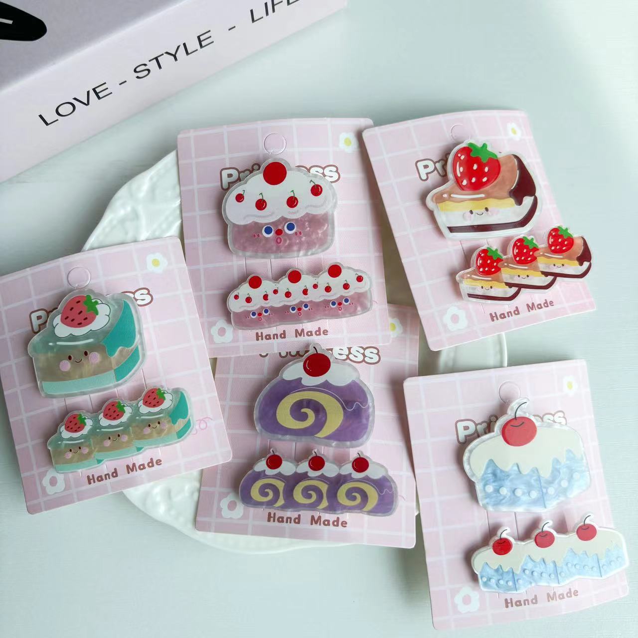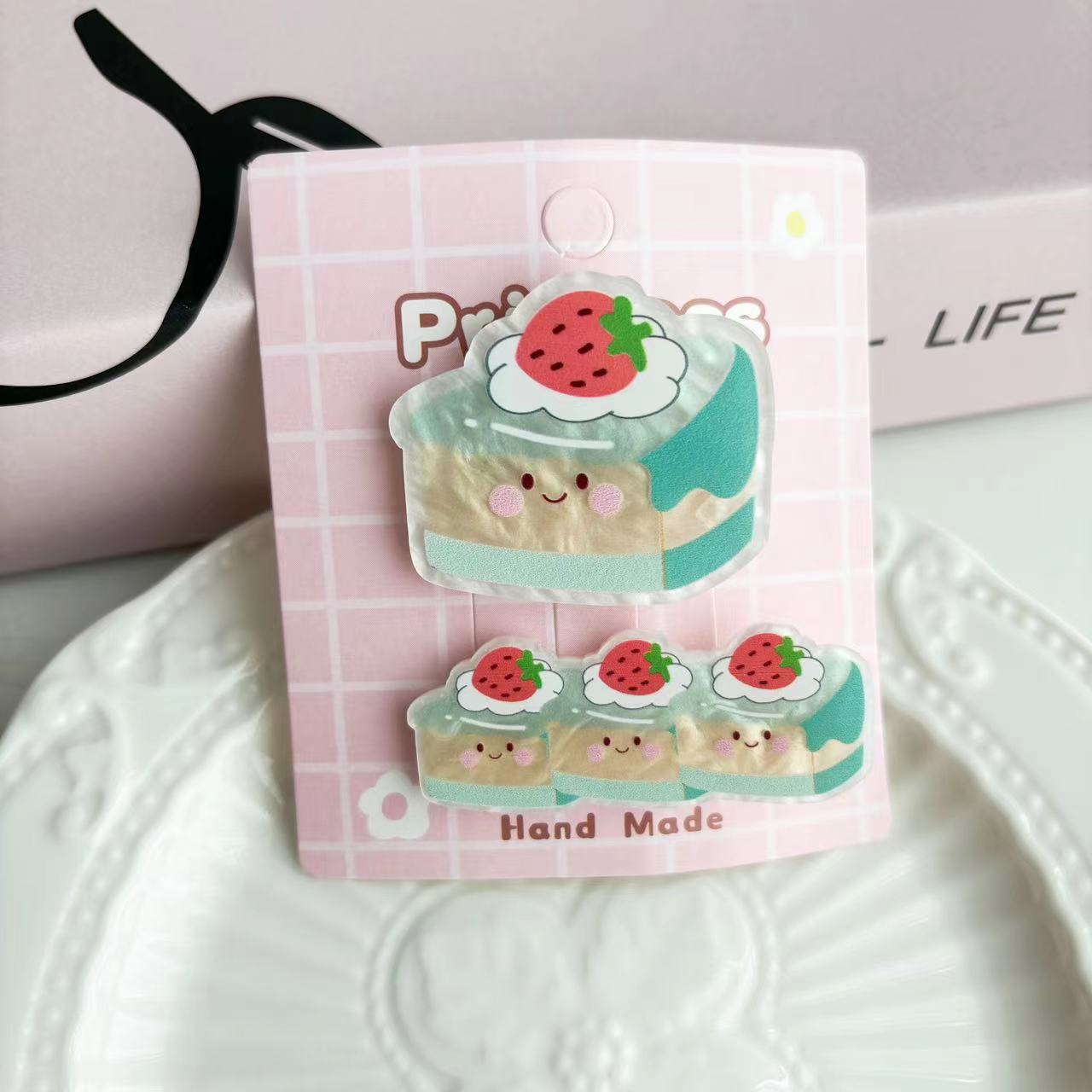 귀여운 재미 만화 과일 케이크 덕빌 클립 앞머리 클립 소녀 측면 깨진 머리 클립 머리 장식 어린이 헤어 클립스토어 가기