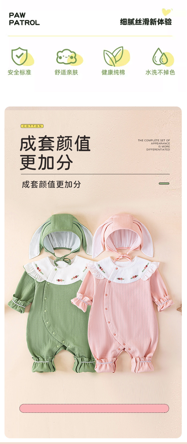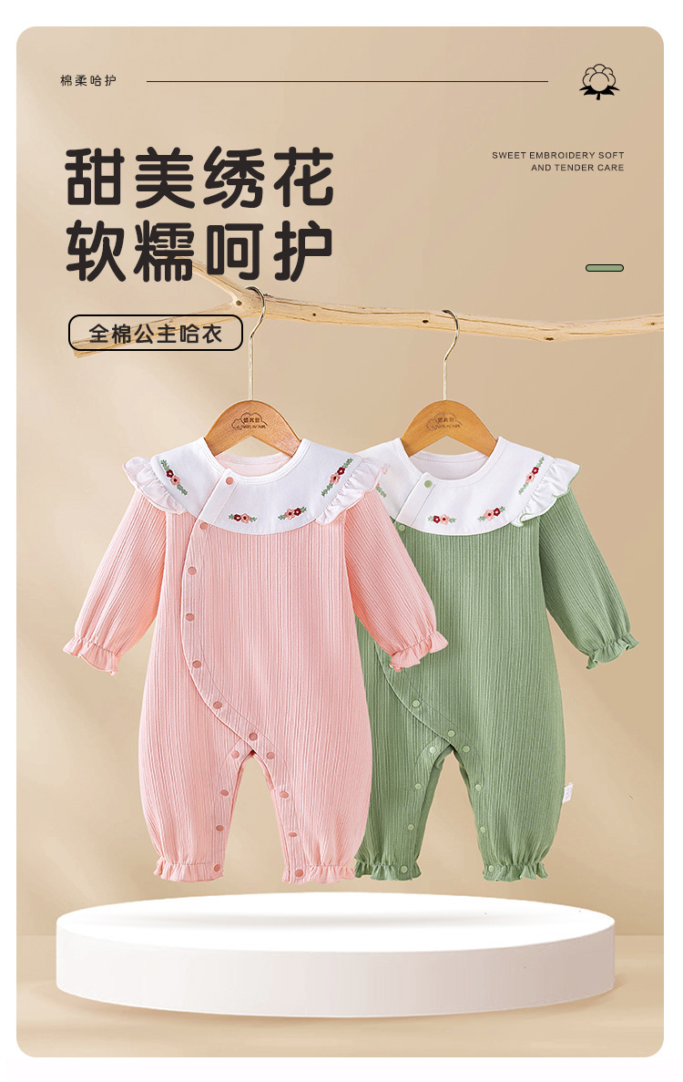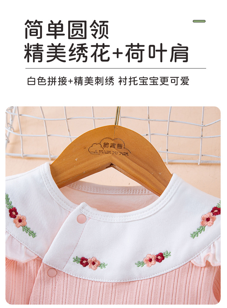 아기 소녀의 점프 수트 봄과 가을 의상 공주 서양식 자수 등반 세트 코튼 뼈없는 긴팔 아기 해그 가운
