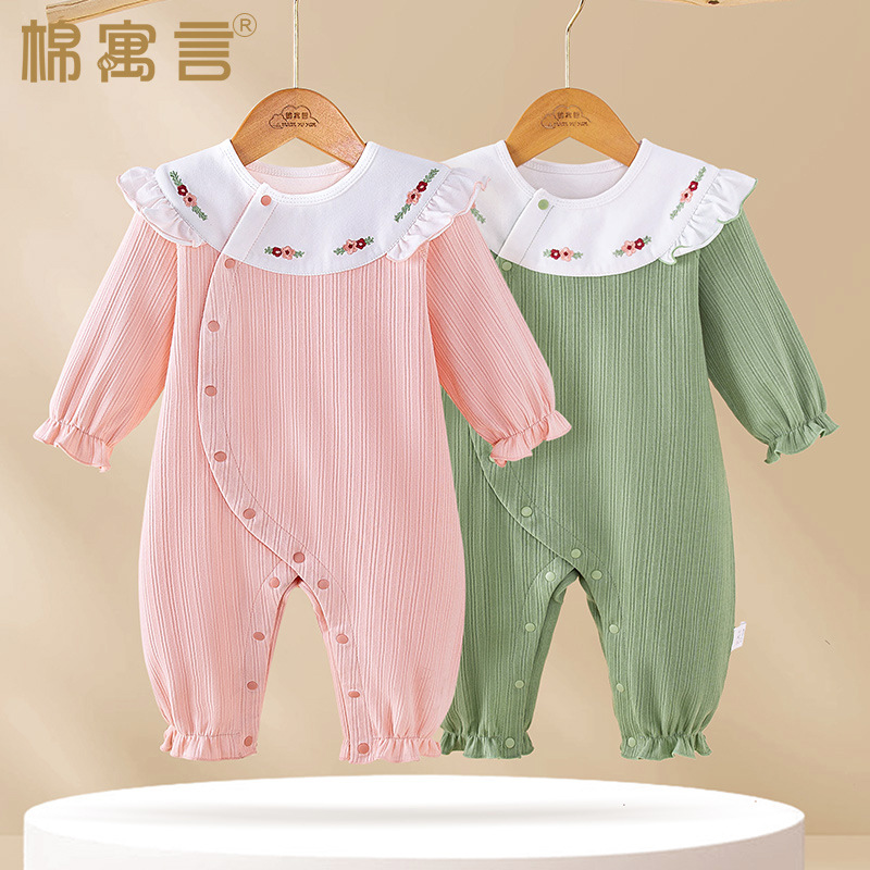 아기 소녀의 점프 수트 봄과 가을 의상 공주 서양식 자수 등반 세트 코튼 뼈없는 긴팔 아기 해그 가운스토어 가기
