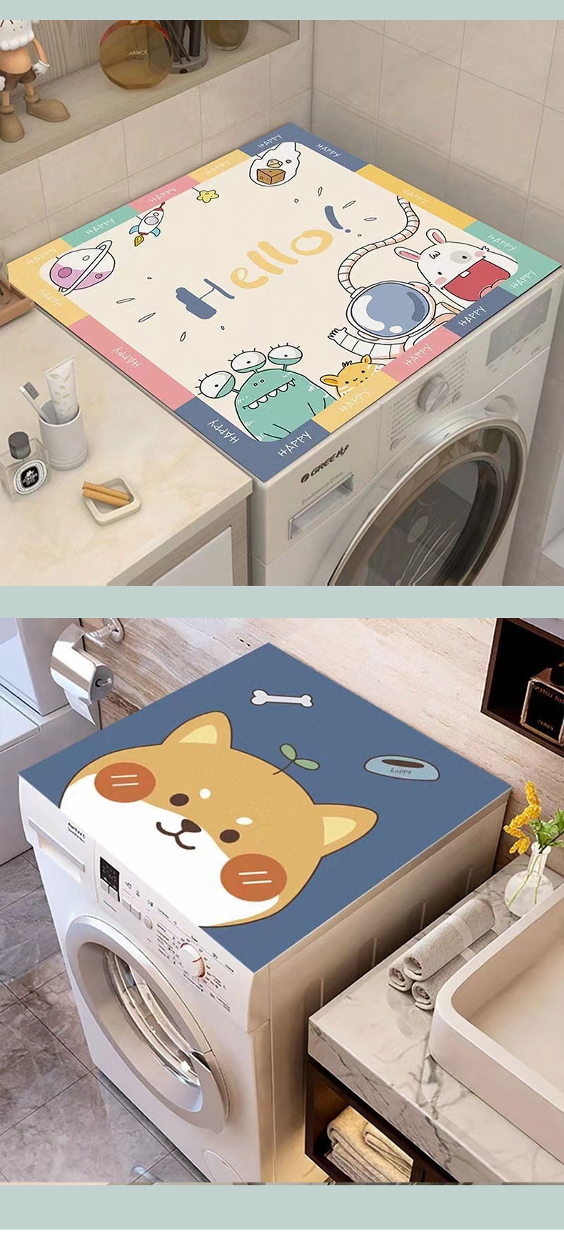 애니메이션 만화 드럼 세탁기 매트 썬 스크린 커버 Diatom 진흙 냉장고 먼지 커버 천 수건 방수 침대 옆 캐비닛 매트스토어 가기
