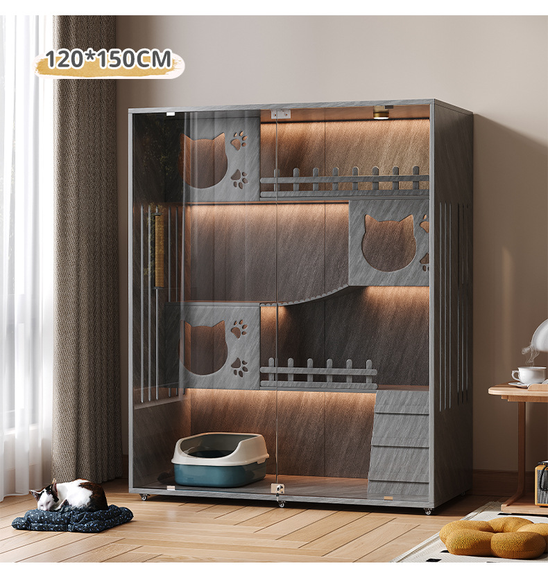 고양이 집 고양이 별장 문 큰 자유 공간 가구 3 층 고양이 집 단단한 나무 파노라마 고양이 둥지 도매