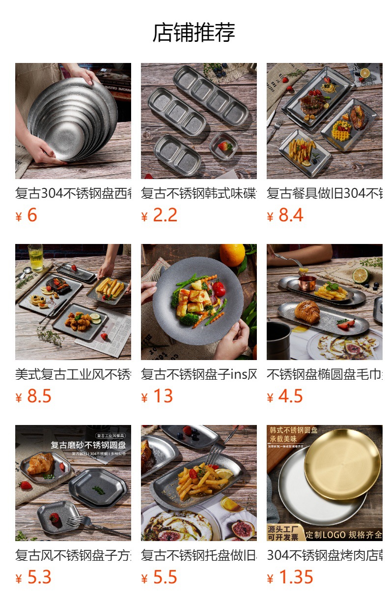 스테인레스 스틸 바베큐 플레이트 디스크 초밥 플레이트 산업 스타일 오래 된 접시 서양 음식 플레이트 스테이크 요리 스낵 플레이트 클래식 플레이트스토어 가기