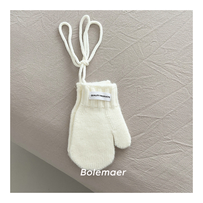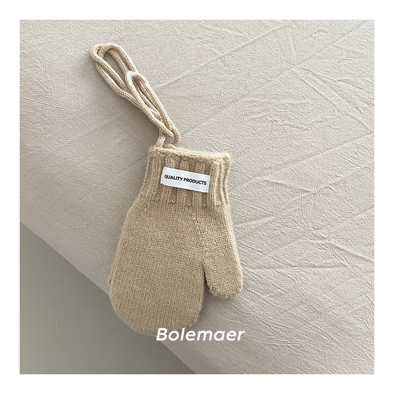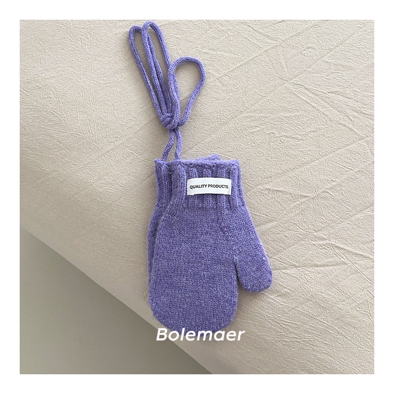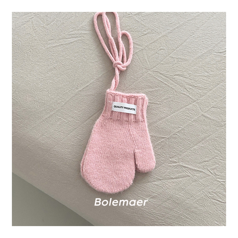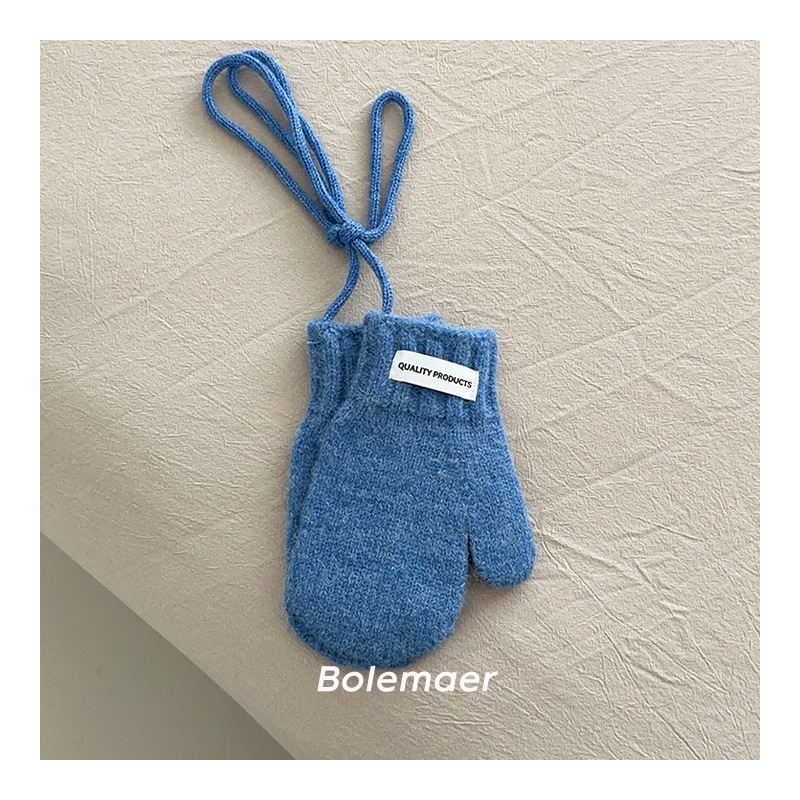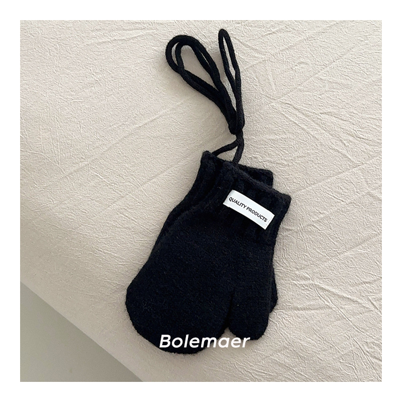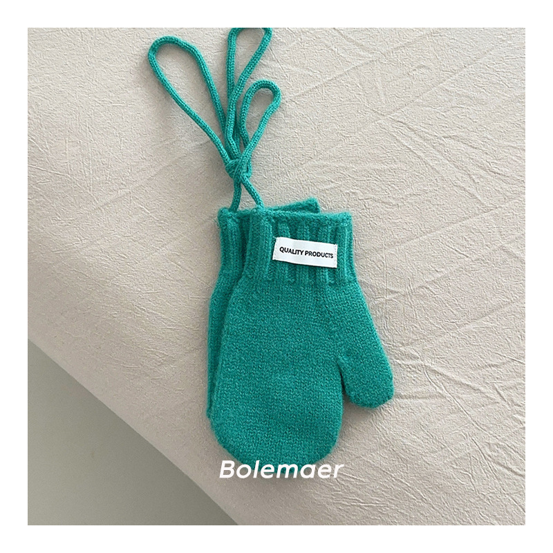 한국 인 어린이 장갑 겨울 목 매달려 단색 서양 스타일 소년 '과 소녀 니트 따뜻한 5 인조 장갑