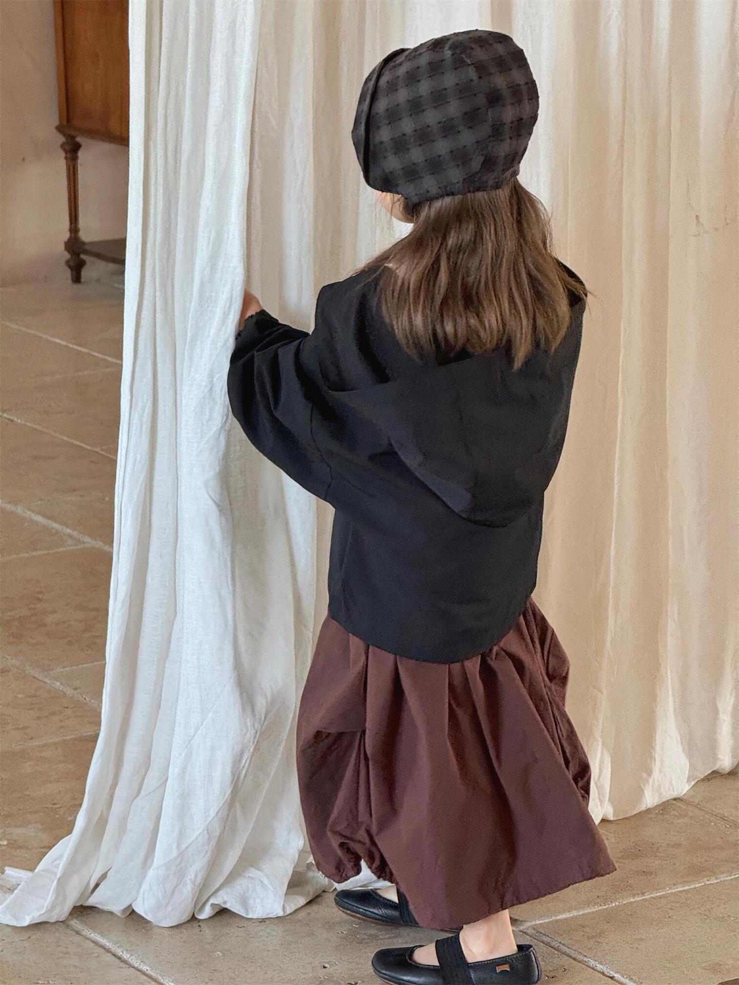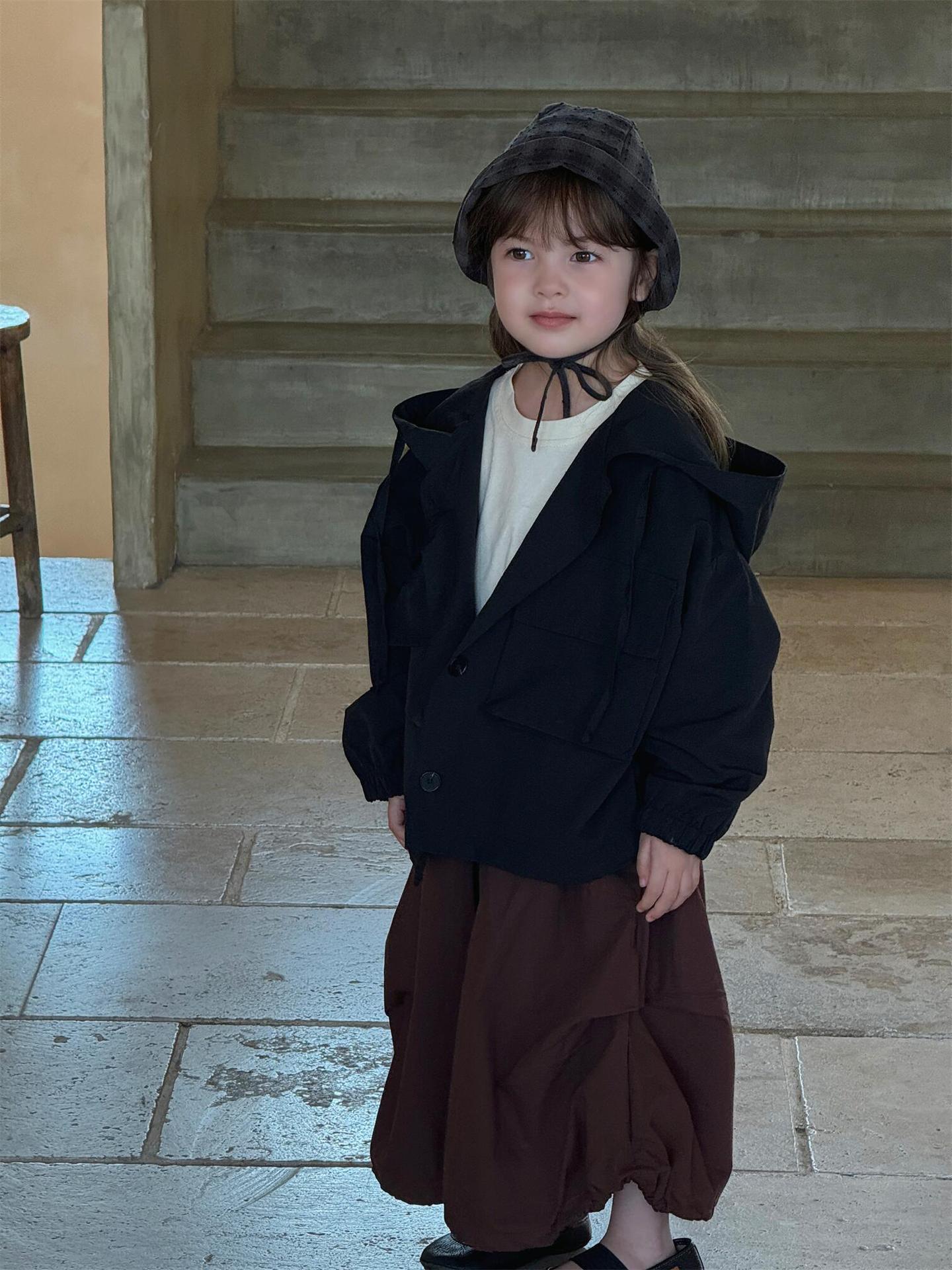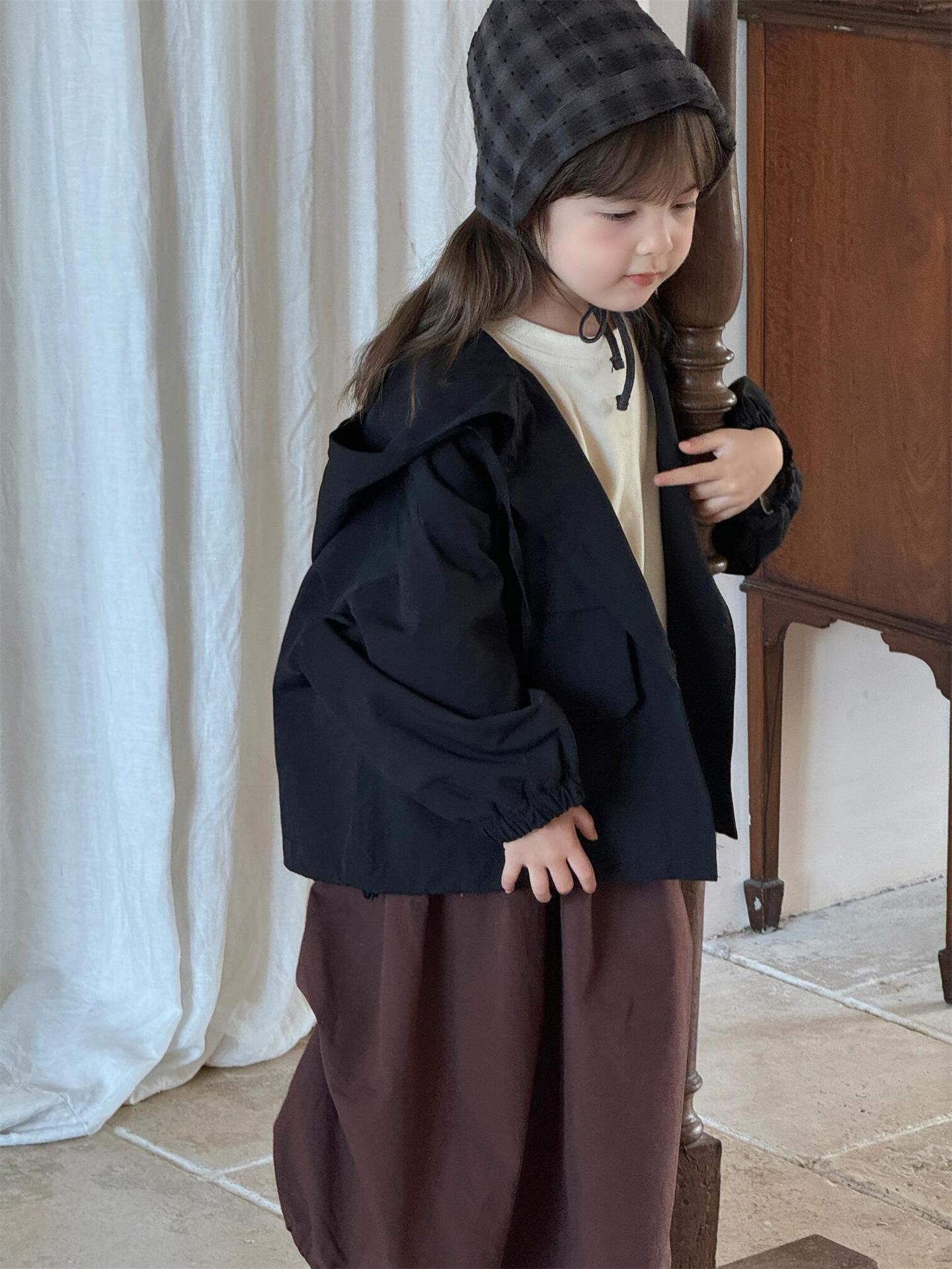 탑 에그 한국 아동복 2024 가을 새 소녀 어린이 코트 블랙 후드 재킷 짧은 재킷