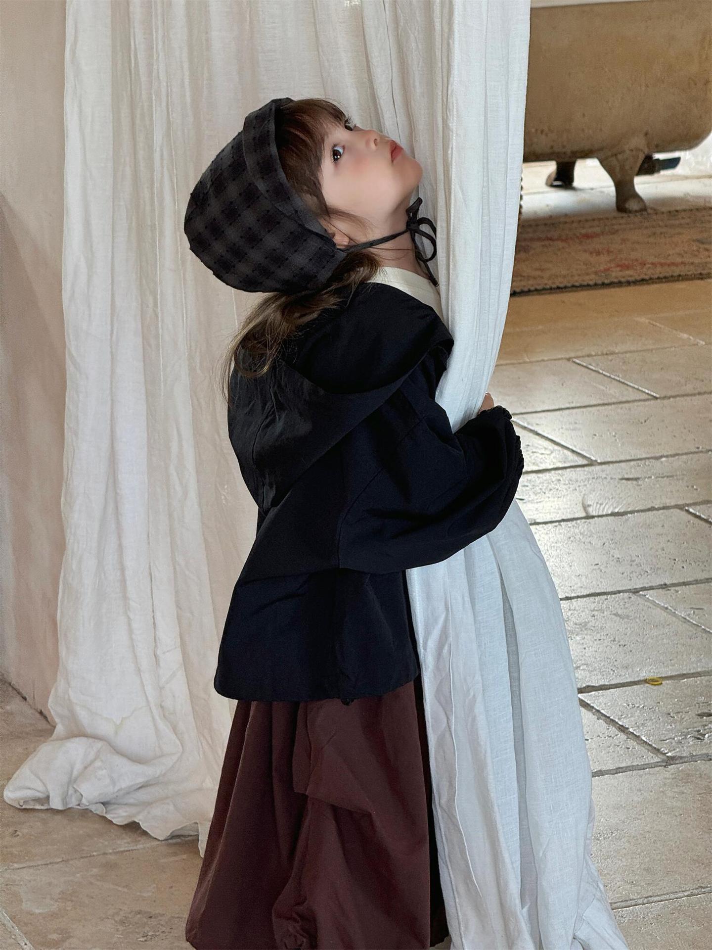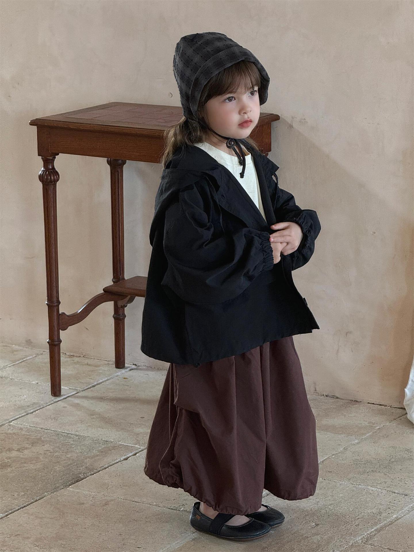 탑 에그 한국 아동복 2024 가을 새 소녀 어린이 코트 블랙 후드 재킷 짧은 재킷스토어 가기
