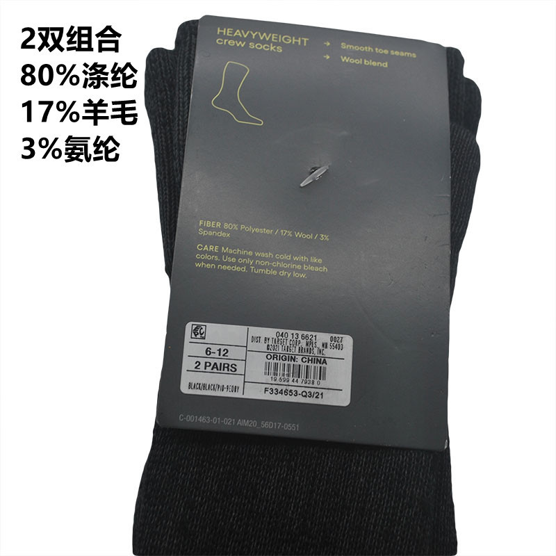 2双组合中统袜:80%涤纶,17%羊毛,3%弹性纤维;