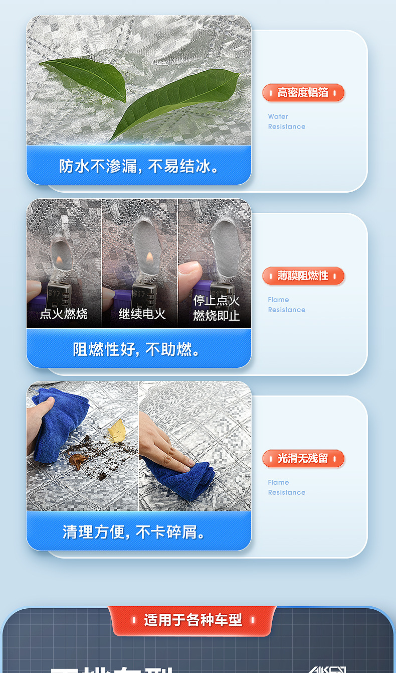 材质:铝膜+PE膜材质+针刺棉填充+精细喷胶棉+白色里衬