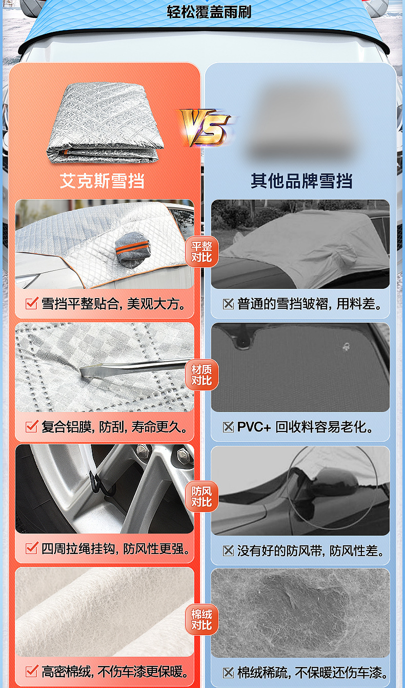 汽车前挡风玻璃车衣半罩冬季加厚防雪防霜防冻半身车罩风挡套保暖