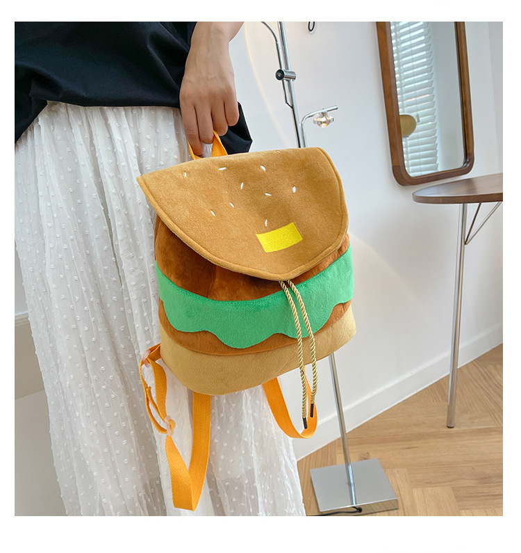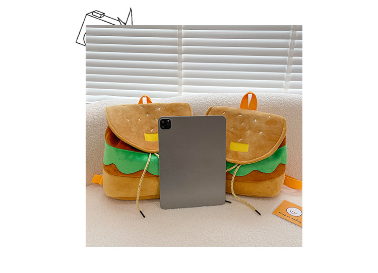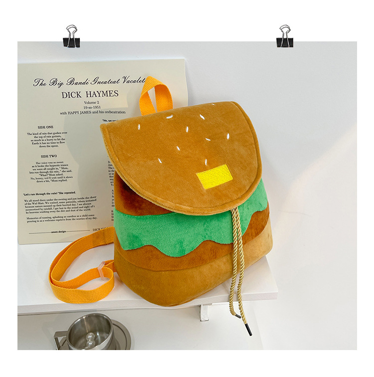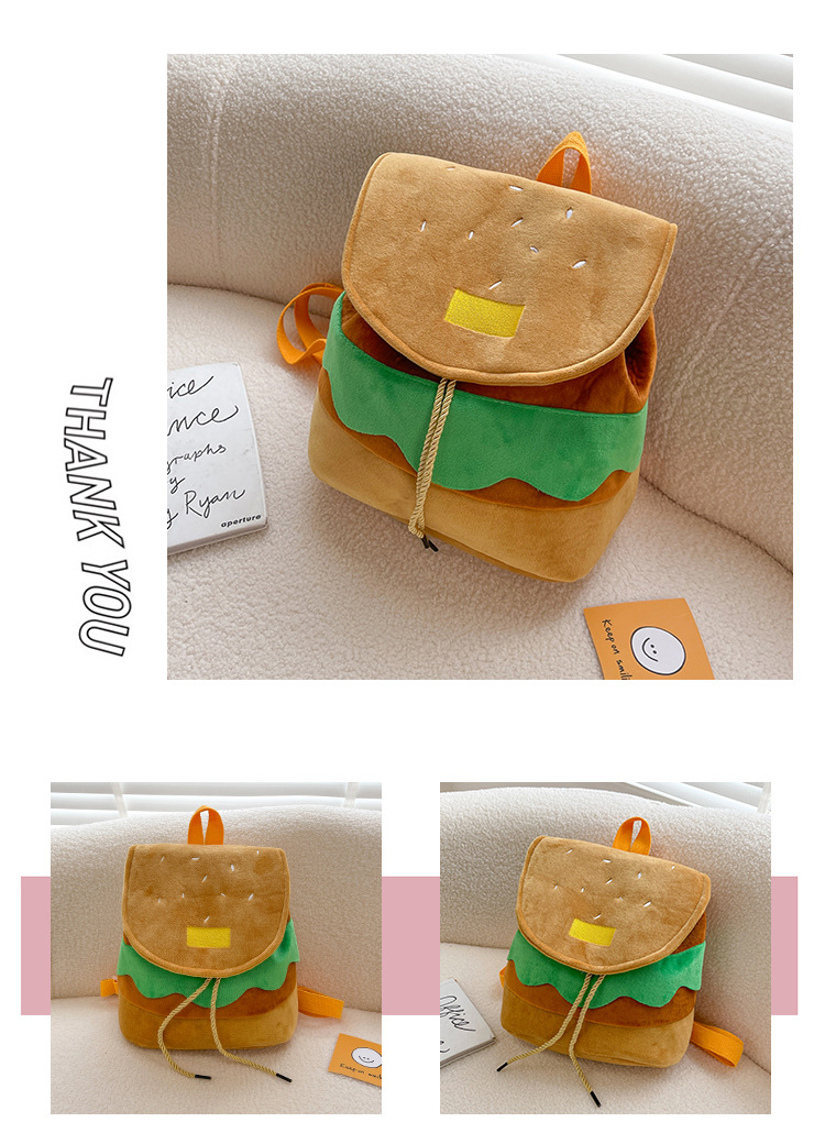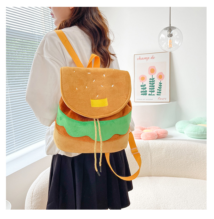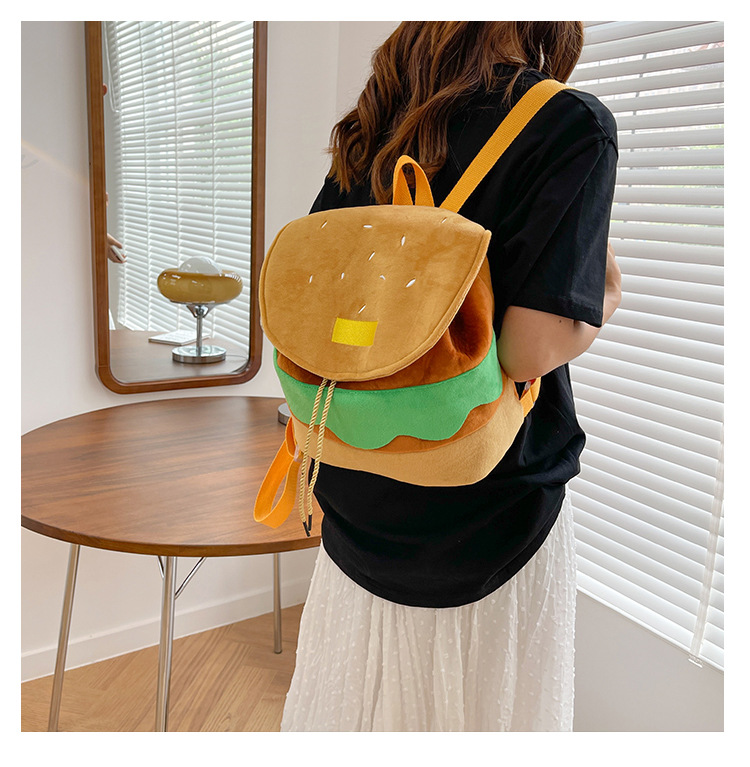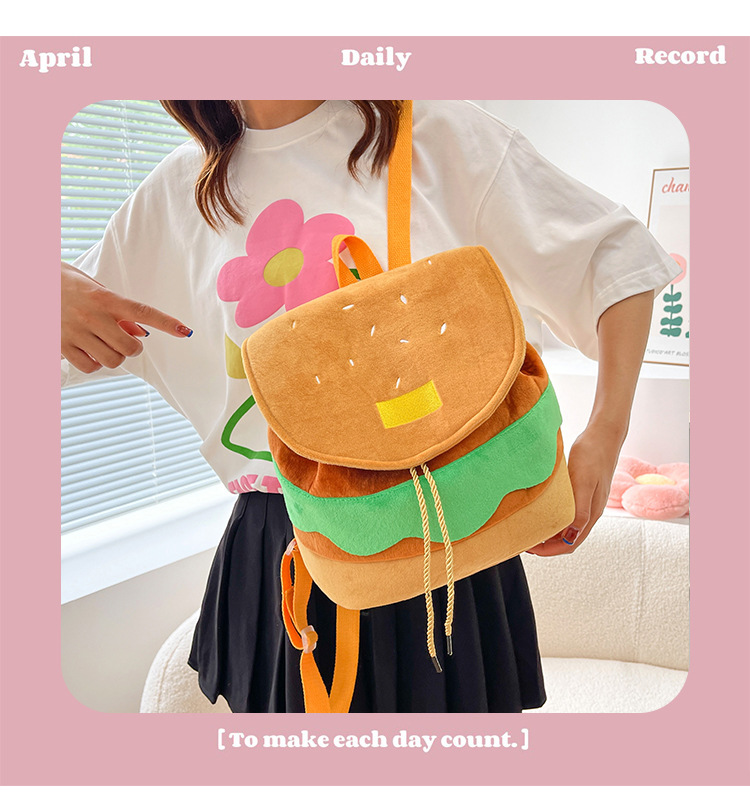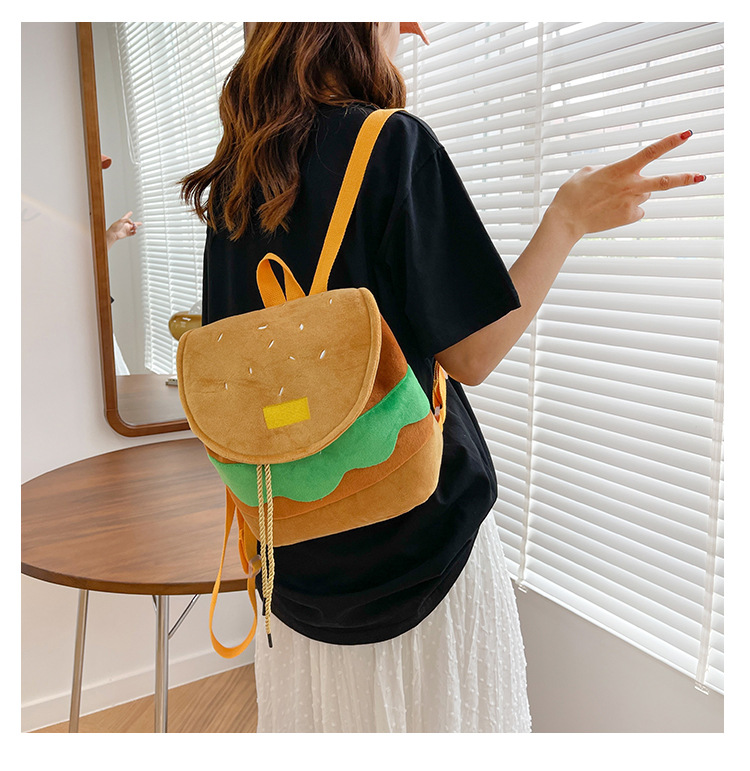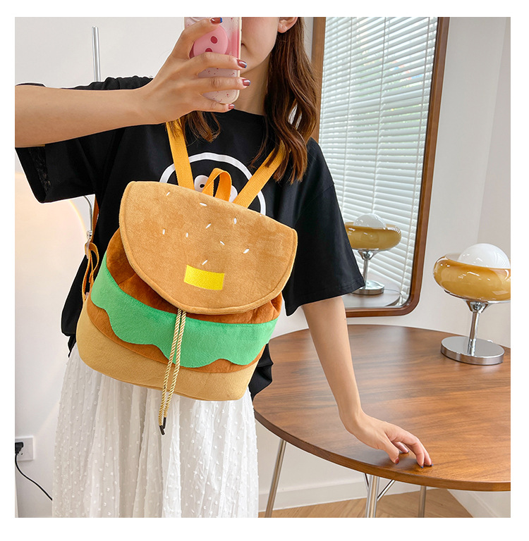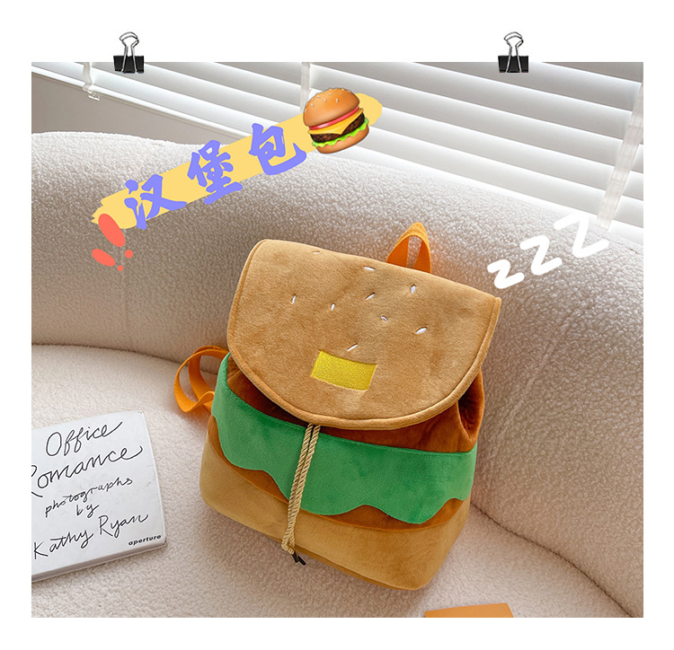 새로운 게으른 작은 빨간 승마 책 햄버거 배낭 귀여운 만화 작은 배낭 대용량 캠퍼스 배낭