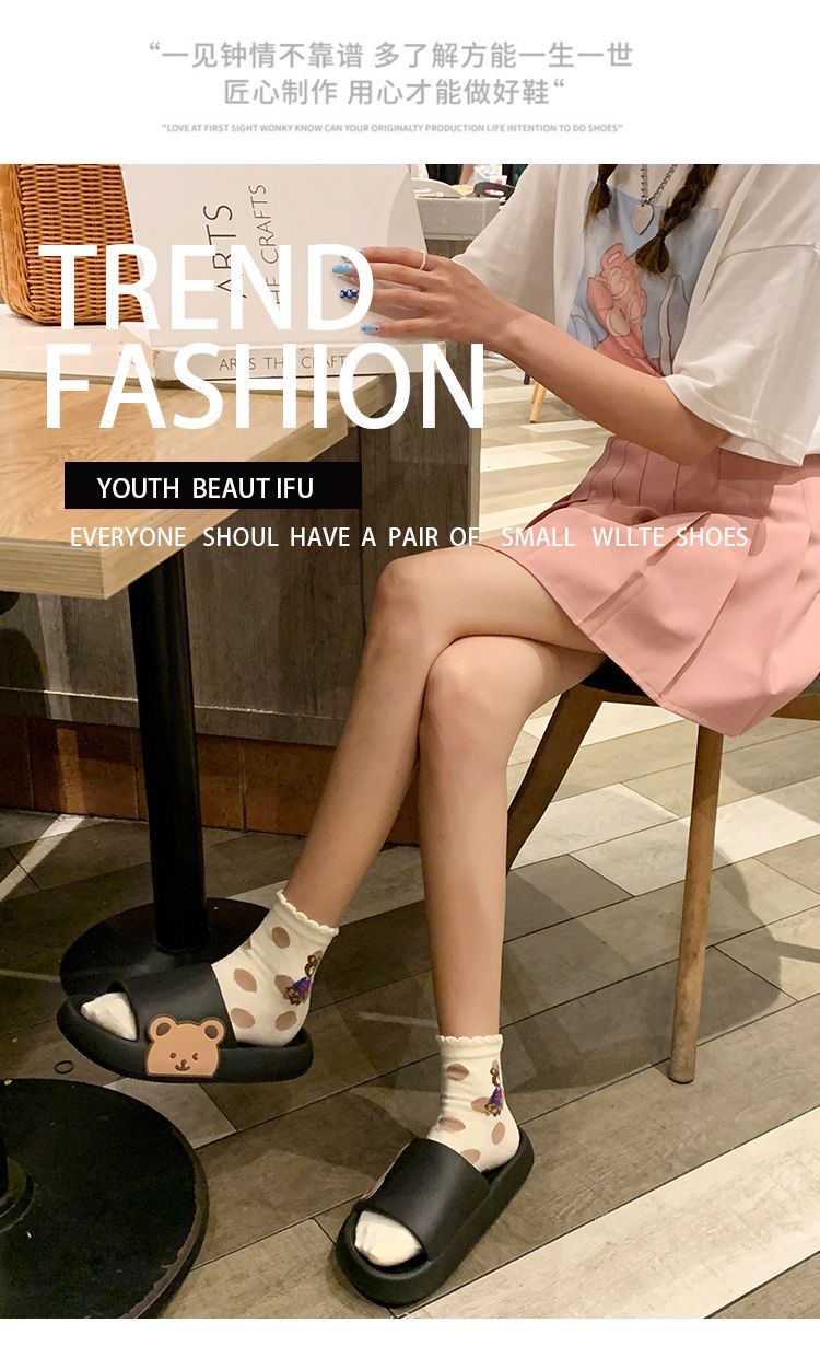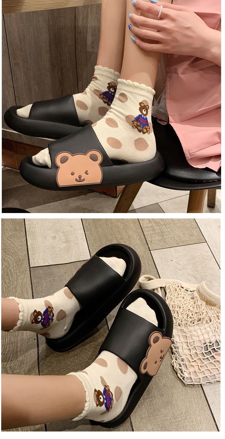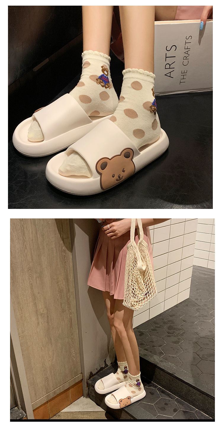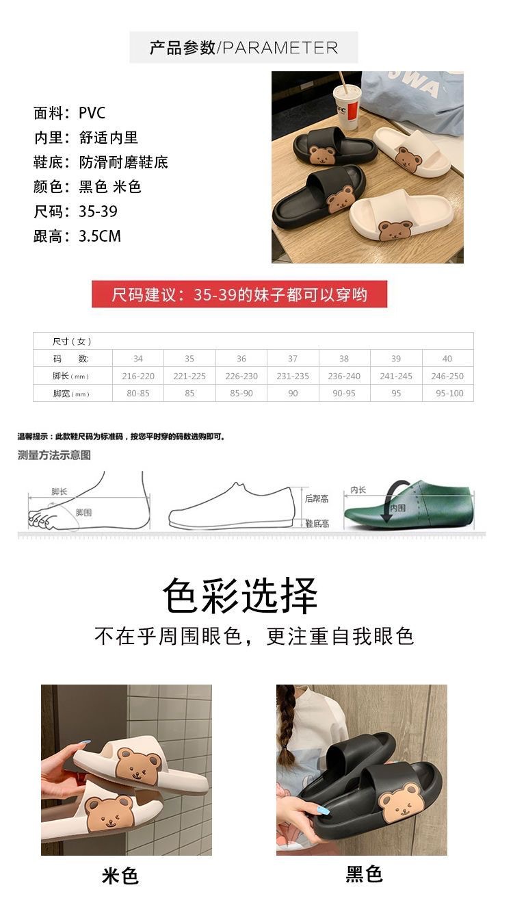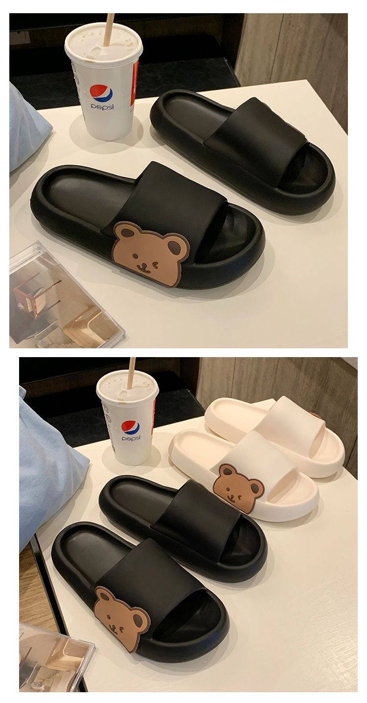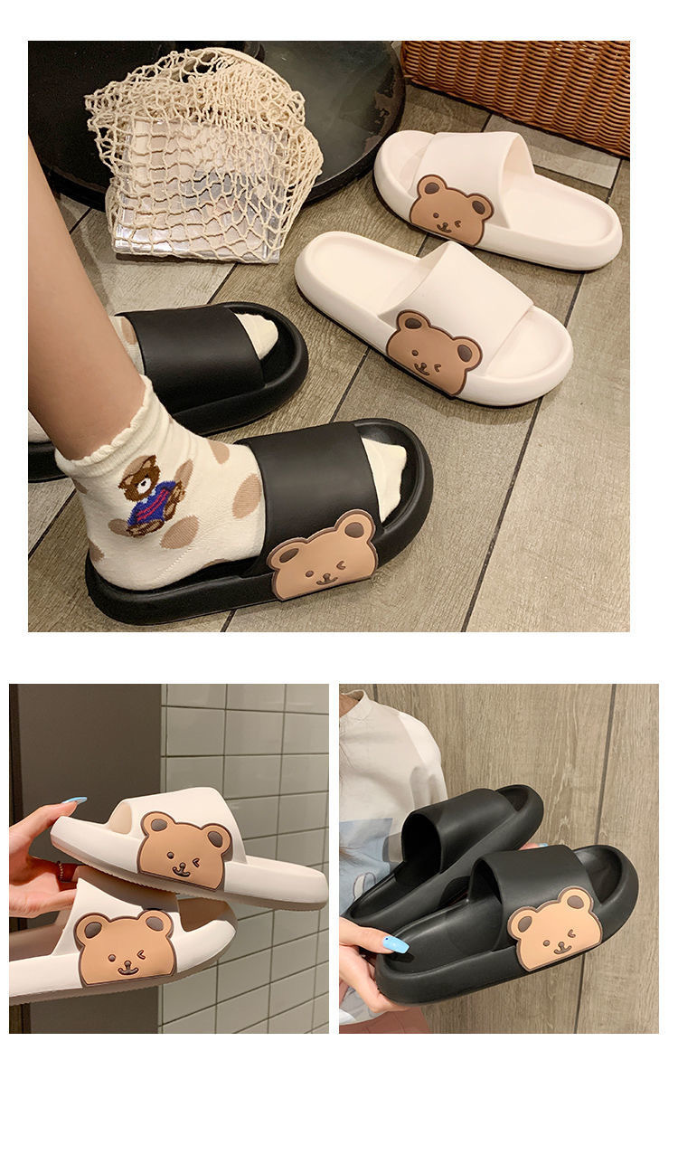 2025년 신상품 여성용 두꺼운 밑창 슬리퍼, 만화 곰돌이 디자인, 가정용 미끄럼 방지, 외출용 여름 슬리퍼, 커플용스토어 가기