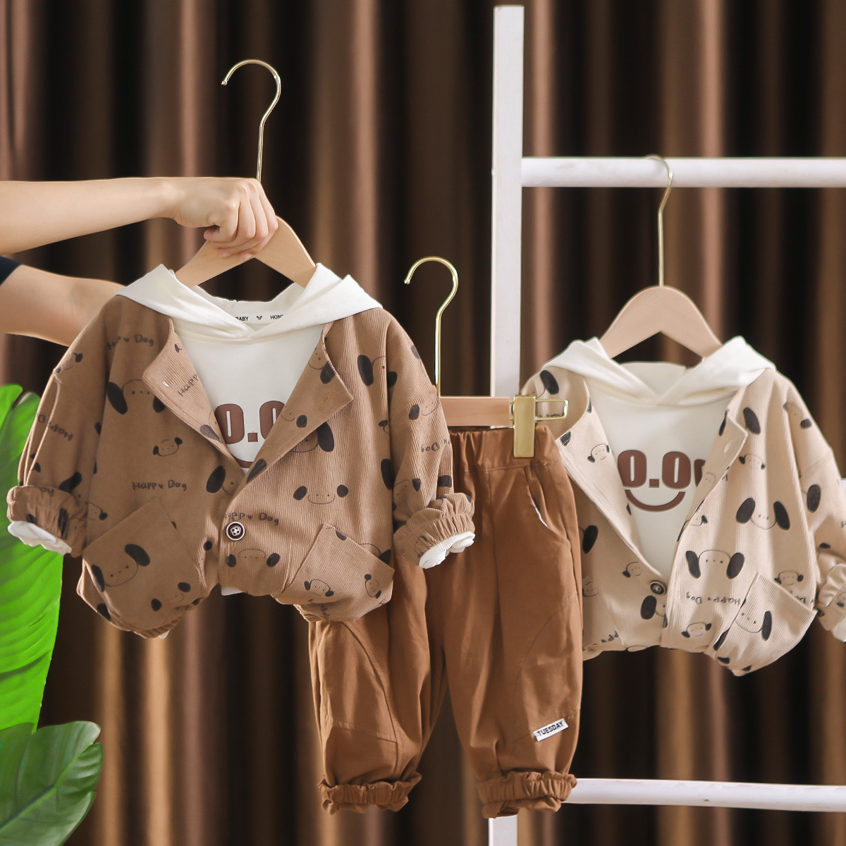 소년 가을 긴 소매 세트 2024 새로운 아기 만화 코트 어린이 3 피스 세트 공장 공급 도매스토어 가기