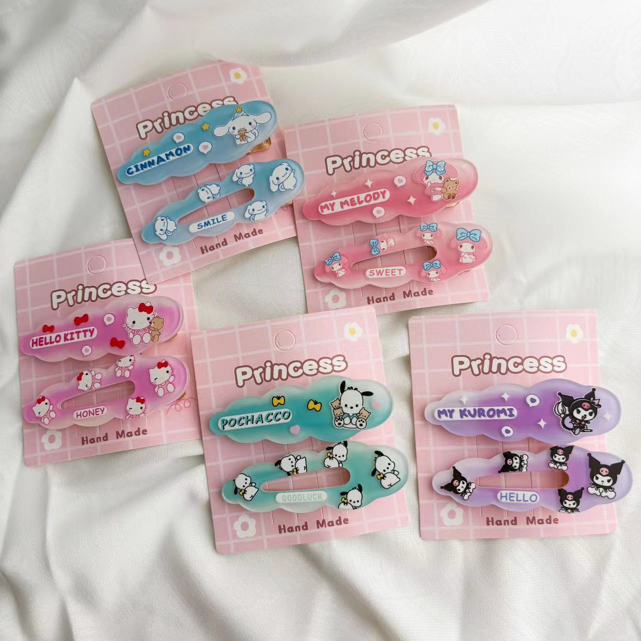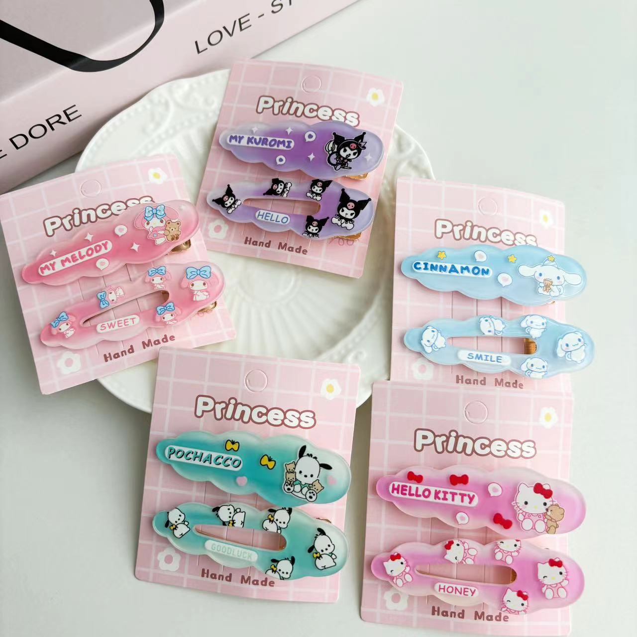 새로운 어린이 머리핀 귀여운 산리오 만화 머리핀 세트 달콤한 소녀 구름 클립 덕빌 헤어 액세서리