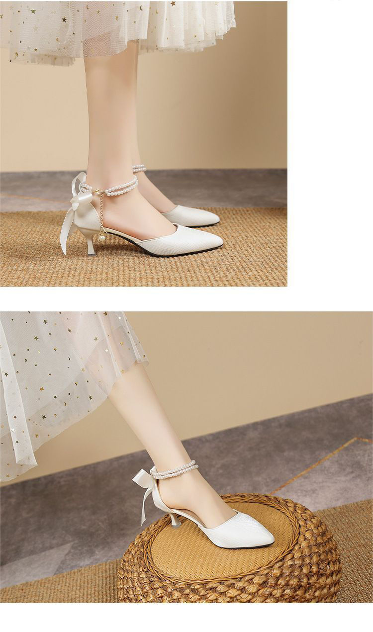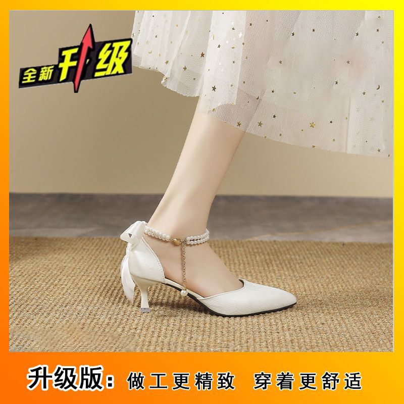 프랑스 발가락 진주 샌들 2024 여름 새로운 슬림 요정 스타일 뾰족한 스틸레토 힐 여성용 하이힐스토어 가기