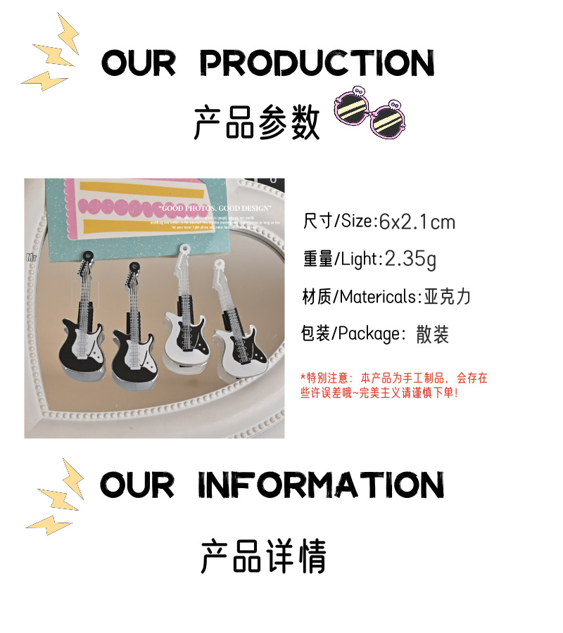 스파이스 걸스 y2k 기타 귀여운 헤어핀 재미있는 헤어 액세서리 아크릴 아크릴 밀레니엄 하라주쿠 스타일 뱅 헤어 액세서리