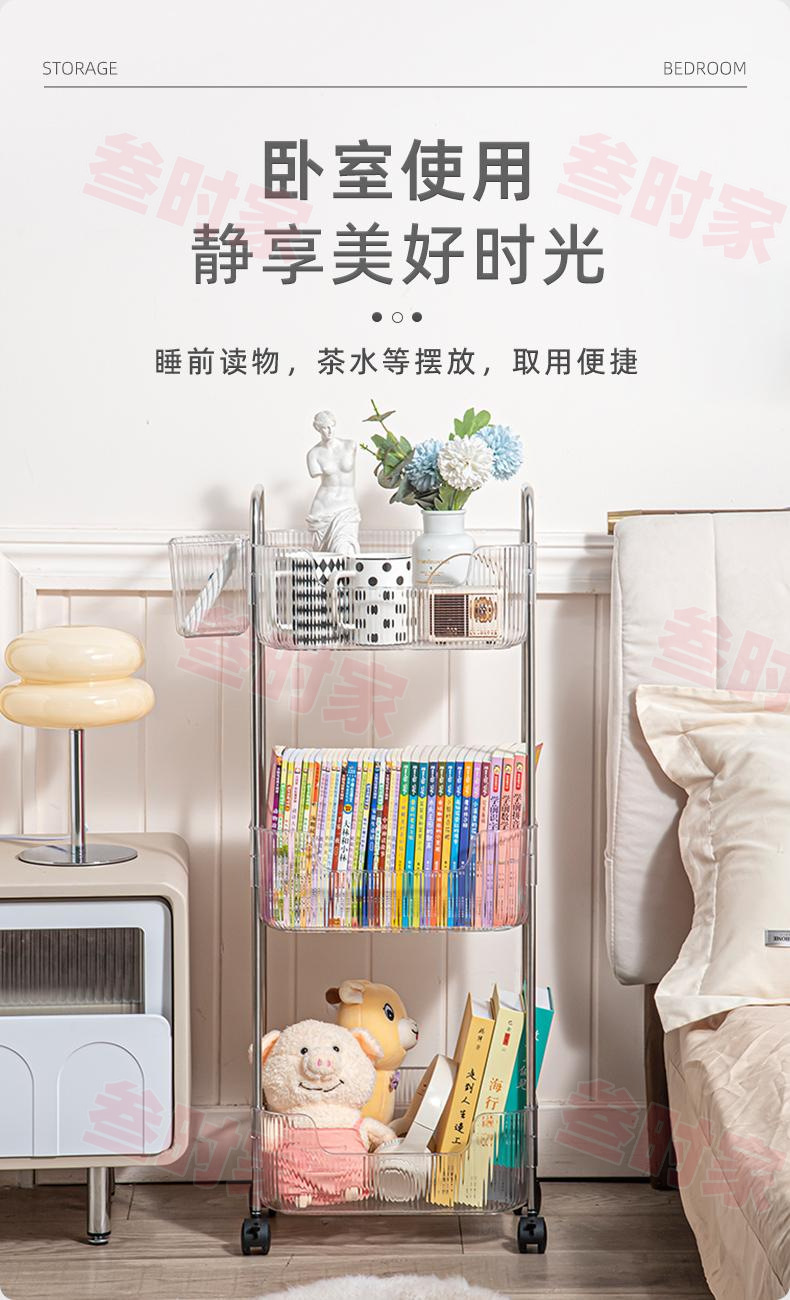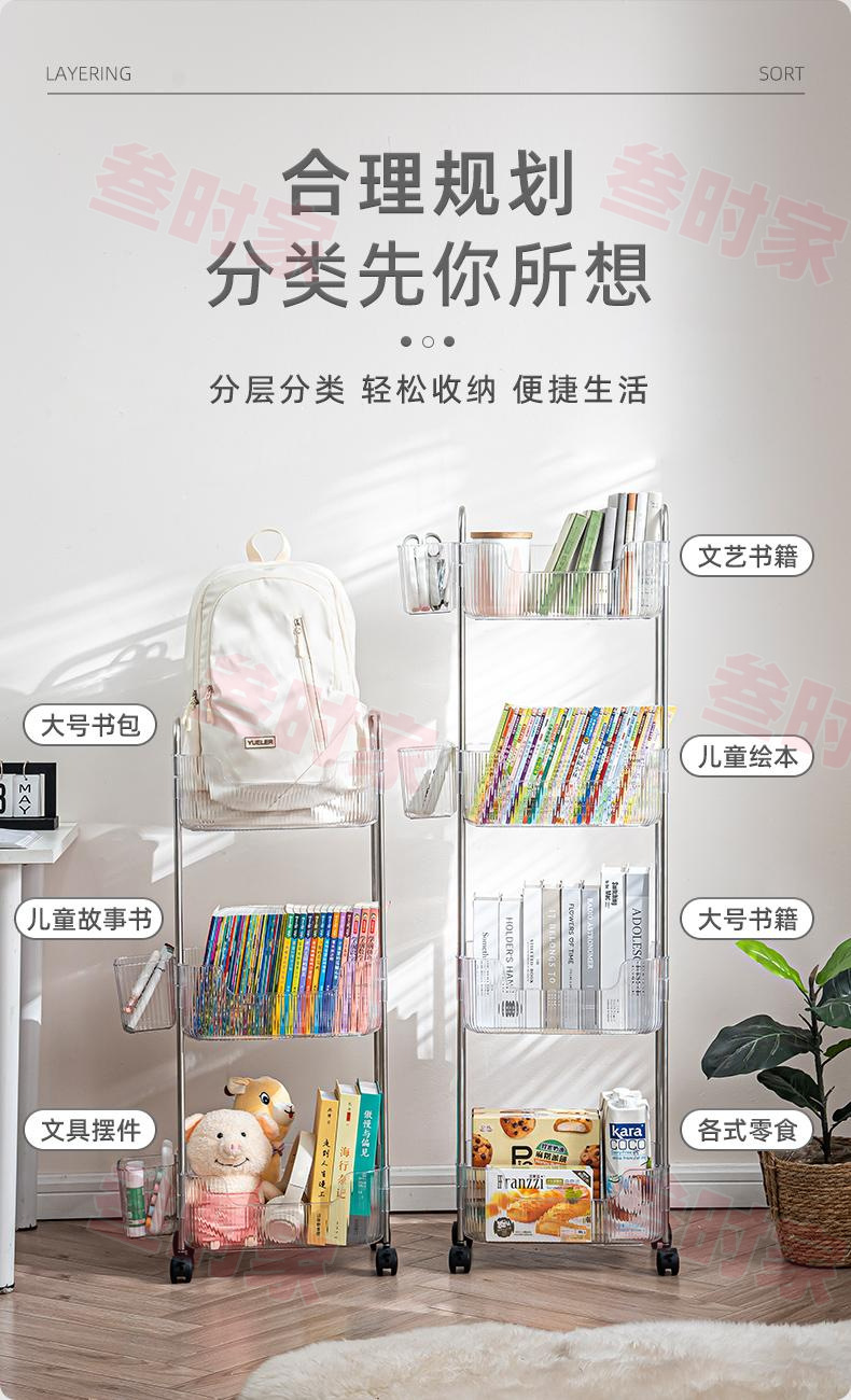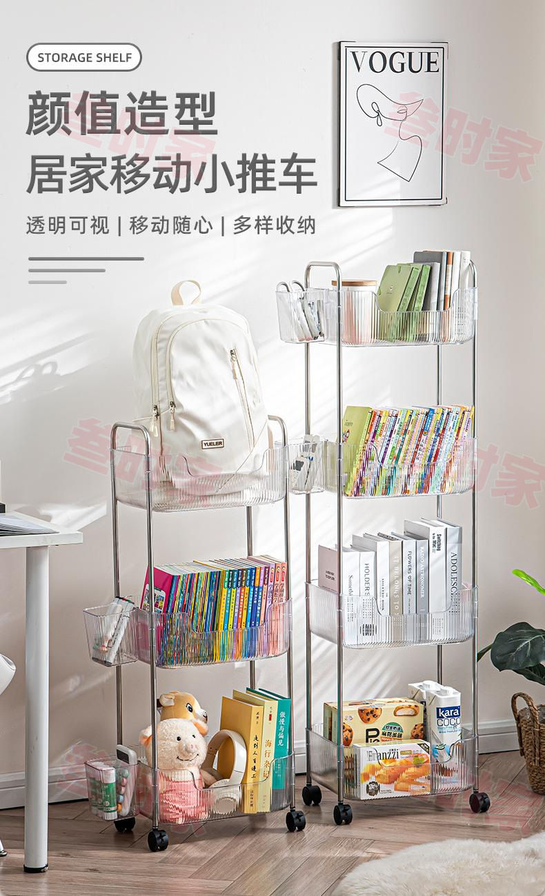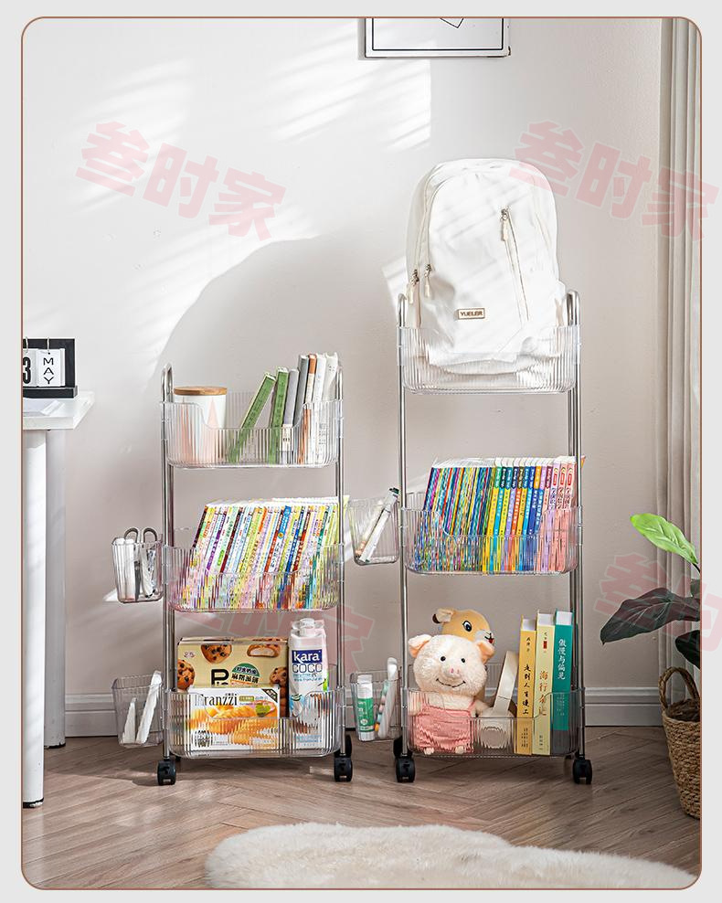 Sanshi 홈 아크릴 책상 책장 책상 보관 랙 다층 책 보관 랙 움직일 수있는 가정용 카트