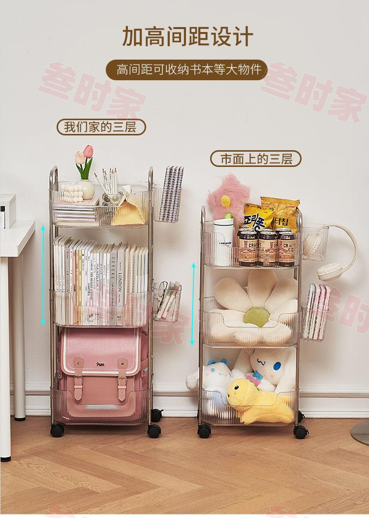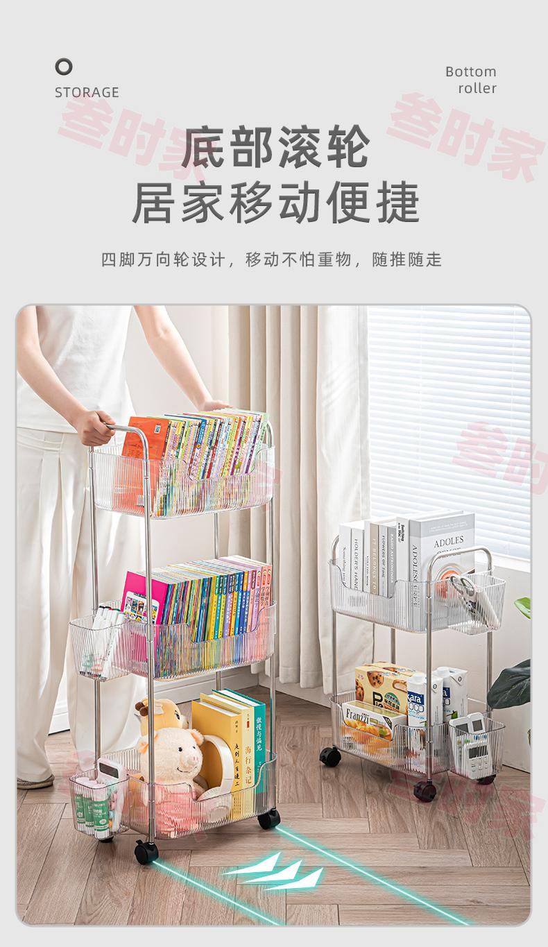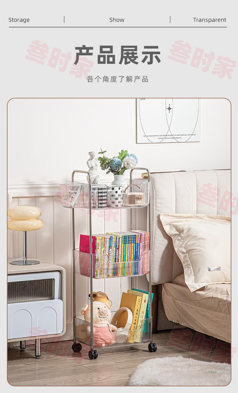 Sanshi 홈 아크릴 책상 책장 책상 보관 랙 다층 책 보관 랙 움직일 수있는 가정용 카트
