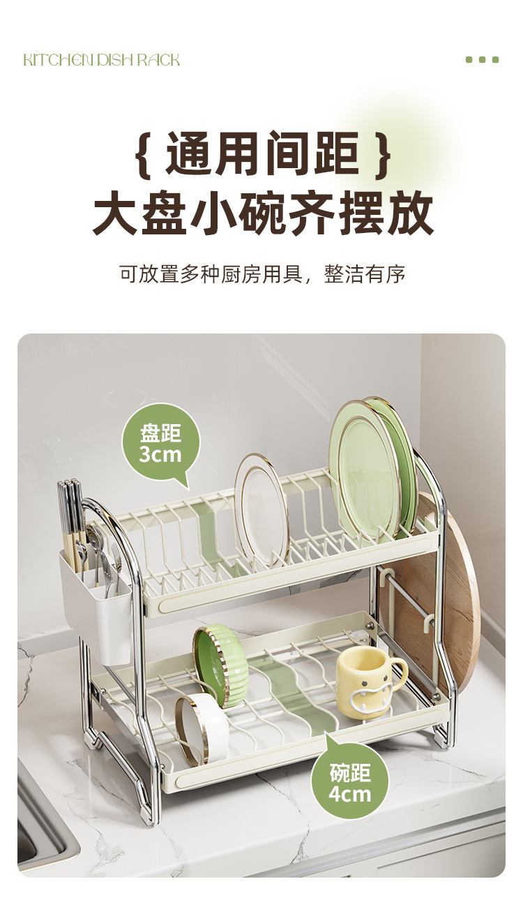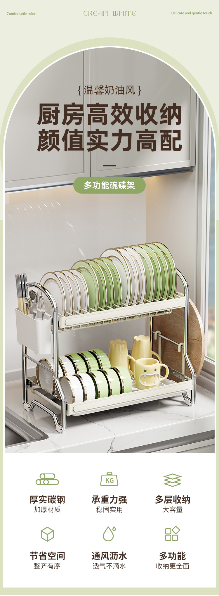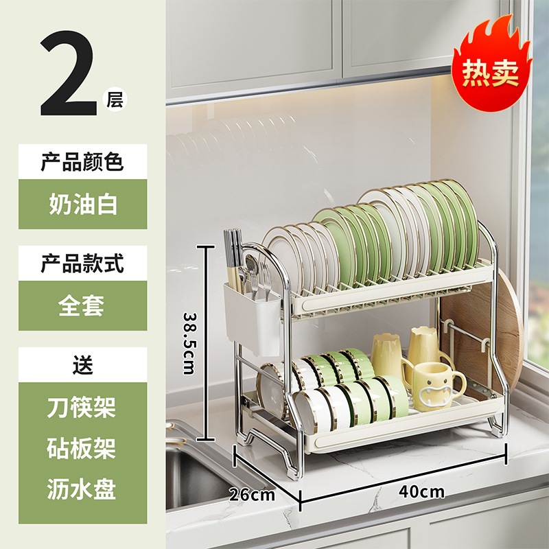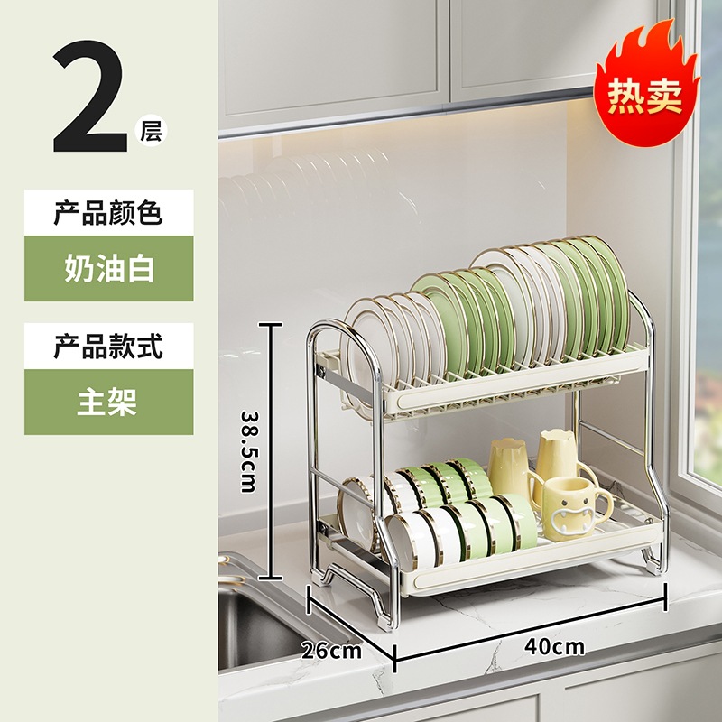 • 접시 랙 2 층 메인 랙-크림 화이트