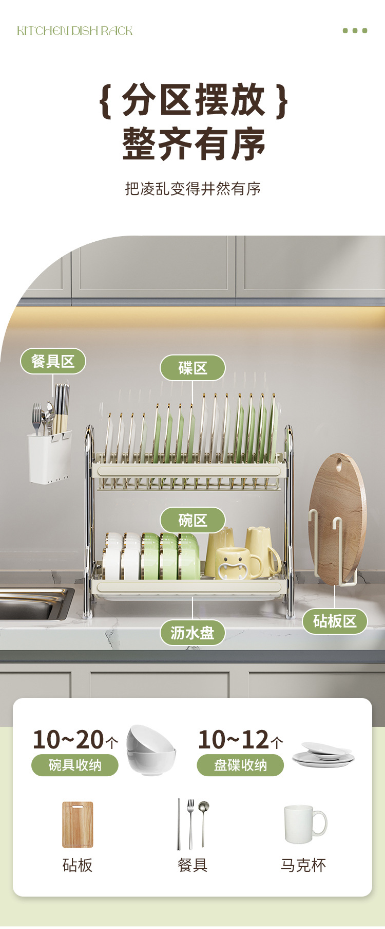 주방 찬장 보관 가정용 자체 포함 배수 트레이 스토리지 랙 독립 카드 슬롯 다기능 젓가락 및 접시 배수 그릇 랙